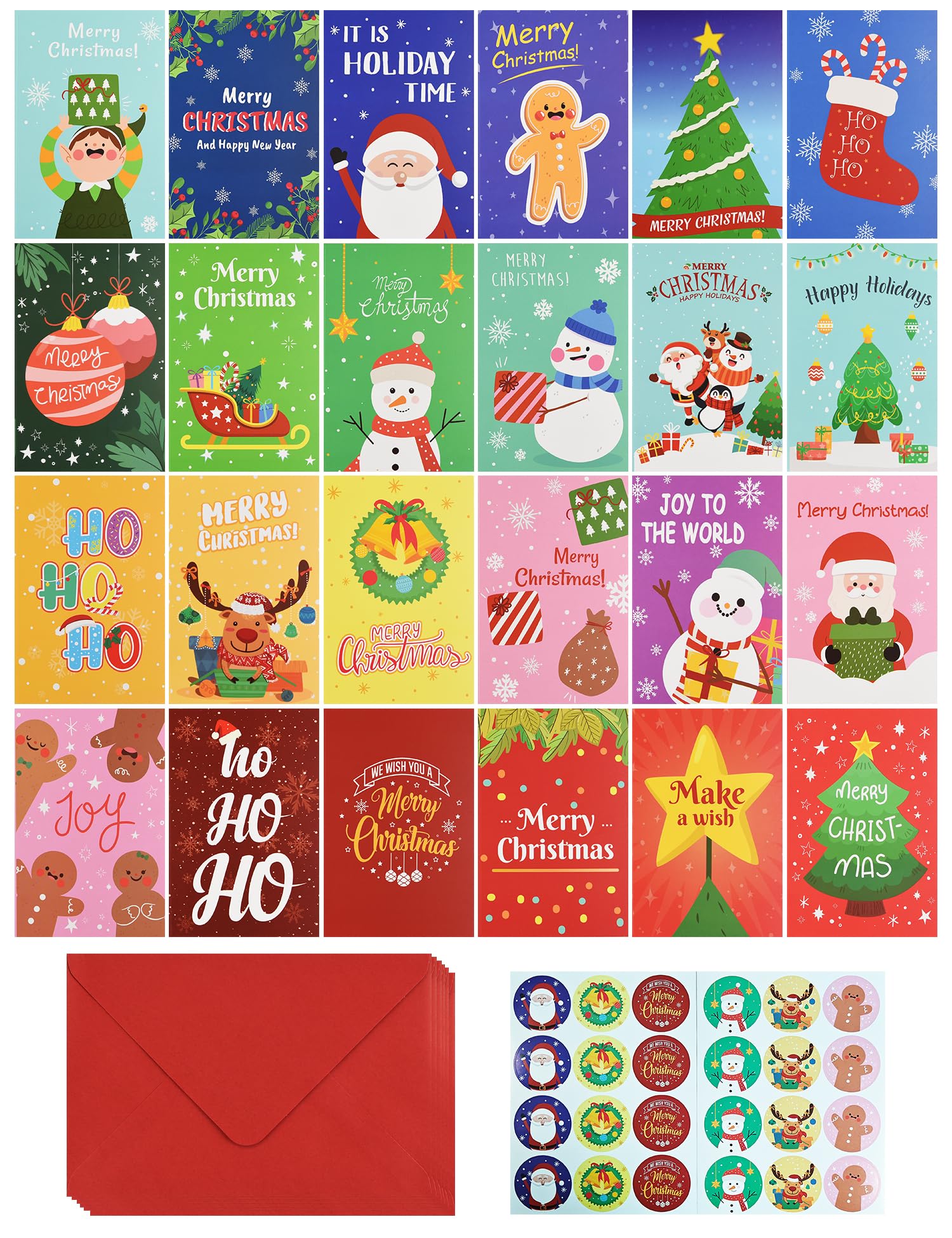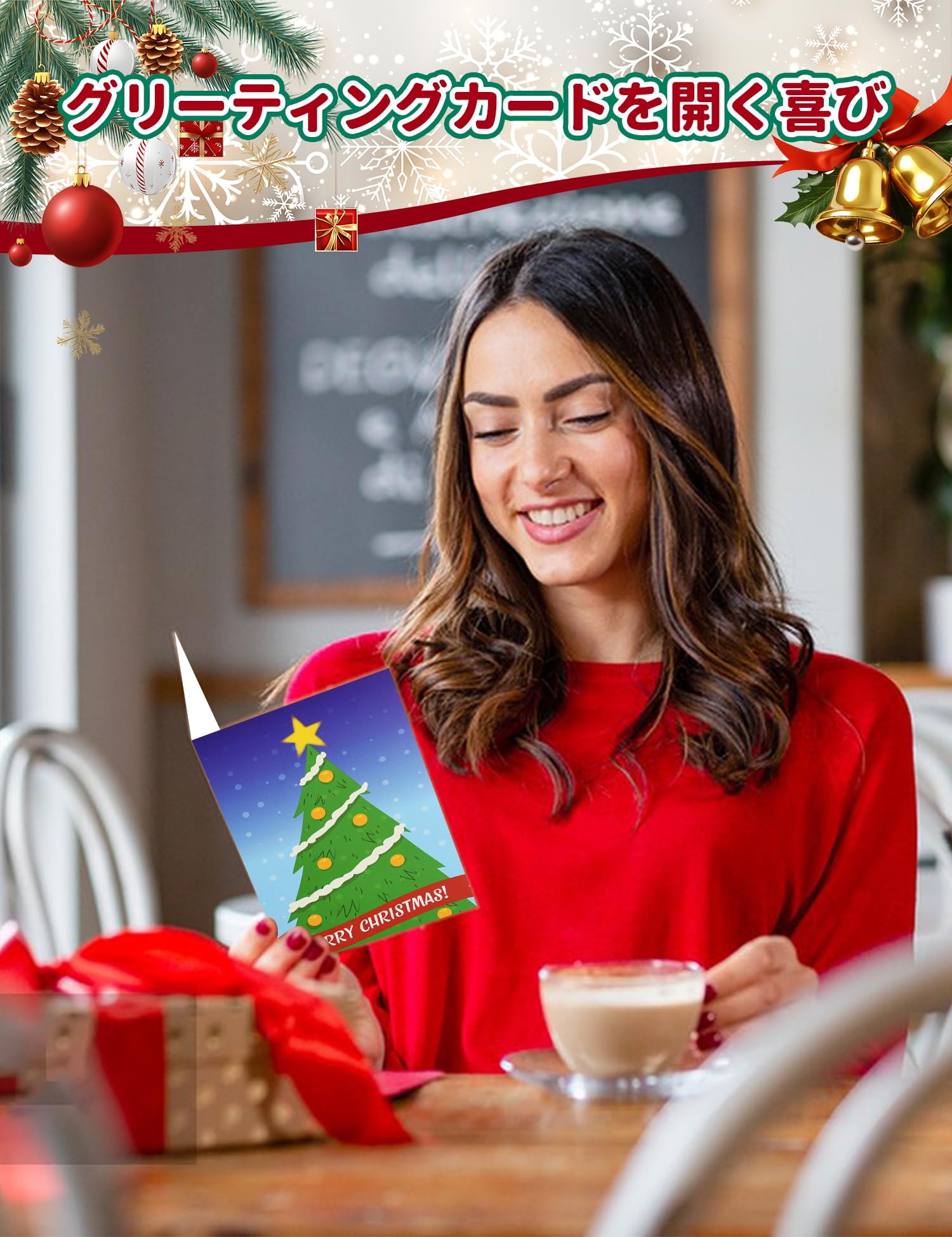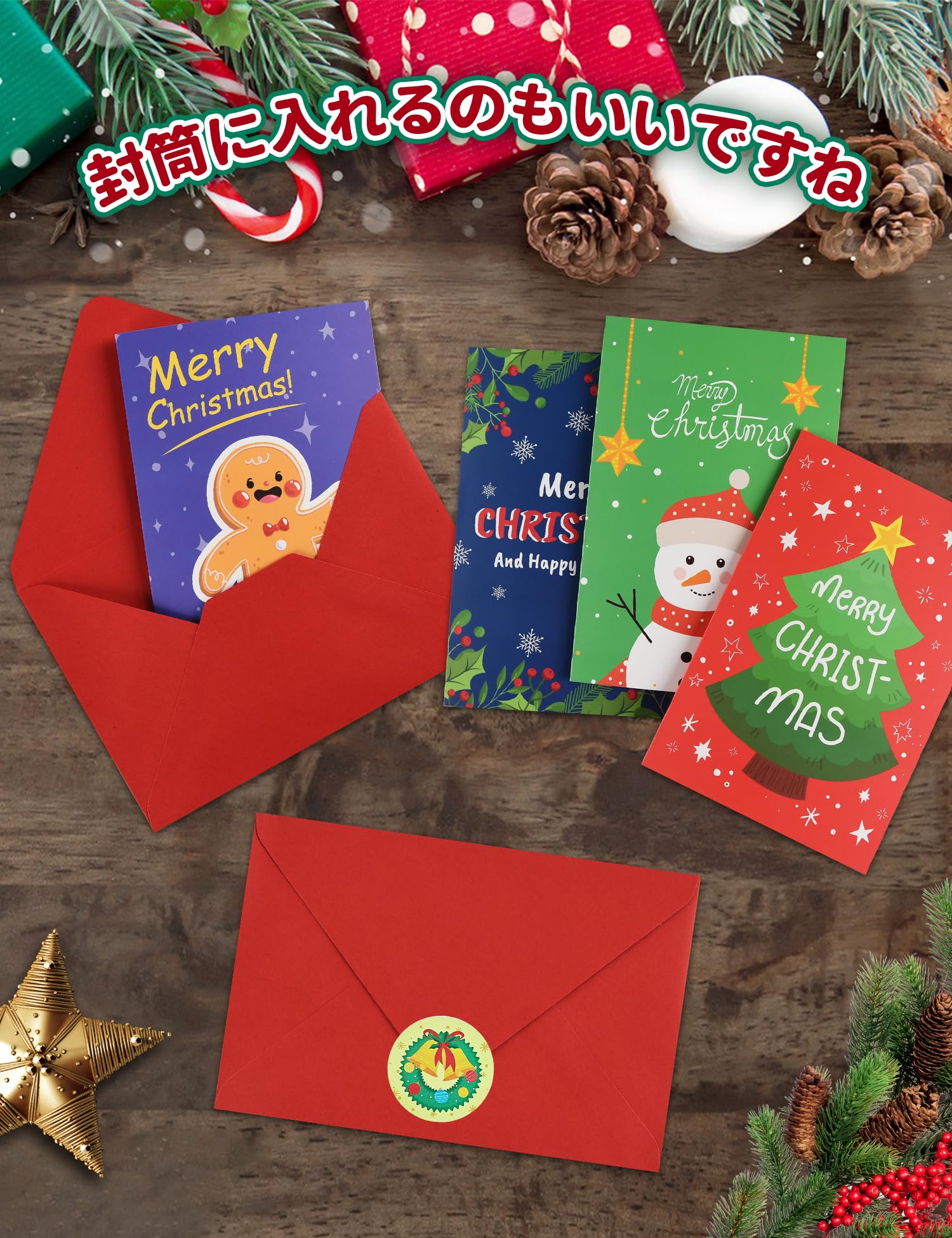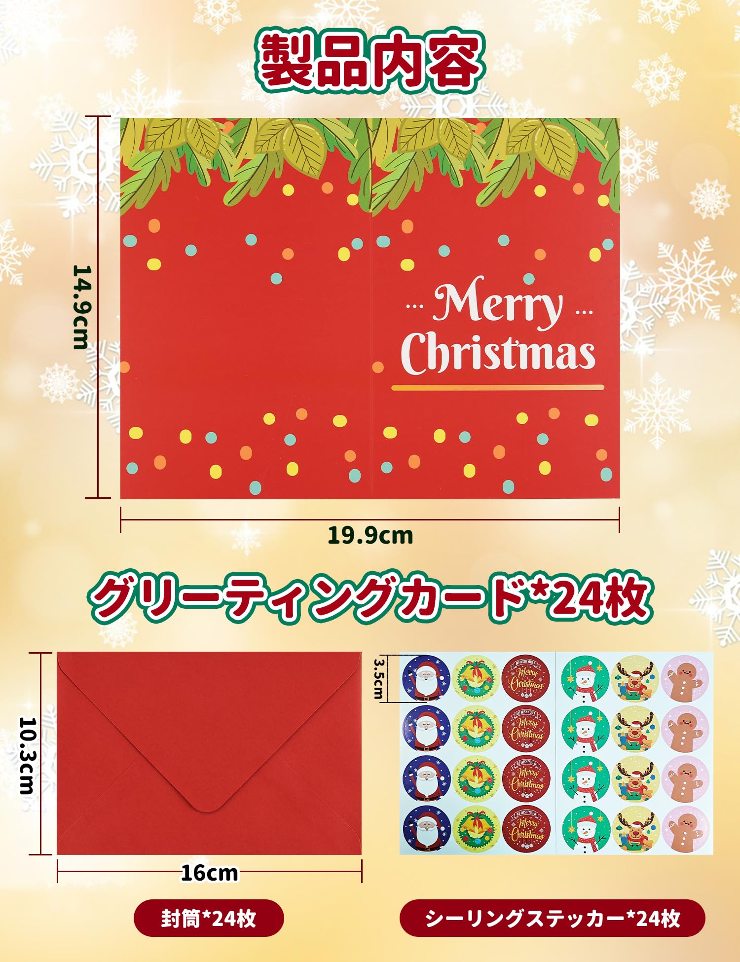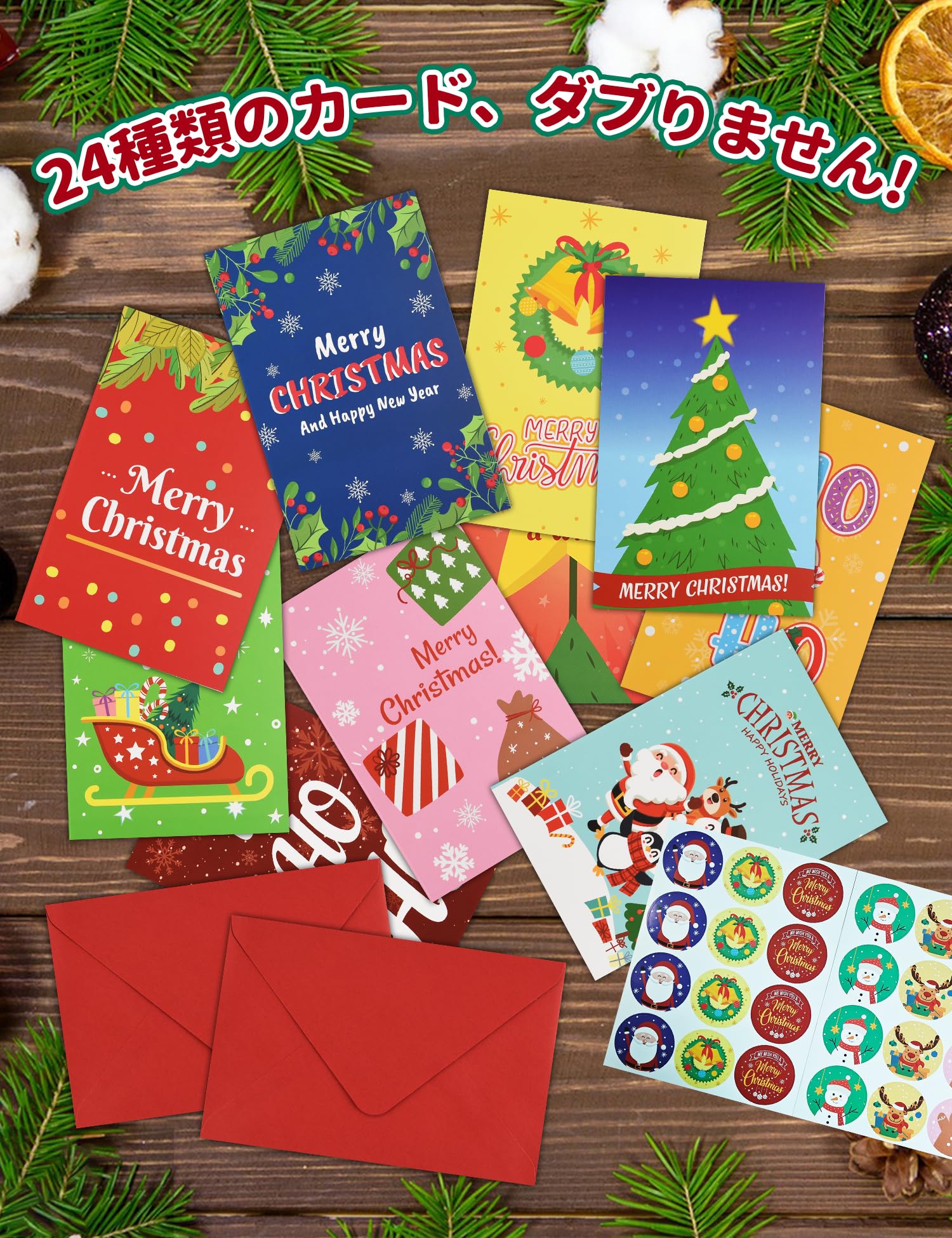 Kesote クリスマスカード メッセージカード 24枚セット 封筒付き グリーティングカード お祝いカード キラキラ 6デザイン クリスマスツリー ベル クリスマス靴下 トナカイ