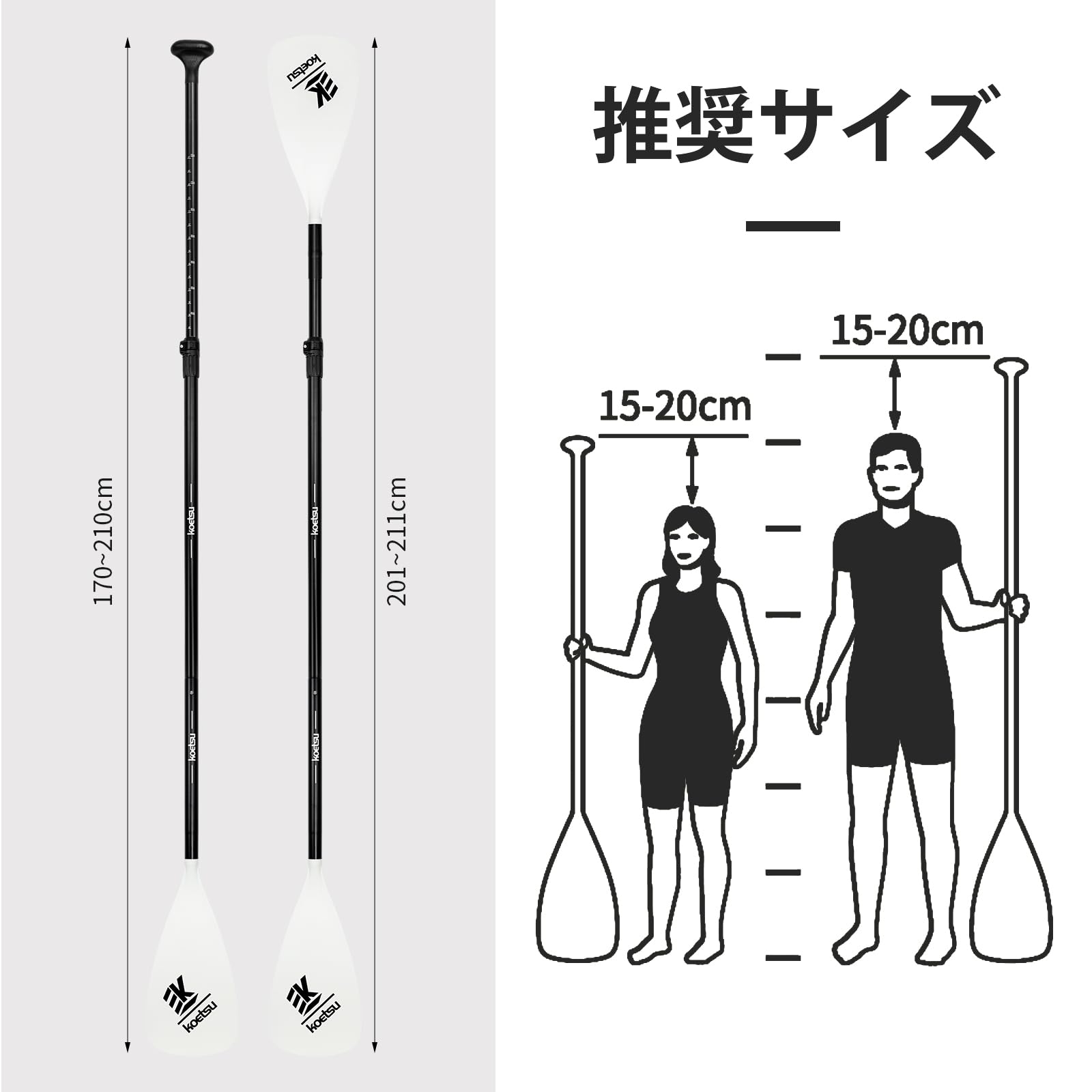 AQUBONA SUP パドル - 3ピース 100% カーボンファイバー 調節可能 スタンドアップパドルボードパドル ポータブル 耐久性 フローティングパドルボード 全長177-230cm