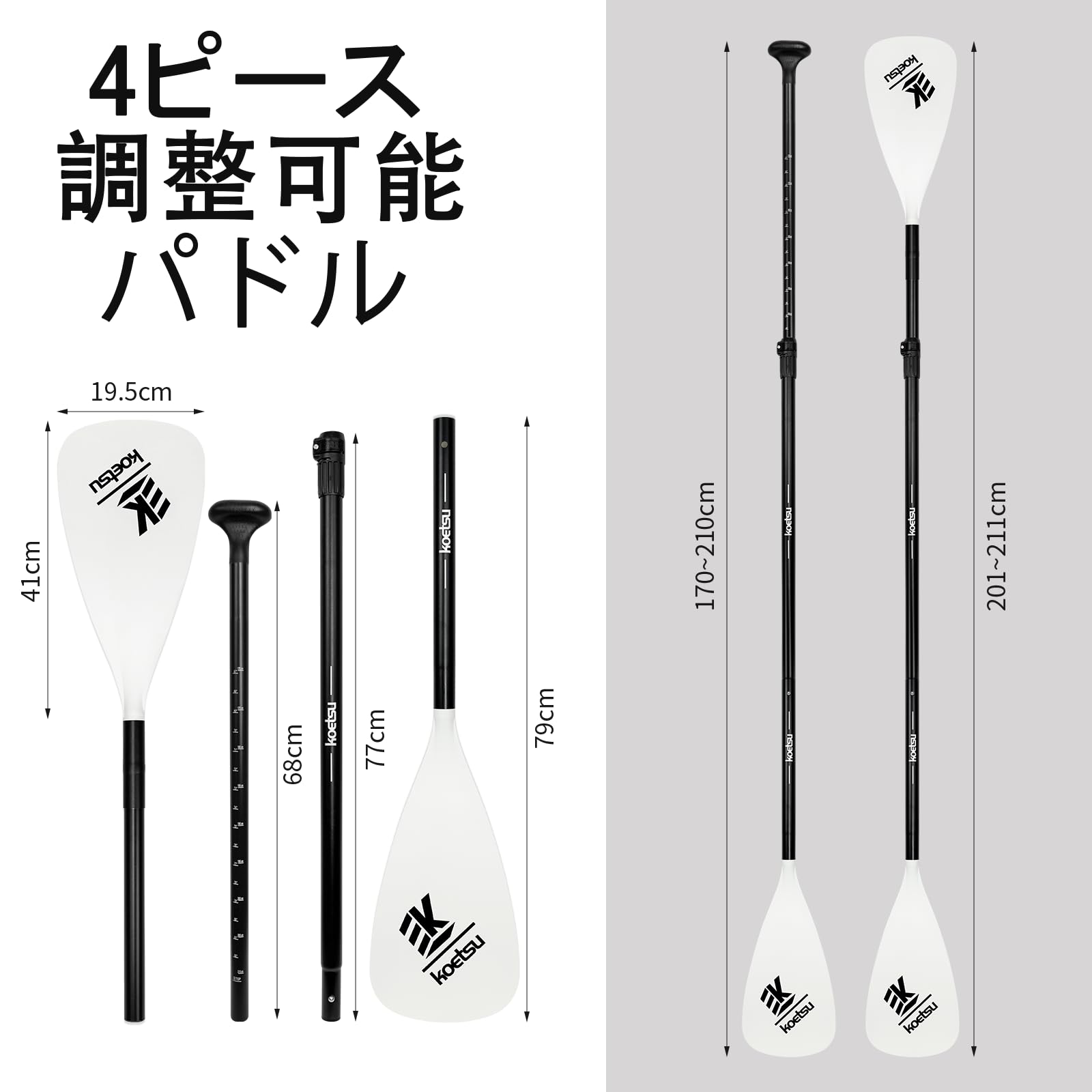KOETSU 軽量 デュアルパーパス 調節可能 SUP/カヌーパドル | アルミ合金製 フローティング ダブルエンドパドル | 4段階調整 & に基づいたグリップ | SUP、カヤック、釣りボートに最適
