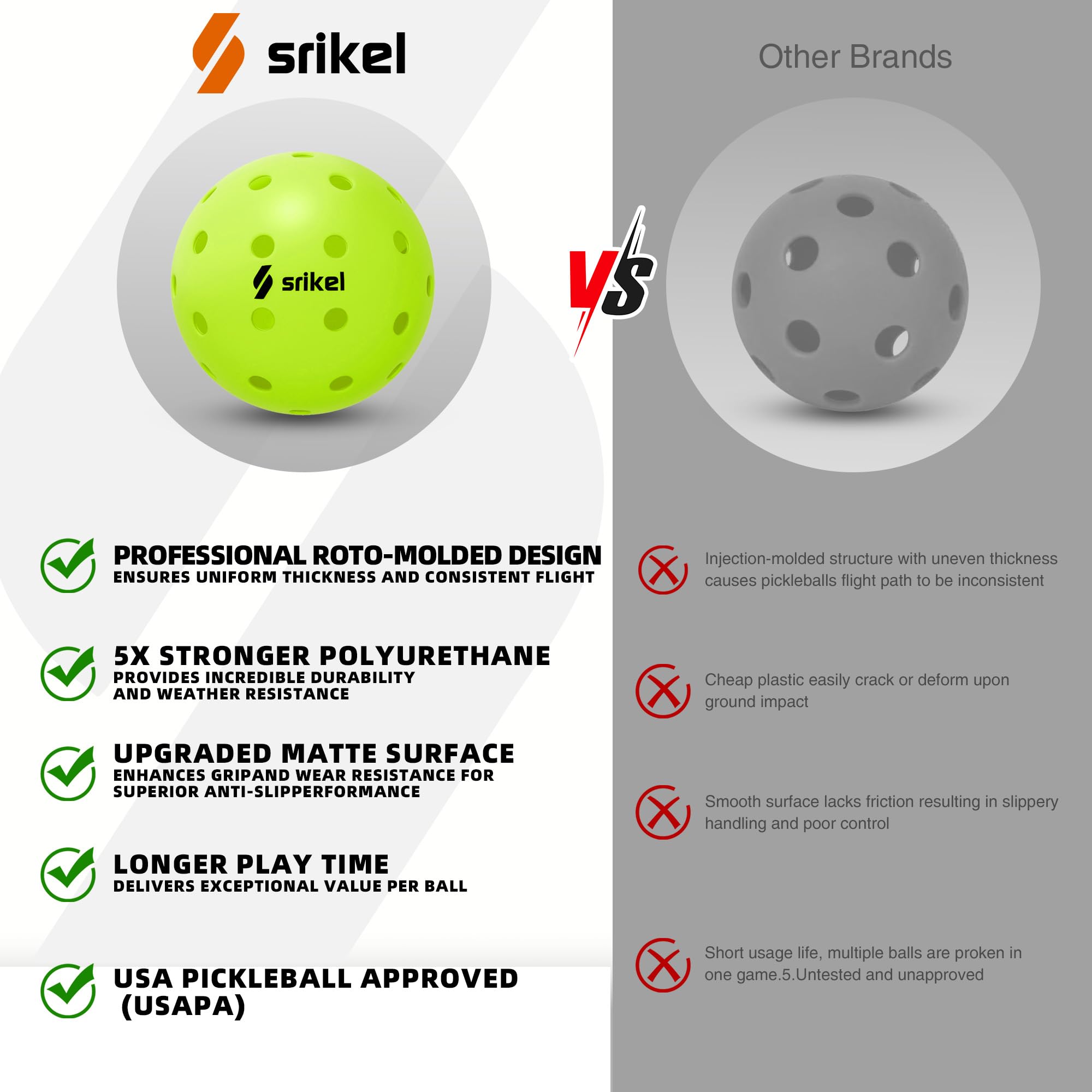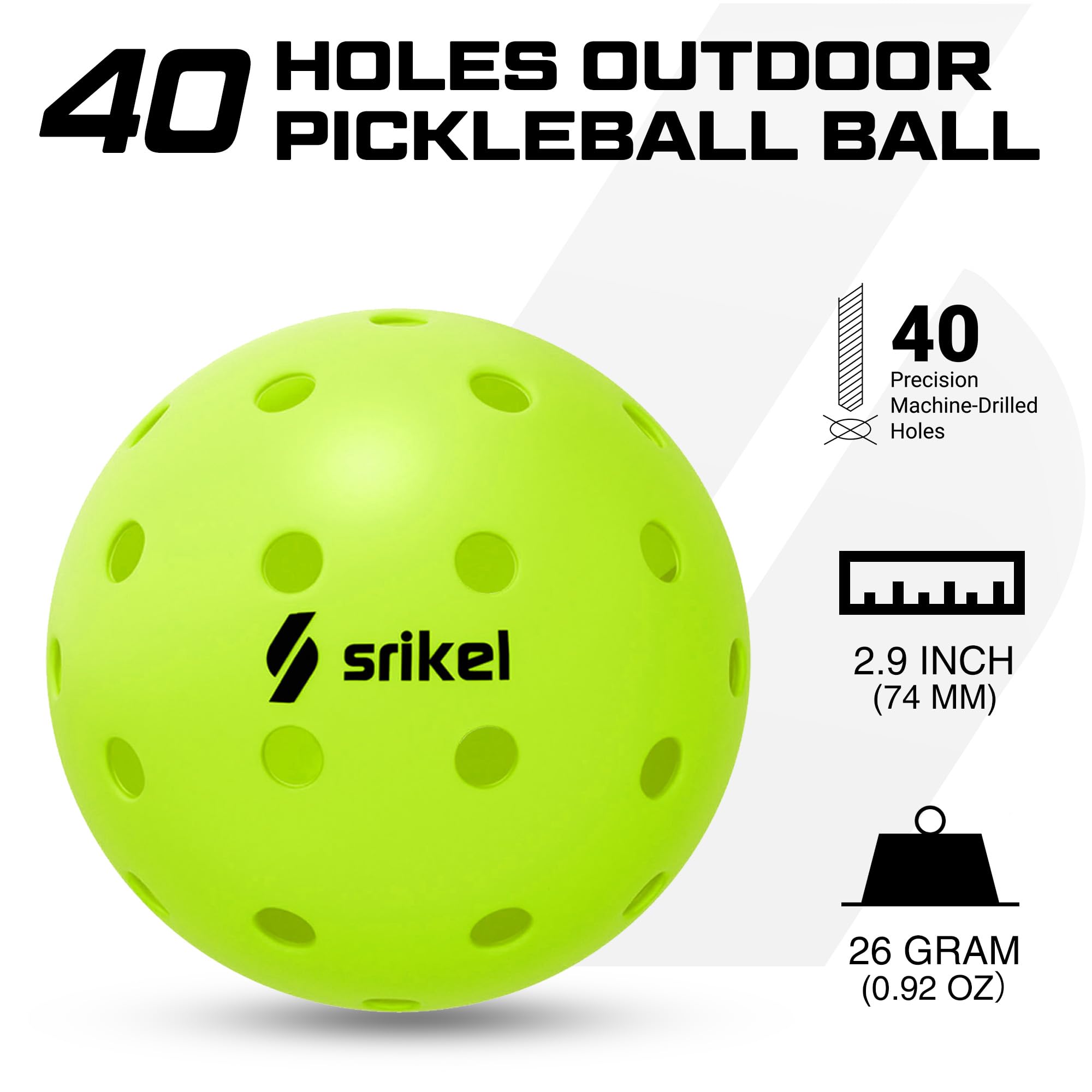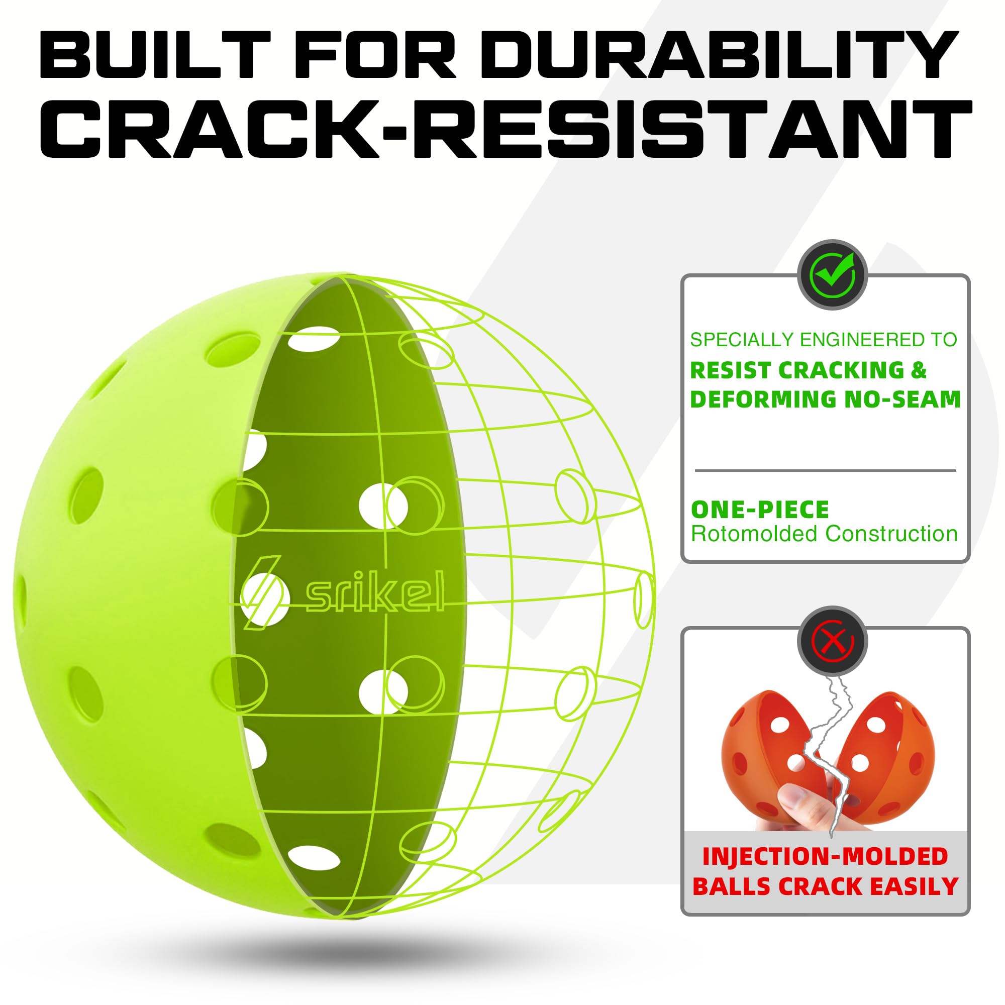 Srikel (スリケル) アウトドア ピックルボール - USAPA承認、シームレスなロト成形デザインで丈夫、4パック/12個パック、ひび割れに強い40穴ピクルスボール 初心者中級プロプレーヤー用