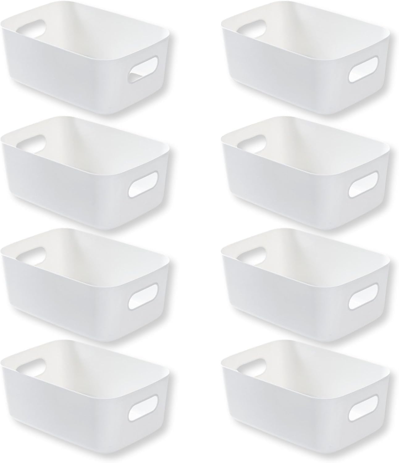 RAIN QUEEN 収納ボックス 小物入れケース 白 収納ケース プラスチック ポリプロピレンケース 収納カゴ 収納バスケット ホワイト 8個セット 雑貨整理 卓上収納 取っ手付き 小物 整理整頓 衣類収納 卓上収納 クローゼット 押入れ/洗面所/リビング/キッチン収納