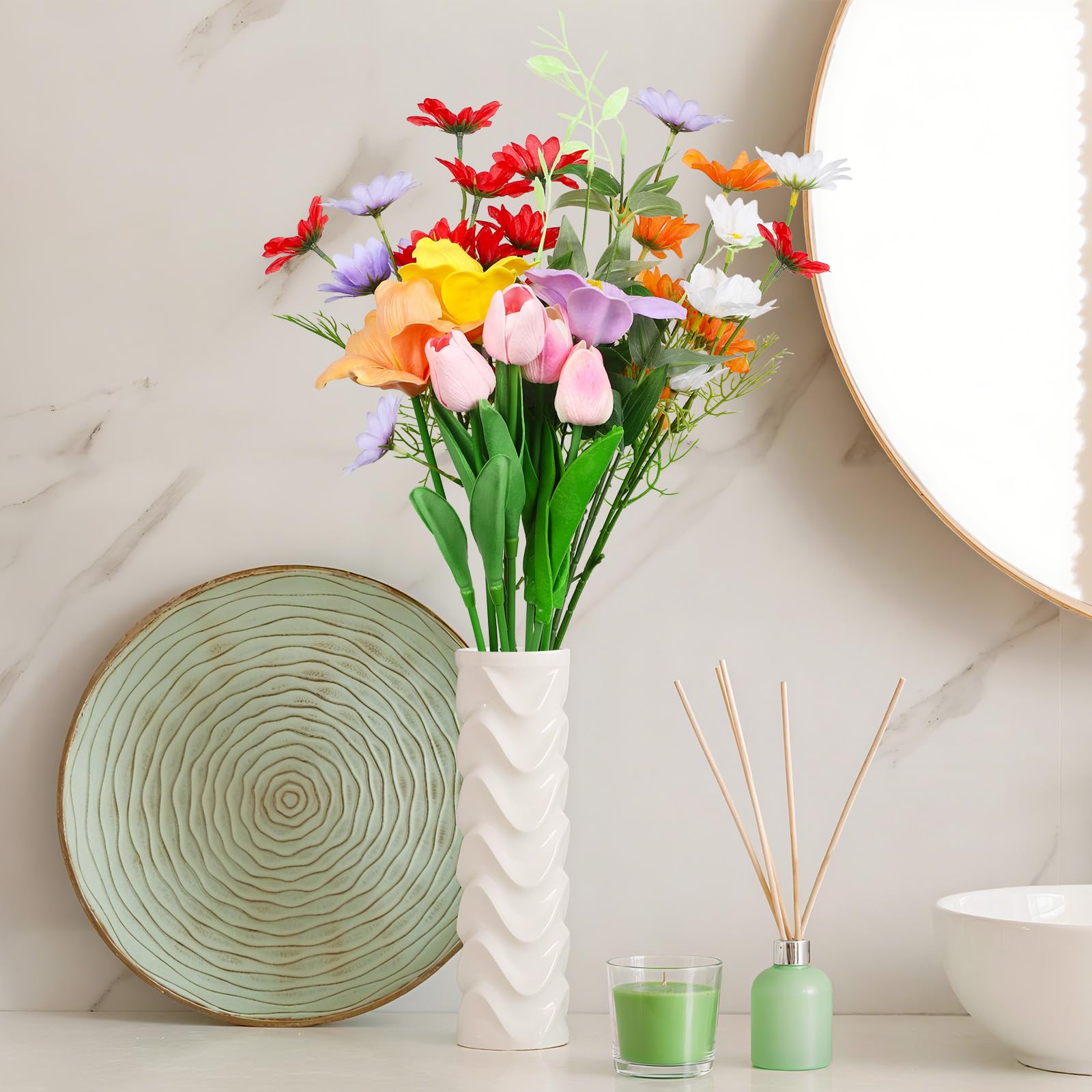 WillingYou 造花 インテリア おしゃれ雑貨 花瓶付き 枯れない花 蒲公英 大切な人へ感謝の気持ちを伝えるプレゼント 花束 アートフラワー 家 事務所 店 喫茶店 結婚式 パーティーなど様々の応用場所 マルチカラー