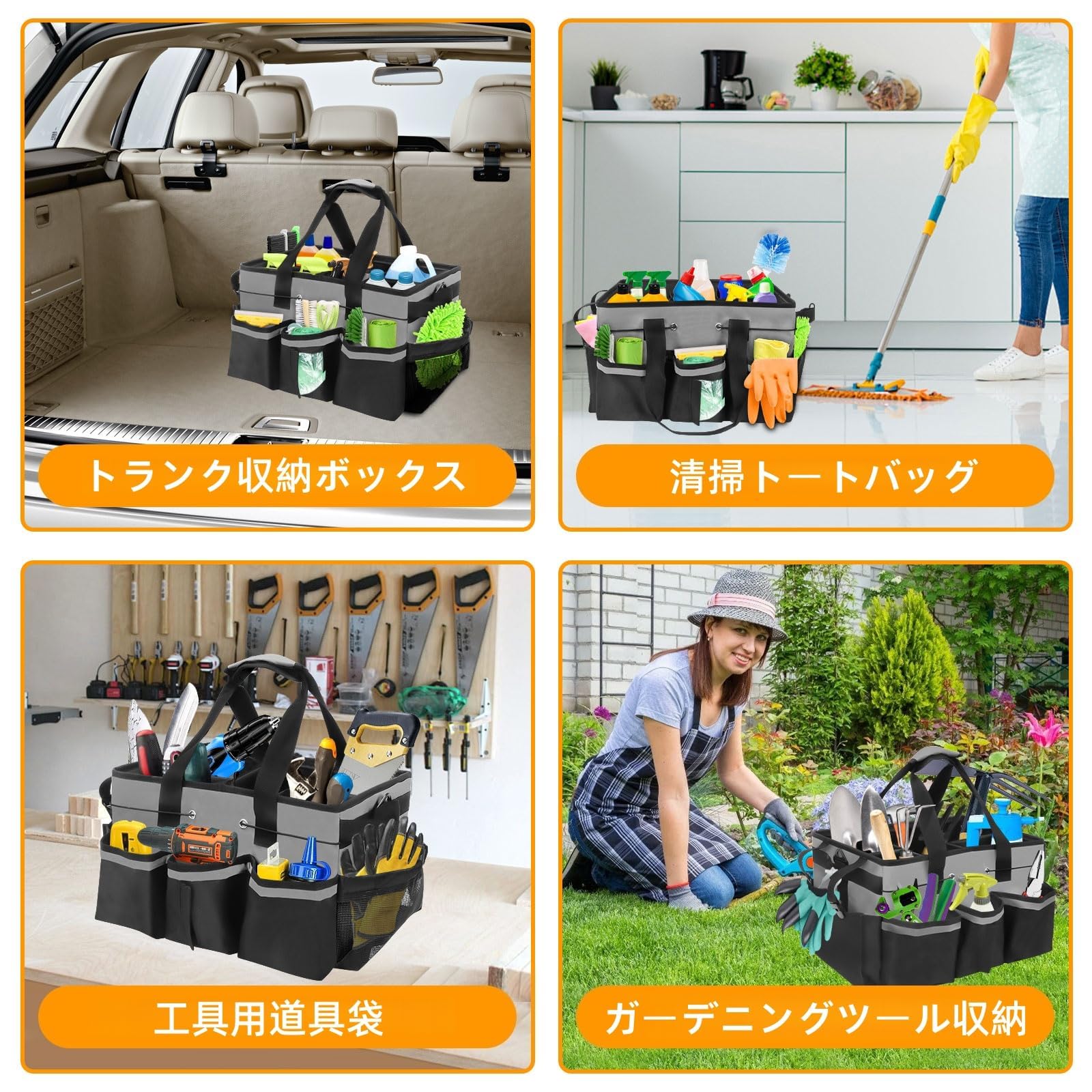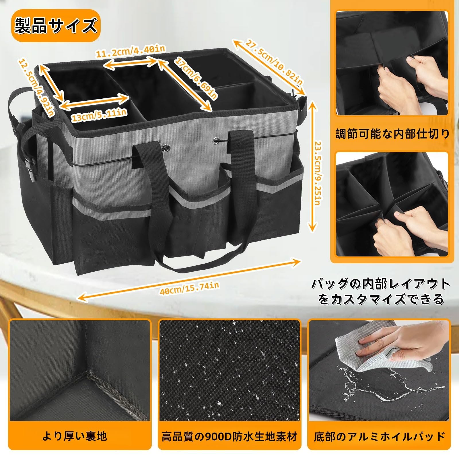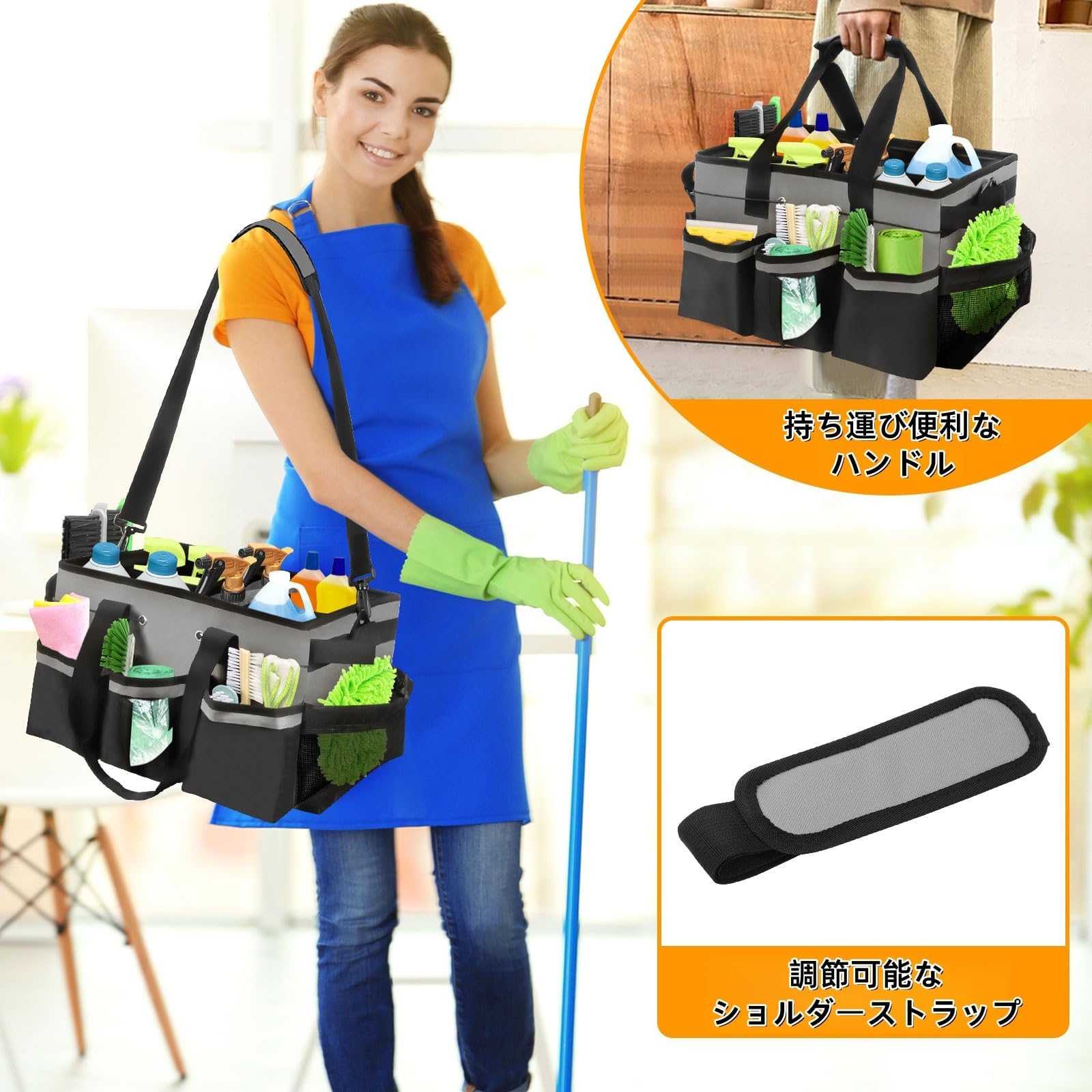 清掃用品収納バッグ 工具入れバッグ 多機能ポケット 防水 清掃スタッフ用ポーチ 2way コンパクト設計 ショルダーストラップ付き 取り外し可能な仕切り付き 作業用ケース 掃除道具 小物入れ 高耐久 クリーニングキャディバッグ cleaning caddy bag (グレー)