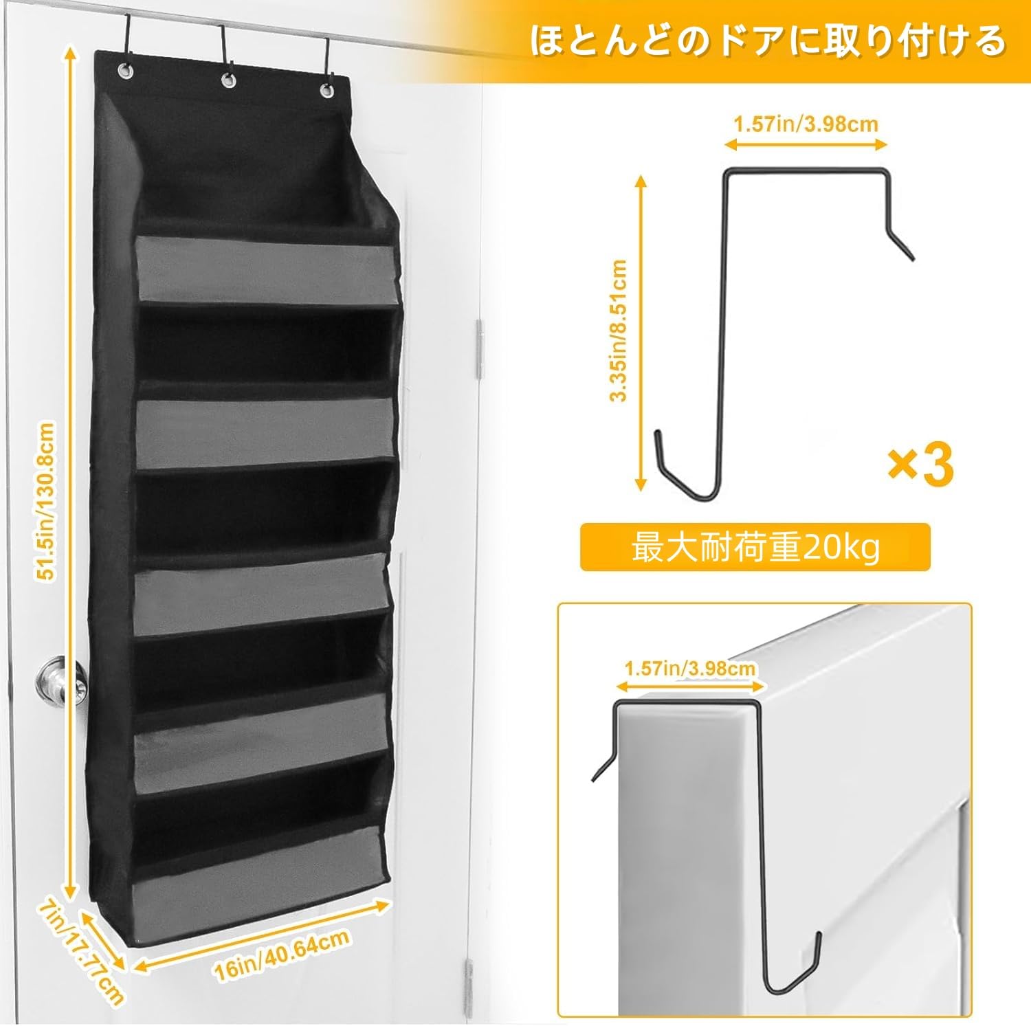 YOUDENOVA 吊り下げ収納 クローゼット 6段 通気繊維素材 帽子 衣類収納 不織布 衣類ラック 使いやすい 防湿防カビ 折りたたみ ポケット 省スペース ブラック 30x30x120cm