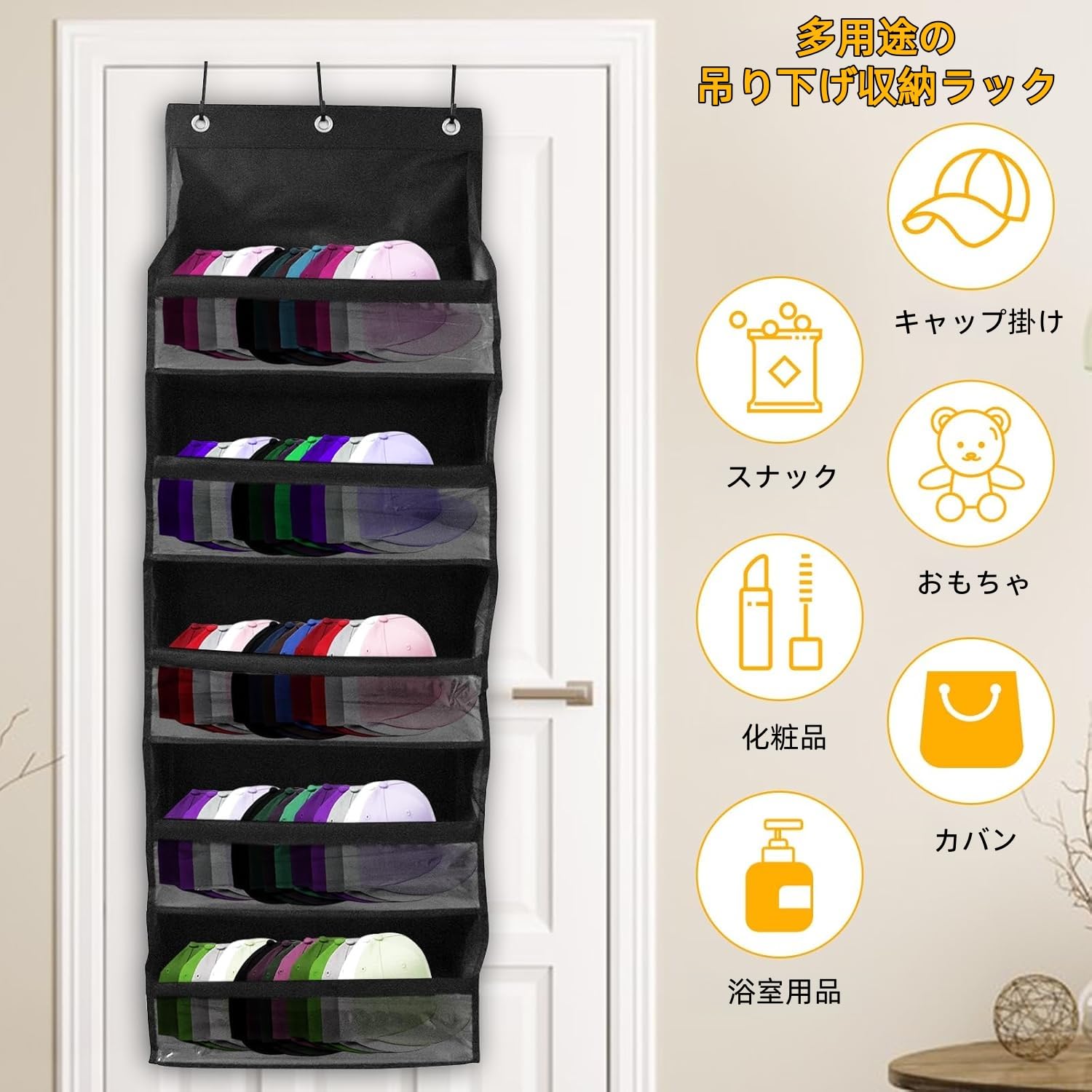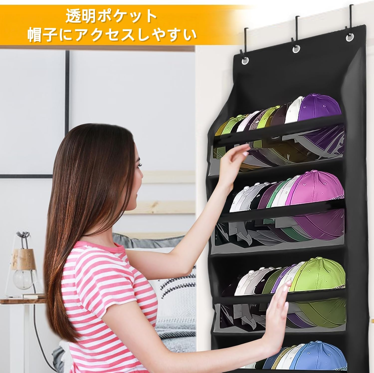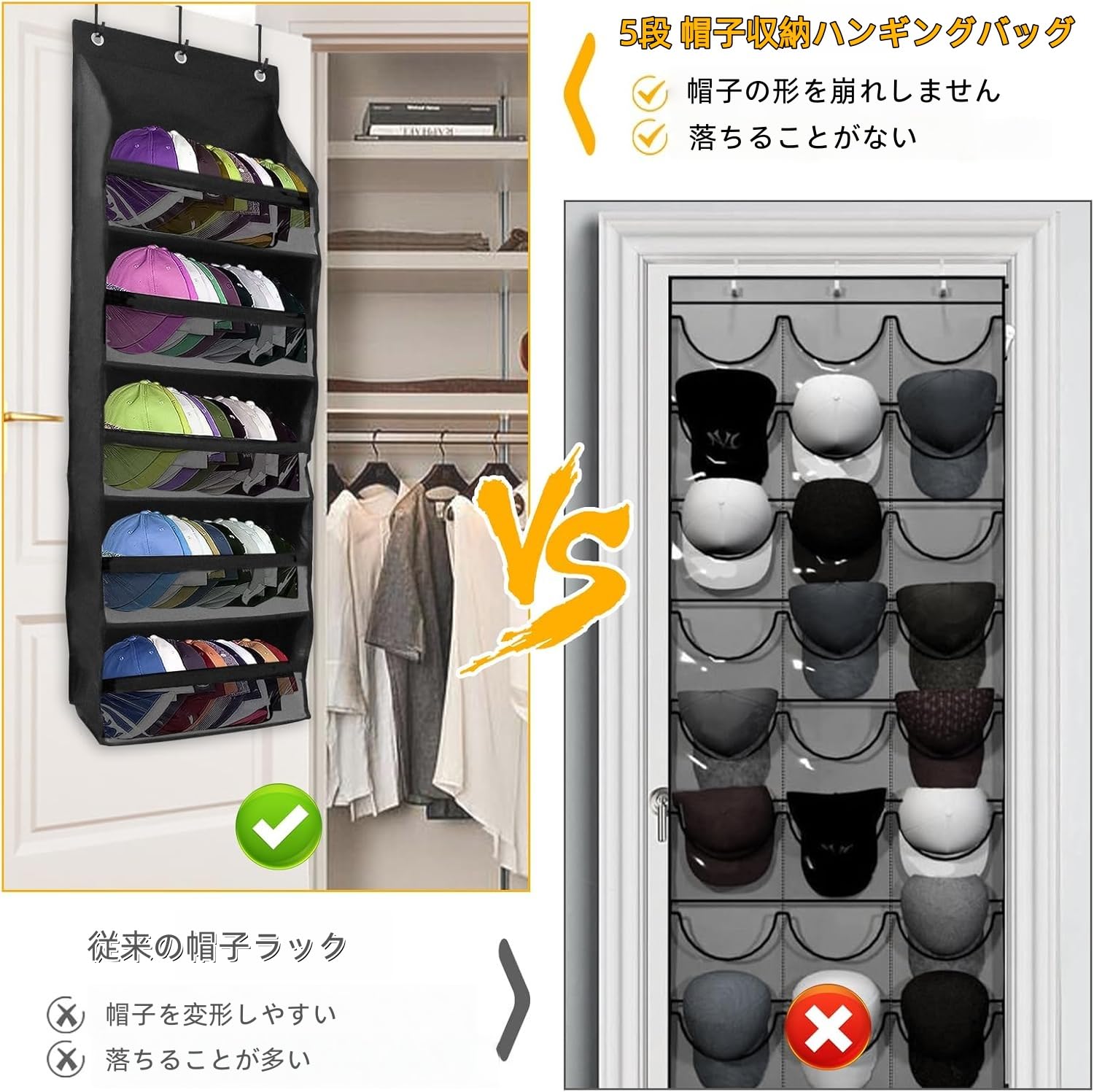 TeJoyce 帽子掛け 野球帽ラック ウォールポケット 壁掛け収納 5段 大容量 クローゼット吊り下げ収納 折りたたみ式 キャップ 収納ケース 多機能 省スペース ぬいぐるみ おもちゃ カバン キャップ 服 シューズラック