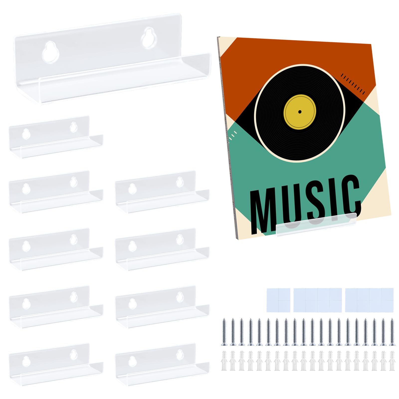 TeJoyce 透明 レコードラック アクリル製 10個セット レコード壁掛け棚 cd 飾る マガジンラック 簡単取付 ネジとテープ付き 写真 フィギュア 展示棚 壁面収納 ディスプレイ