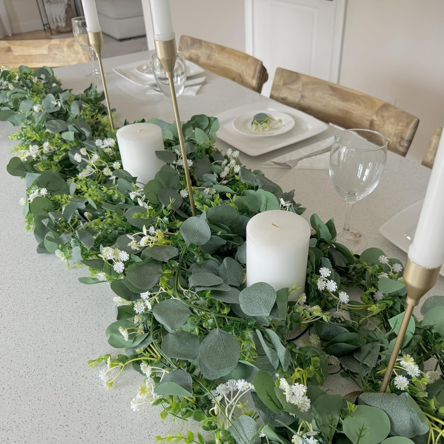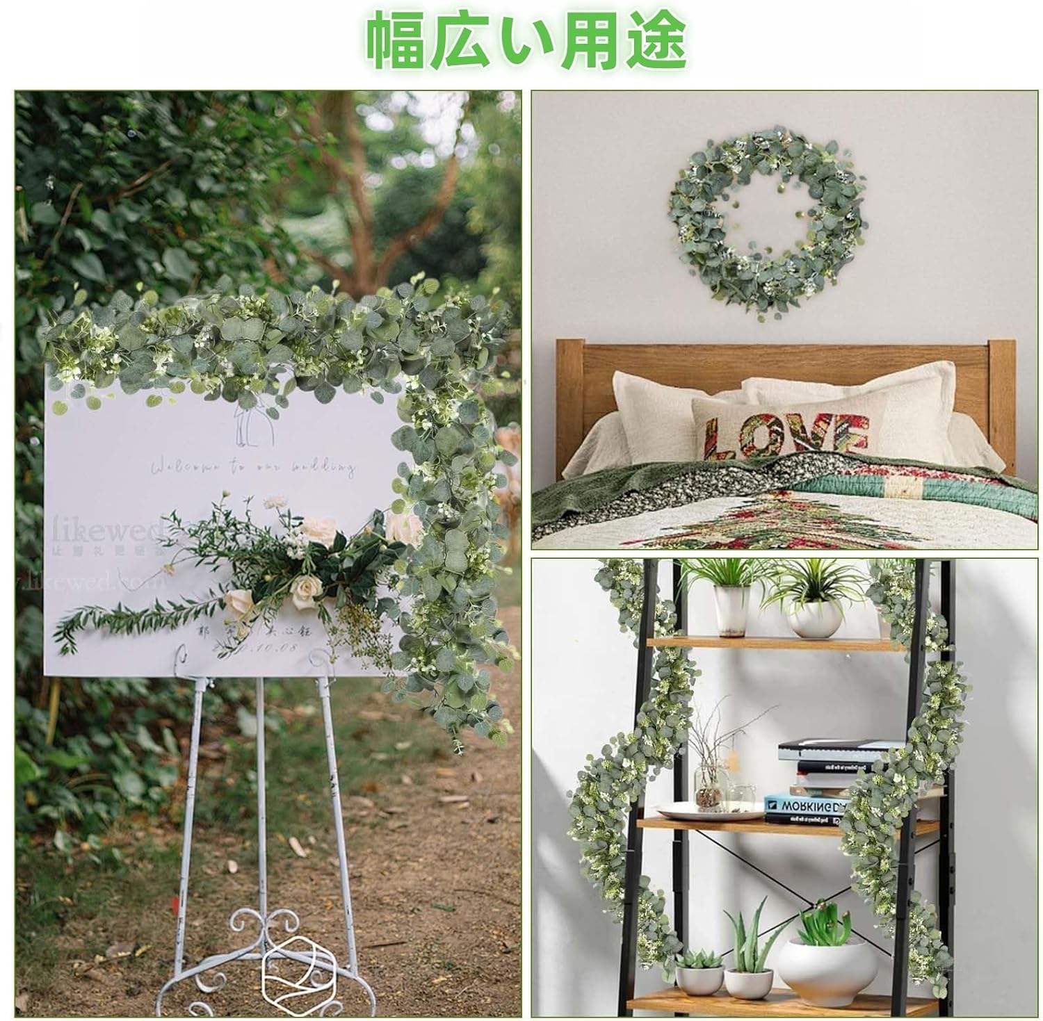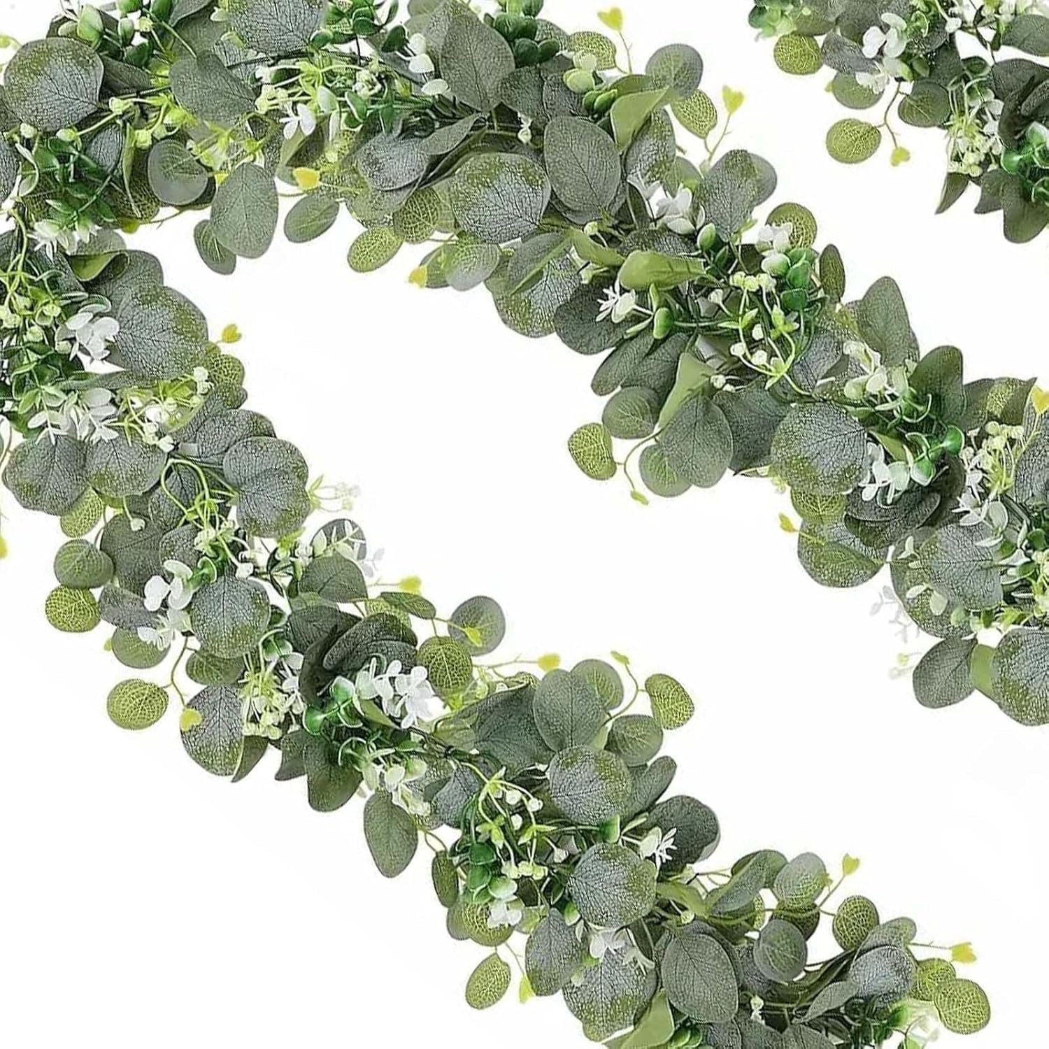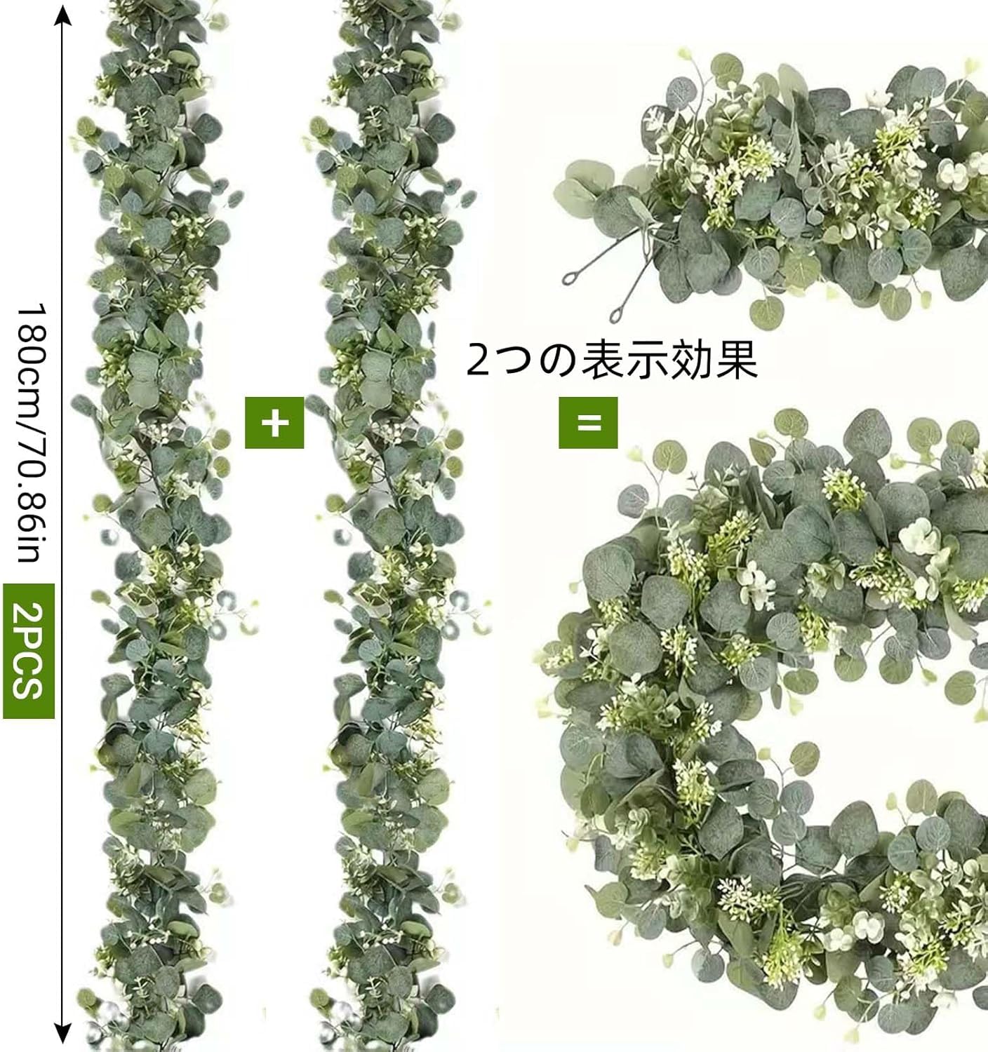 TeJoyce 2本入り フェイクグリーン 人工観葉植物 自然感 防水 グリーンガーランド 180cm 造花藤 葉物 切り分け可能 室内 インテリア 吊り ベランダ 目隠し 壁掛け デコレーション 店舗 玄関ベランダ 母の日 結婚祝い 卒業祝い 飾り用 撮影用 DIY 雑貨 置物 eukalyptus girlande