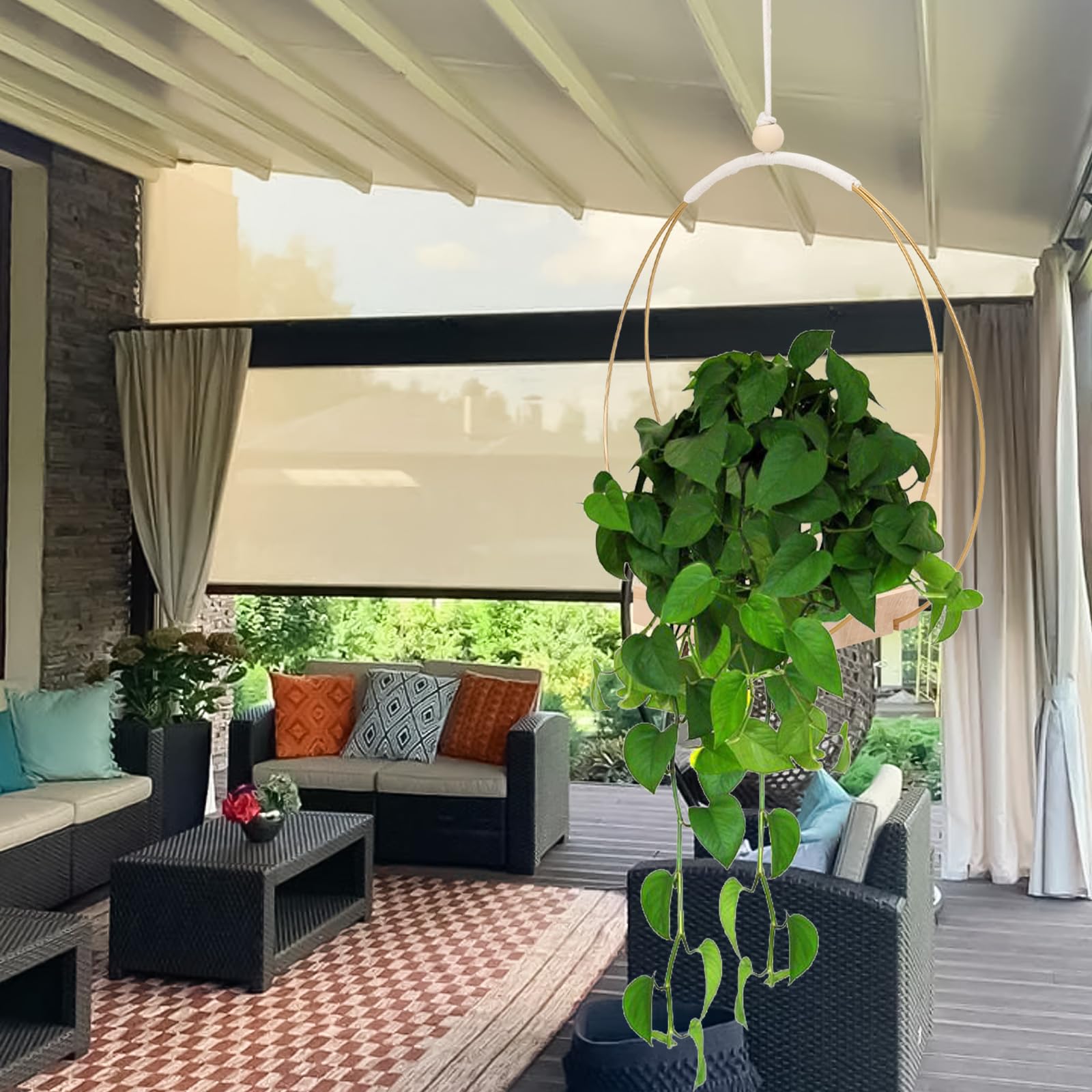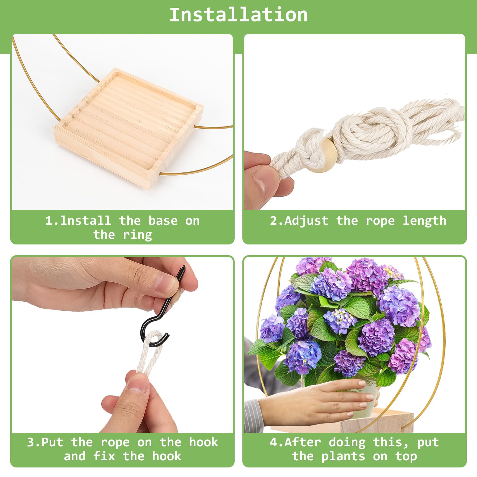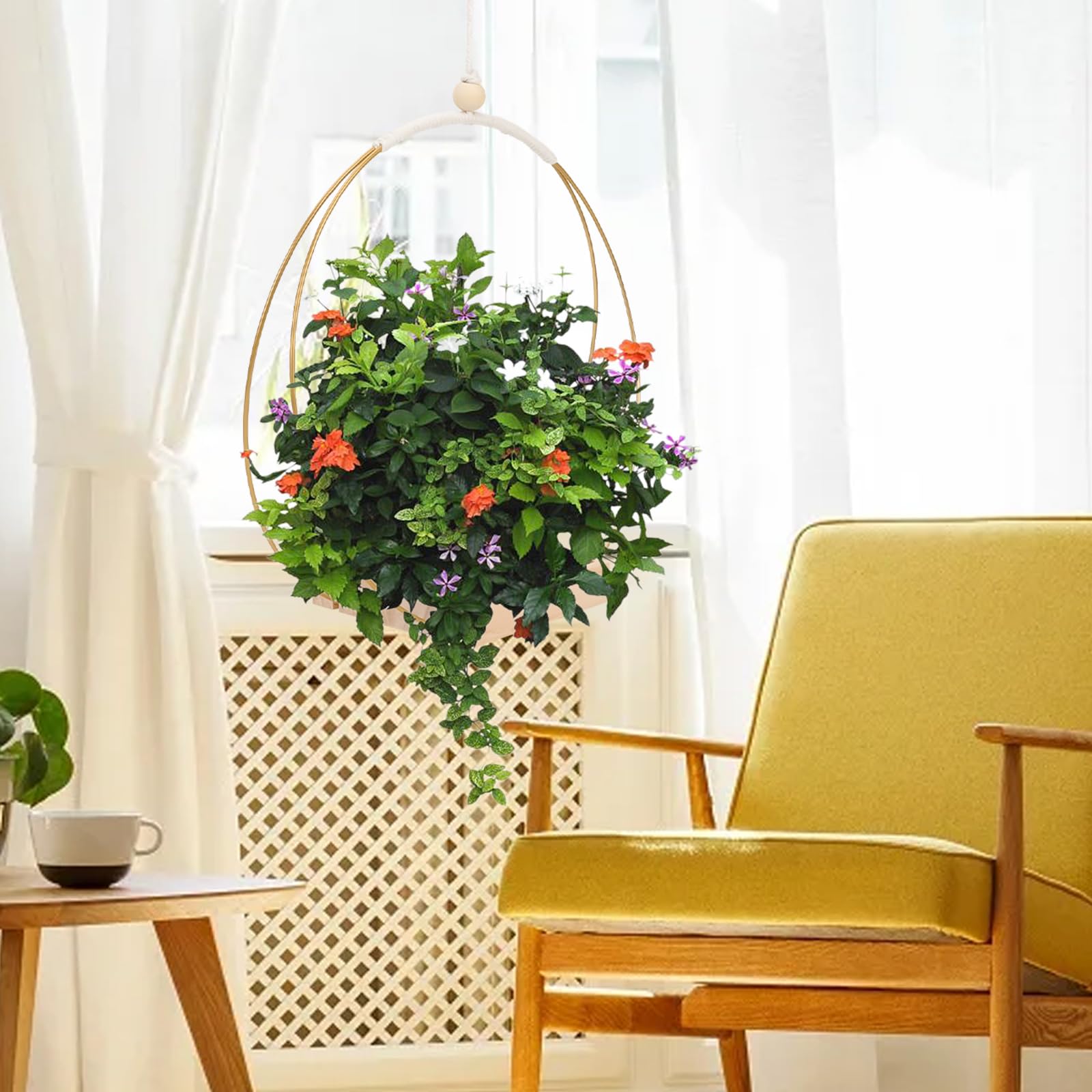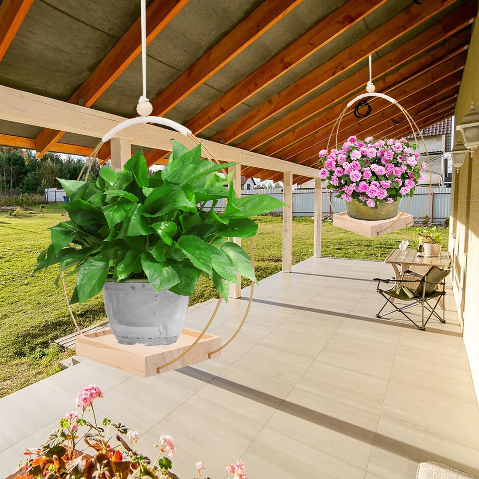 ハンギングプラントポット 植木鉢 2個セット ハンギングプランター 吊り下げプランター 吊り鉢 木製ベース 金属リング付き 観葉植物 おしゃれ 吊りプランター 耐荷重10kg 取り付け簡単 リビング ガーデン ベランダ 室内 屋外 (ゴールド(木色ベース))