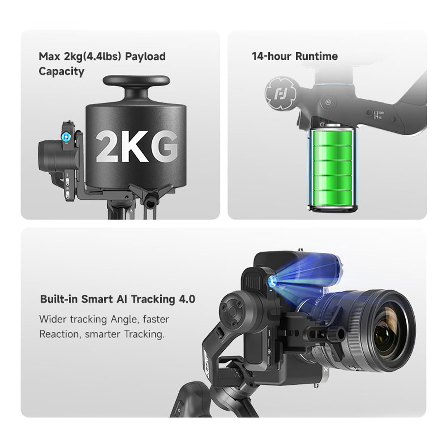 FeiyuTech SCORP-C2 カメラスタビライザー, ジンバル スタビライザーミラーレス/一眼レフ用, DSLRジンバルにとってSony/Canon/Panasonic/Lumix/Nikon/Fujifilm対応AIトラッキング内蔵カメラジンバル、ネイティブ垂直撮影耐荷重3.5kg