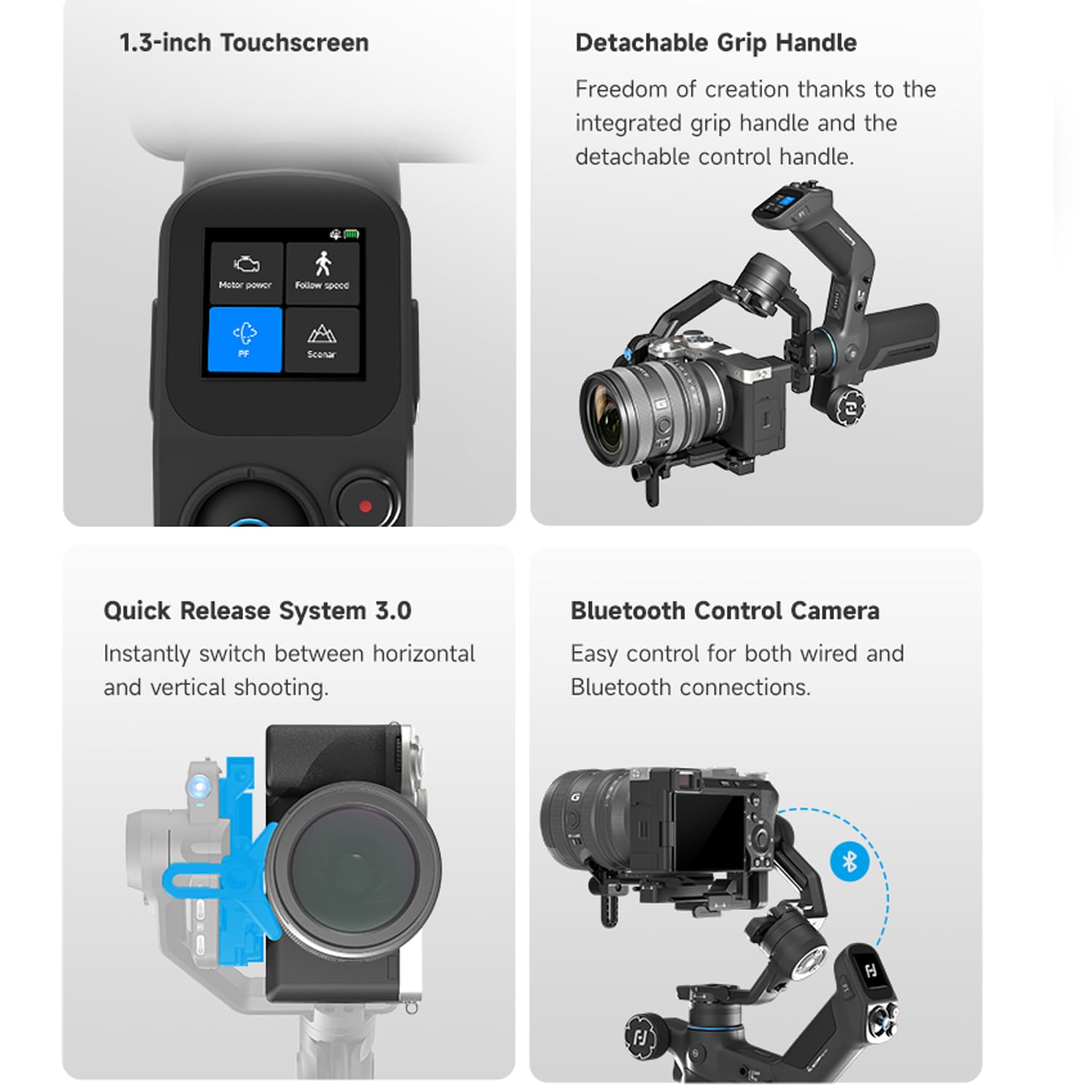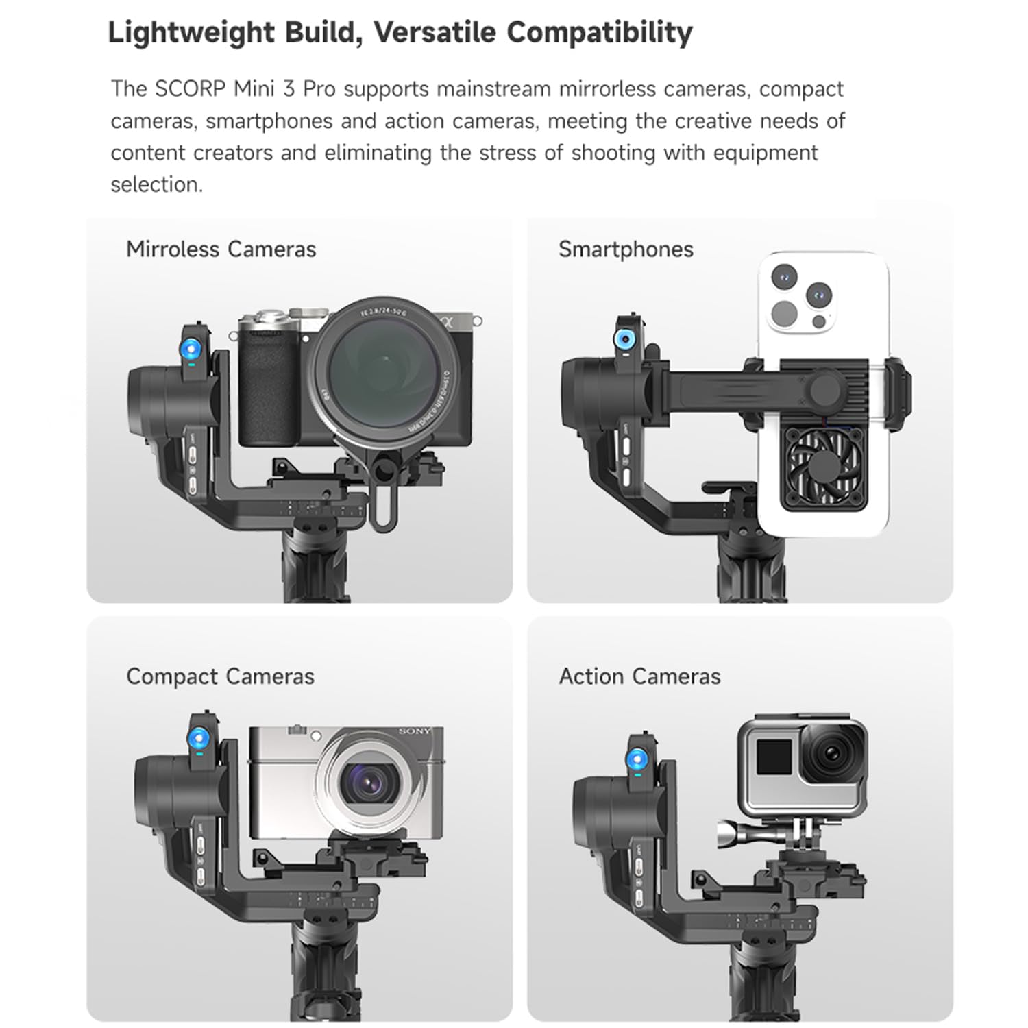 FeiyuTech SCORP Mini 3 Pro カメラジンバル AI追跡センサー & 取り外し可能なリモコン 2kg耐荷重オールインワンカメラスタビライザー 縦撮り撮影 & タッチスクリーン