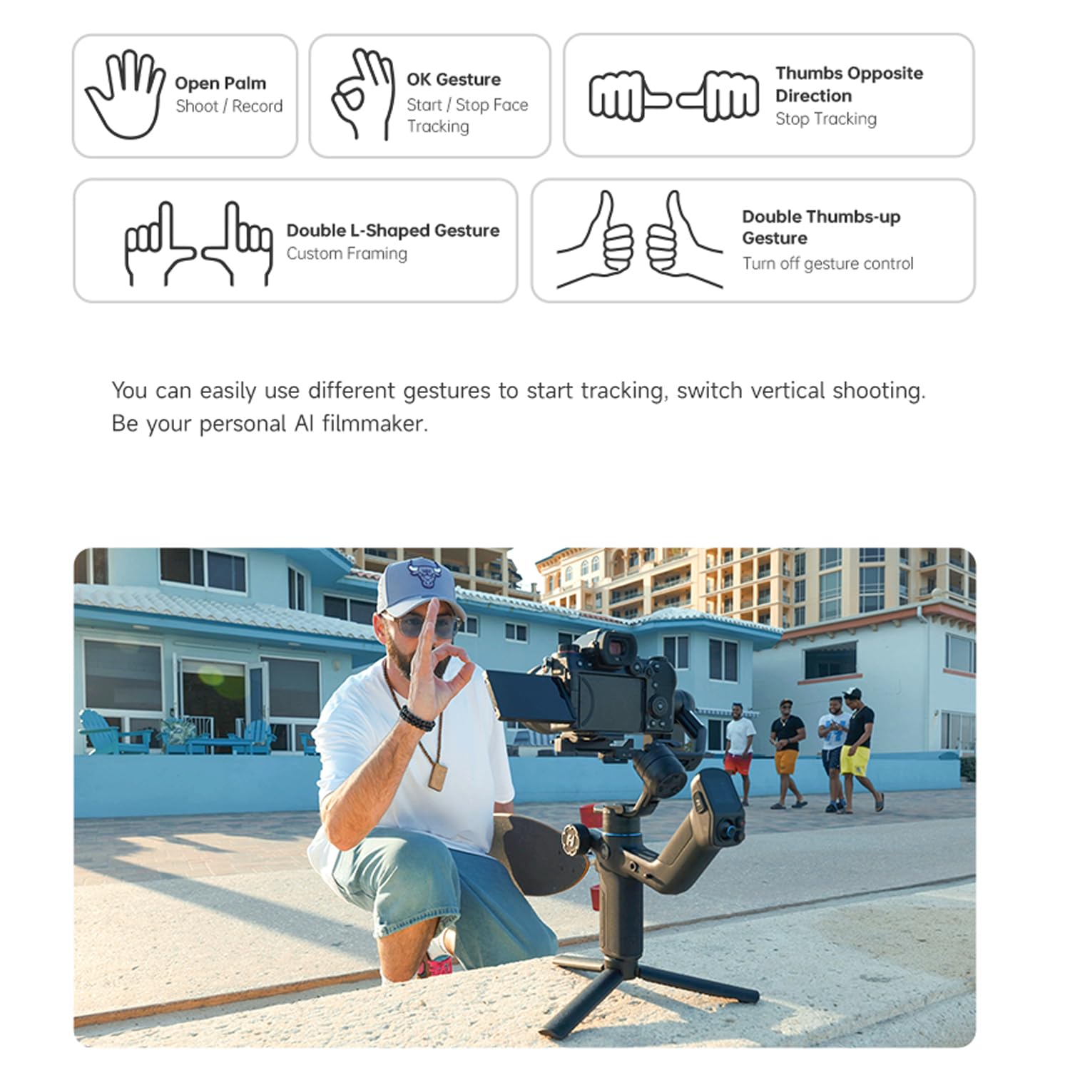 Hohem V3 ジンバルスタビライザー フィルライト付き磁気AIトラッキングセンサー 3軸ジンバル 着脱式リモコン 延長ロッドと三脚内蔵 折り畳み式で持ち運び可能 ビデオ撮影
