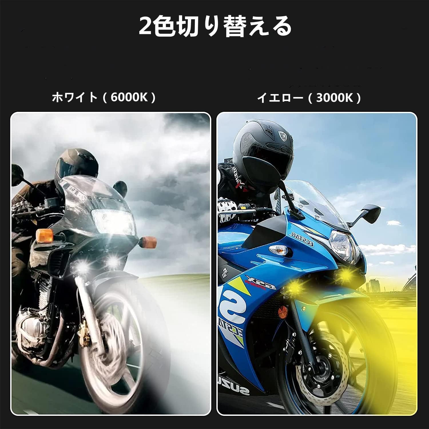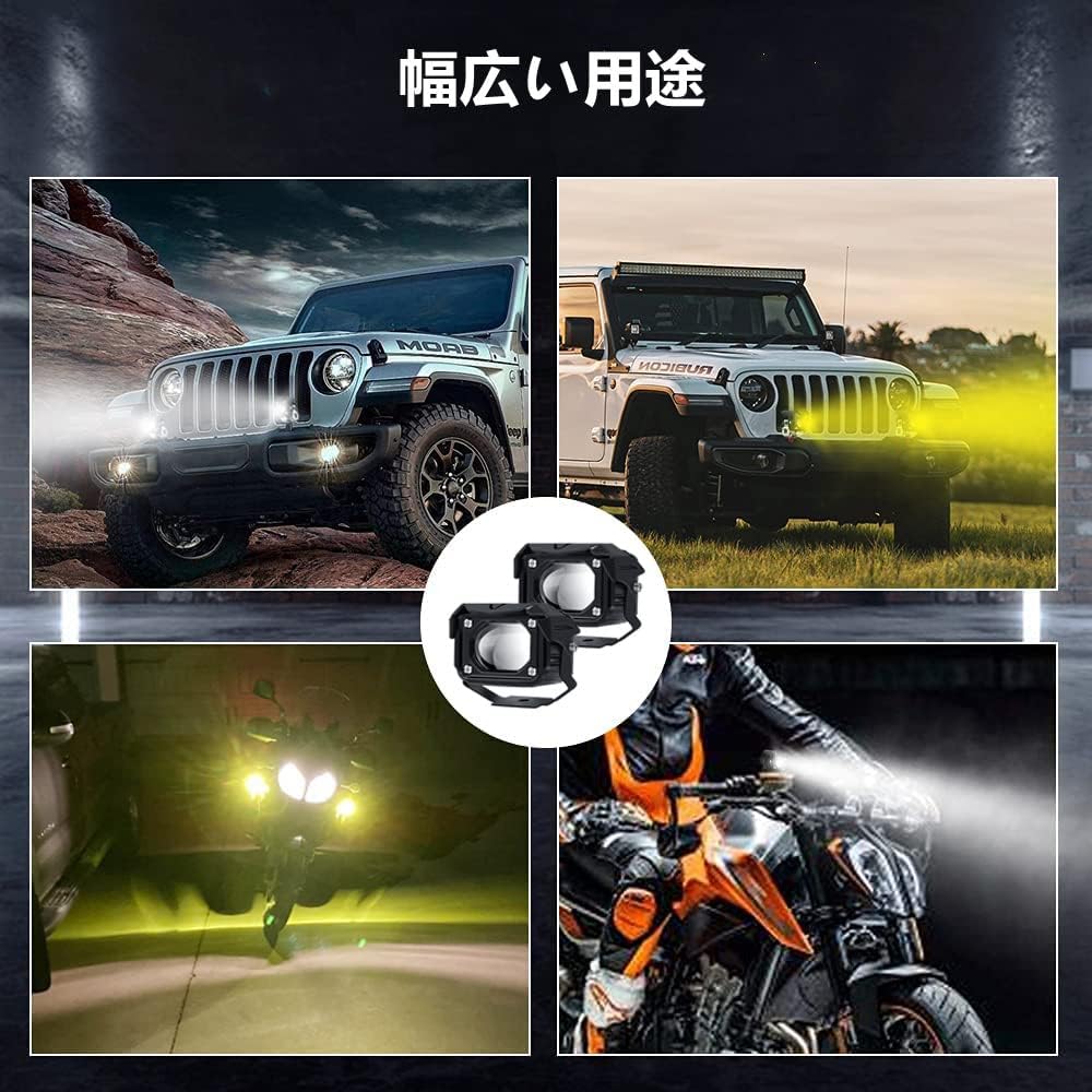 バイク フォグランプ LED 2個セット 2色切り替え ホワイト イエロー 常時点灯 補助灯 車外灯 前照灯 高輝度 防水 耐衝撃 機械照明などに汎用 (A)