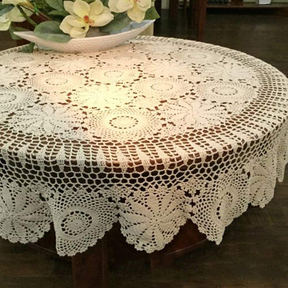 Yizunnuベージュ直径51インチラウンド手作りかぎ針編みのテーブルクロス(サイズはカスタマイズ可能です)