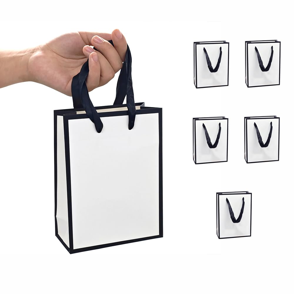 紙袋 手提げ プレゼント 袋 ギフトバッグ 小 引き出物袋 縦型 厚手タイプ 丈夫で耐久性があり 再利用可能 クラフト紙袋 結婚式 包装 パーティー 誕生日 贈り物 お土産 クリスマス用ギフトバッグ(12*5.7*16cm・6枚セット・ホワイト&ブラック)