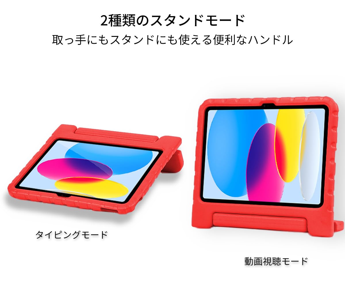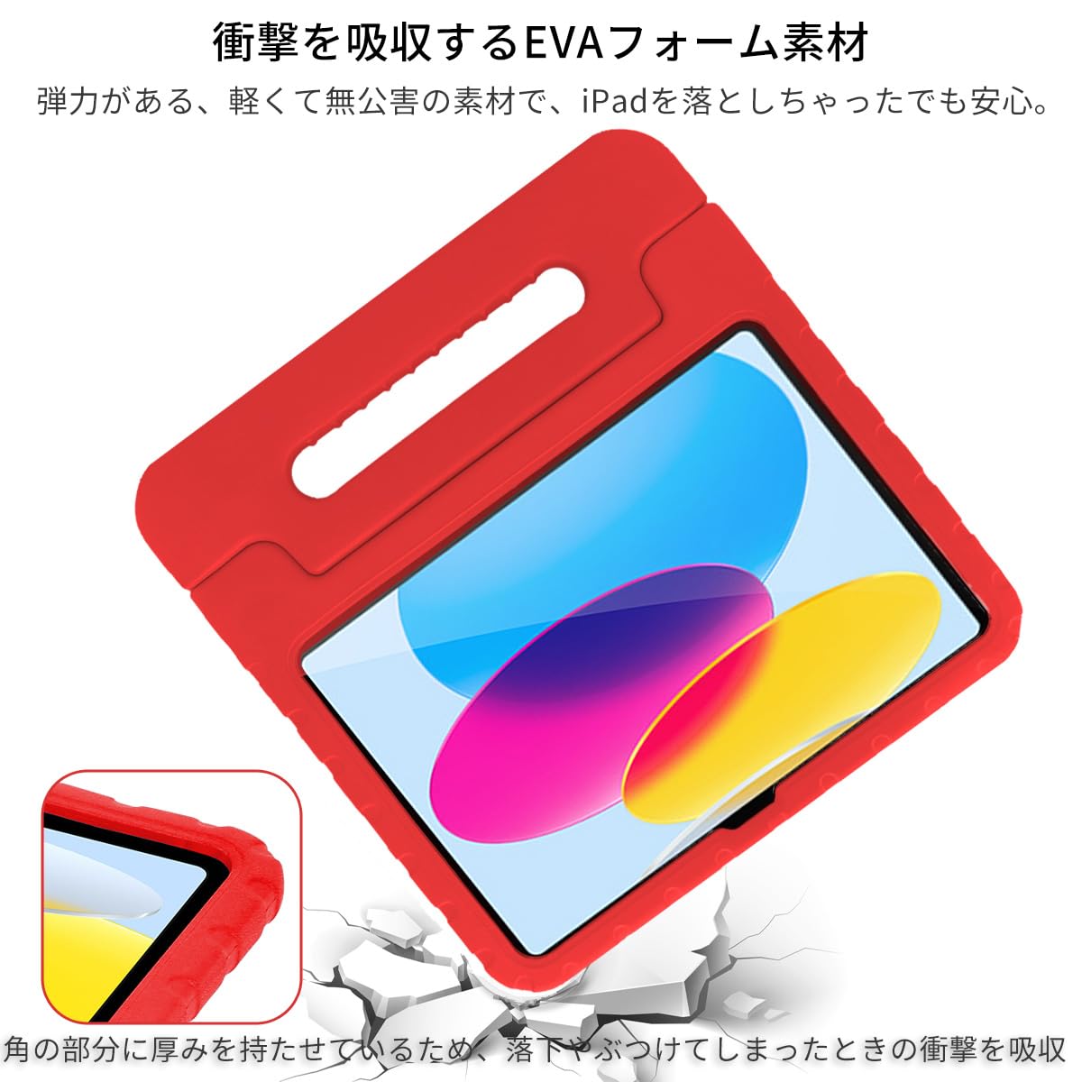 iPad 11世代 ケース iPad 10世代 2025 11インチ 2022 10.9インチ 子ども用 キッズ 耐衝撃 軽量 スタンド機能 EVA ペン収納 ペンホルダー ハンドル付き 保護 カバー (レッド)