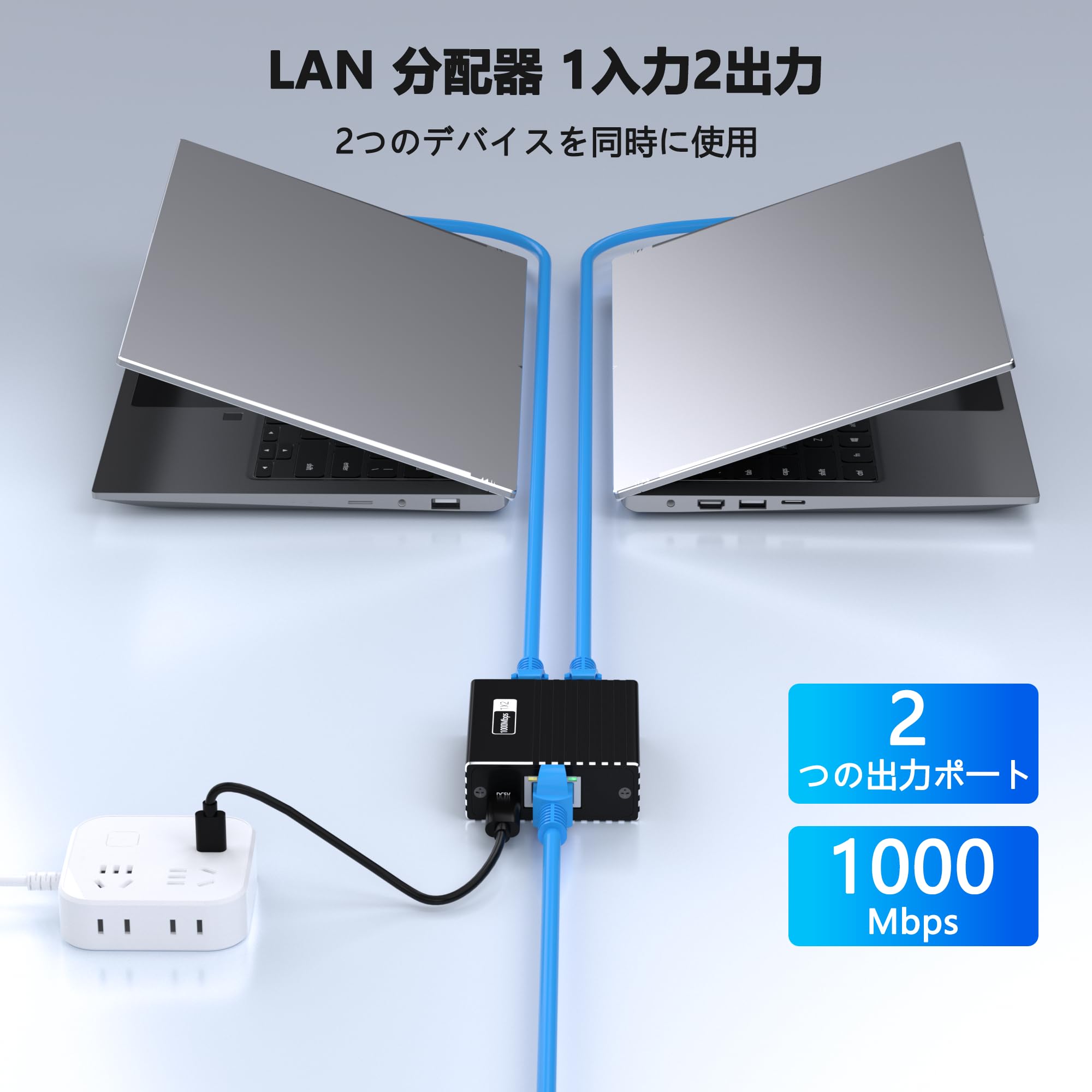 LAN ハブ 1入力2出力 スイッチングハブ ランケーブル付き(1.5m) LAN 分配器 RJ45 Hub 高速1000Mbps 3ポート増設 2台同時使用 有線イーサネットアダプター ネットワークケーブル 分岐 ネットワーク拡張 二股同時出力 Cat5/Cat5e/Cat6/Cat7/Cat8対応 イーサネットアダプタ 有線中継器 Switch/PS5/PS4に対応