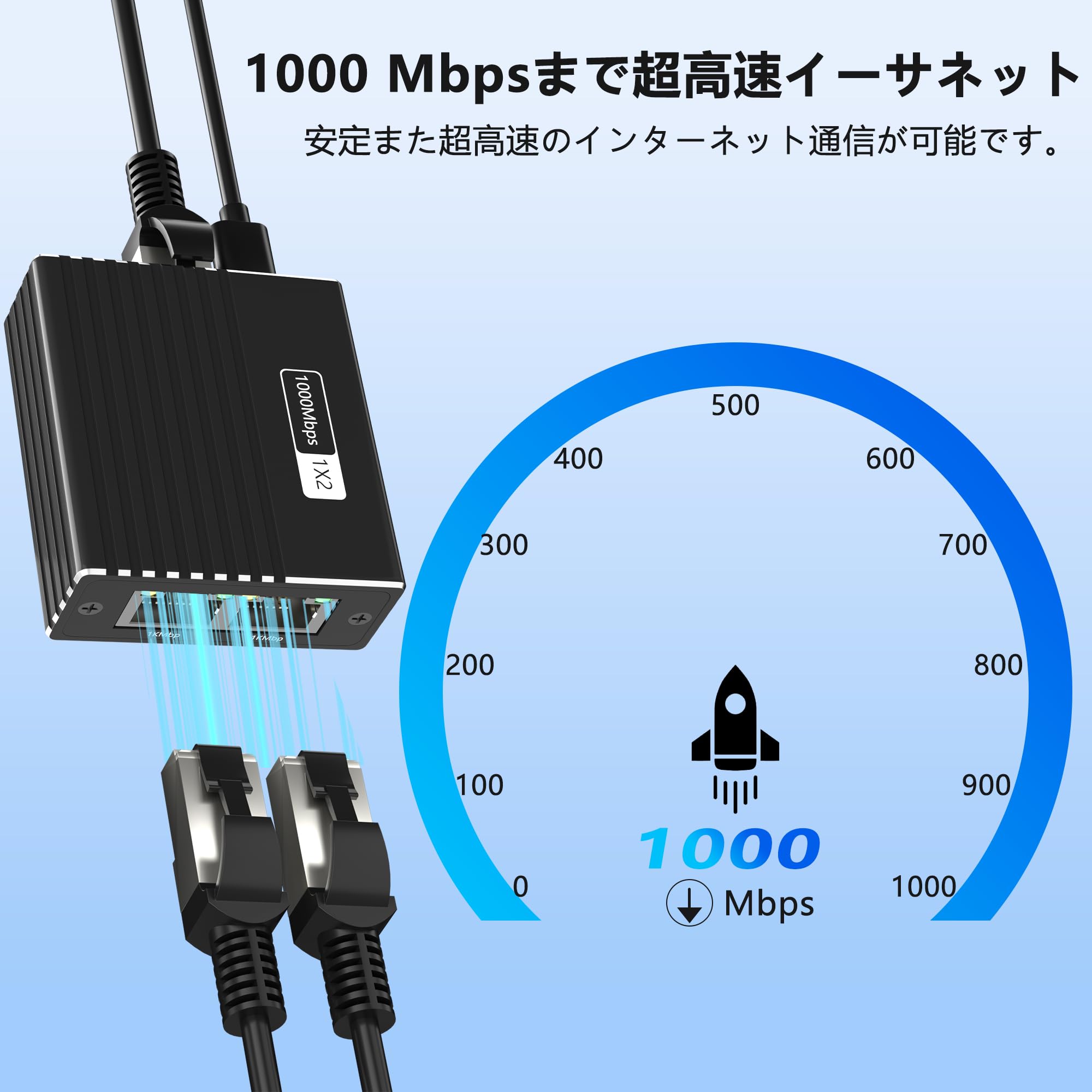 QAREQU RJ45 ネットワークスプリッタ 1000Mbps 2 台の PC デバイスが同時に動作するギガビットインターネットシェアハブ