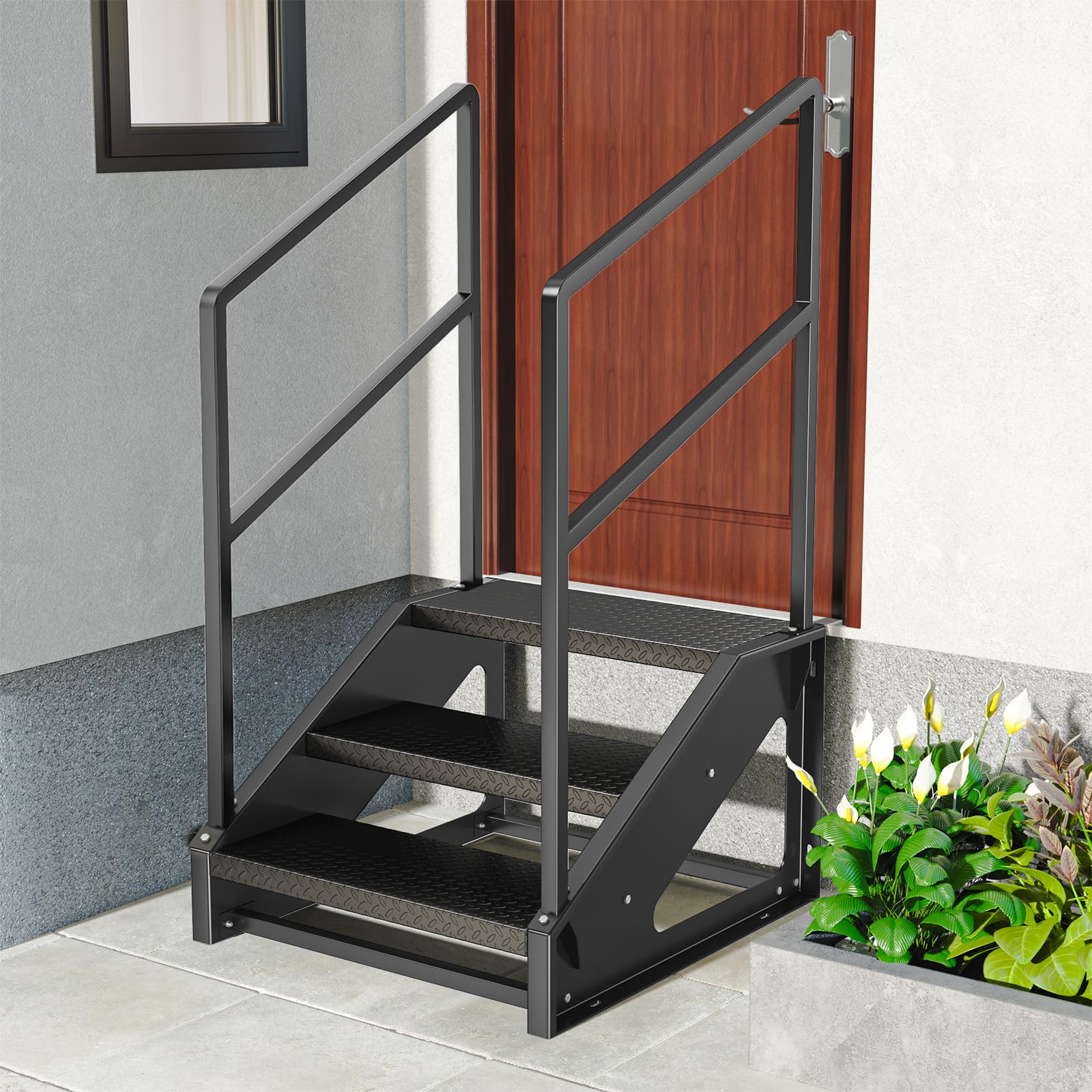 DLEESUYS 黒い踏み台の手すり 屋内屋外階段手すり 工業 家庭 玄関 バルコニー 庭 倉庫 ヴィラ ガーデン 廊下 耐久性 高さ85cm TB-001FS (1, 3段)