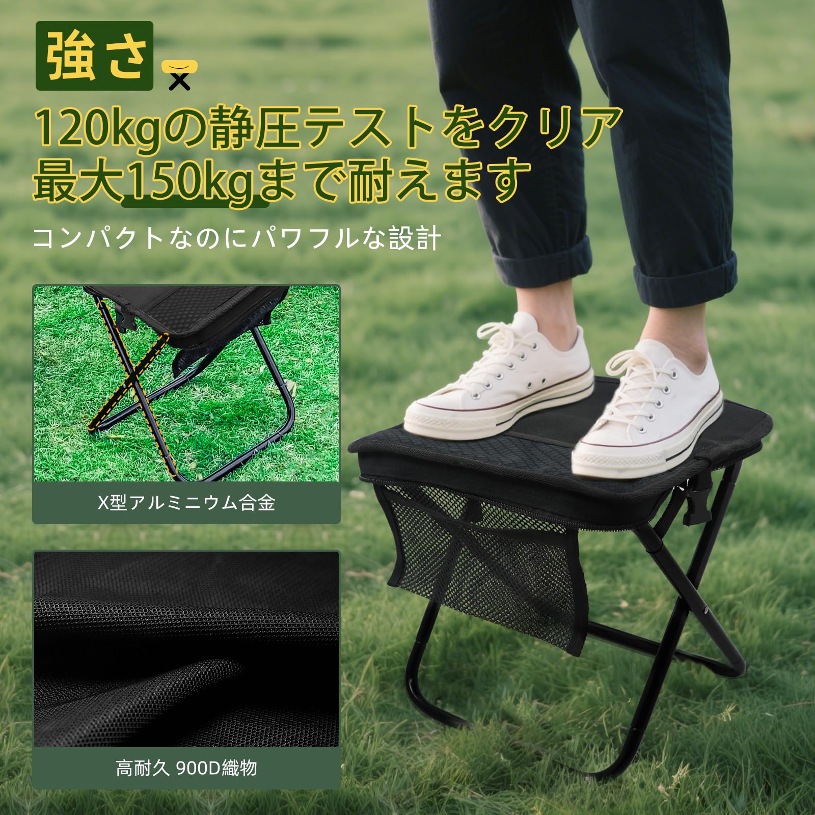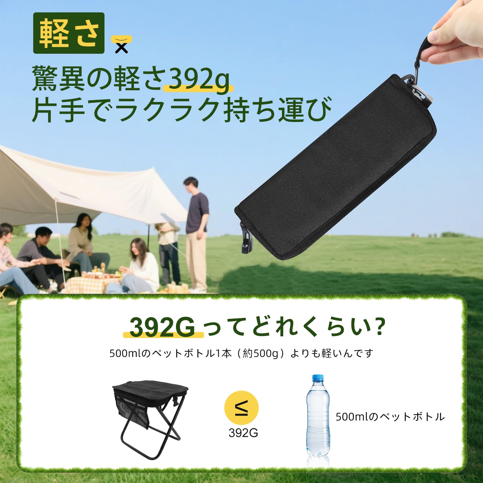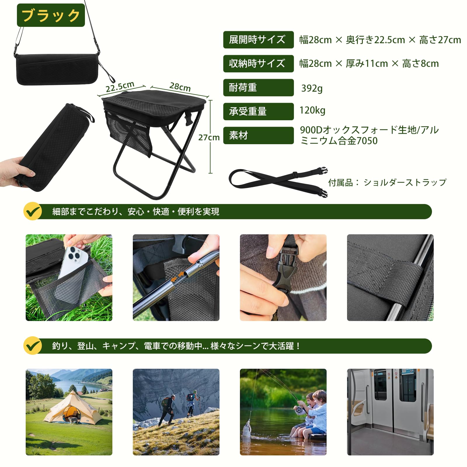 2025年新登場 折り畳み椅子 アルミ合金 900Dオックス 折りたたみいす コンパクト 392g軽量 小型 収納袋一体 超圧縮収納 斜めがけ ショルダーストラップ付き キャンプ アウトドア チェア ブラック