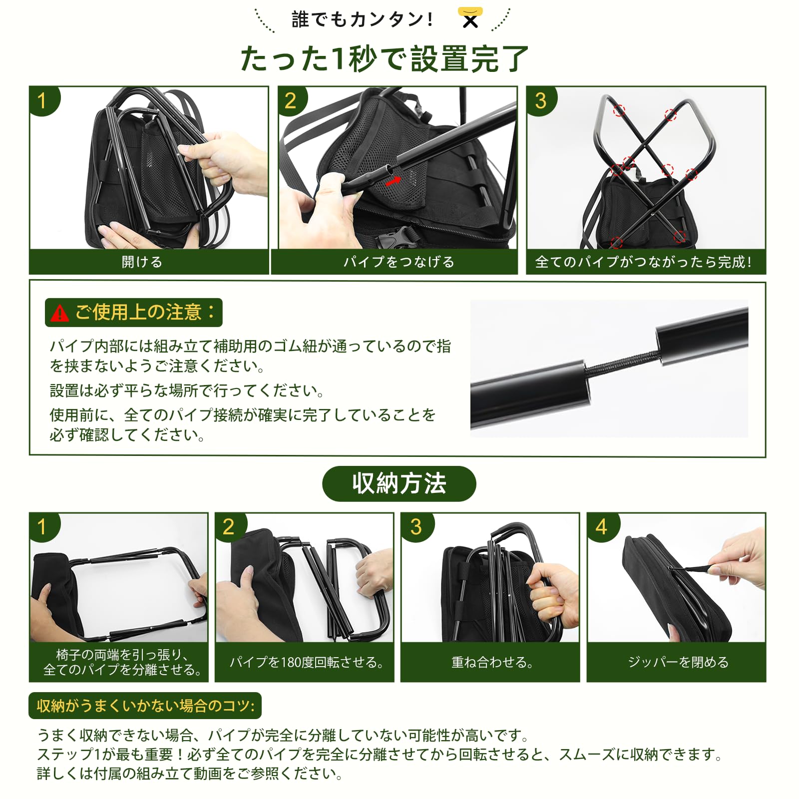 2025Newモデル】折りたたみ椅子 アウトドアチェア コンパクト 超軽量 アルミ合金 ショルダー付き 持ち運び便利 収納袋一体型 携帯チェア キャンプ 椅子 日本語説明書付き ハイキング 釣り(ブラック) (ブラック)