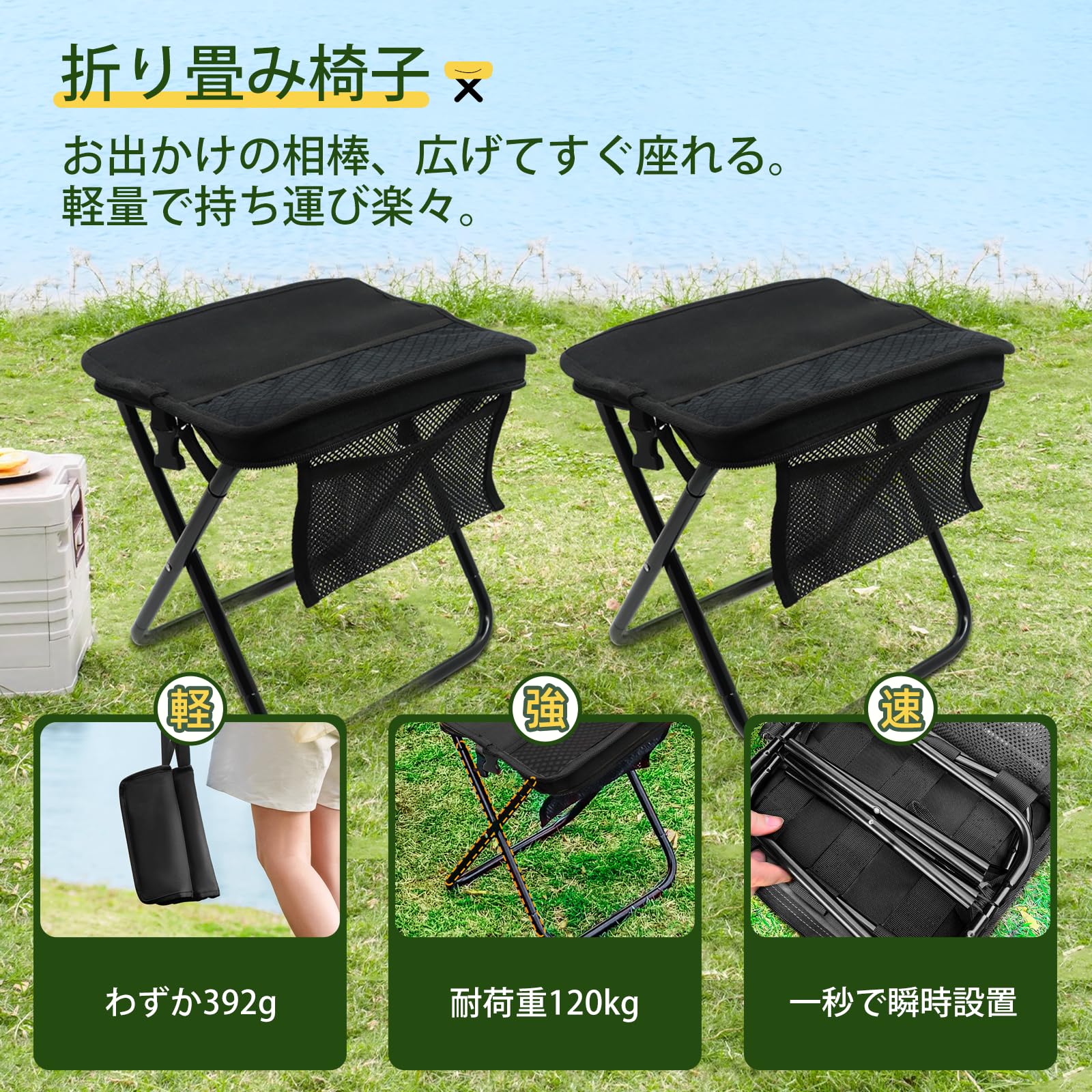 やぬき 折りたたみ椅子 【2個セット】 おりたたみいす 軽量 コンパクト持ち運び 3秒瞬間収納 耐荷重100kg アウトドア椅子 折りたたみいす 釣り 写真撮影 花火大会 バーベキュー ハイキング アウトドアチェア 登山 収納バッグ付き(グリーン)