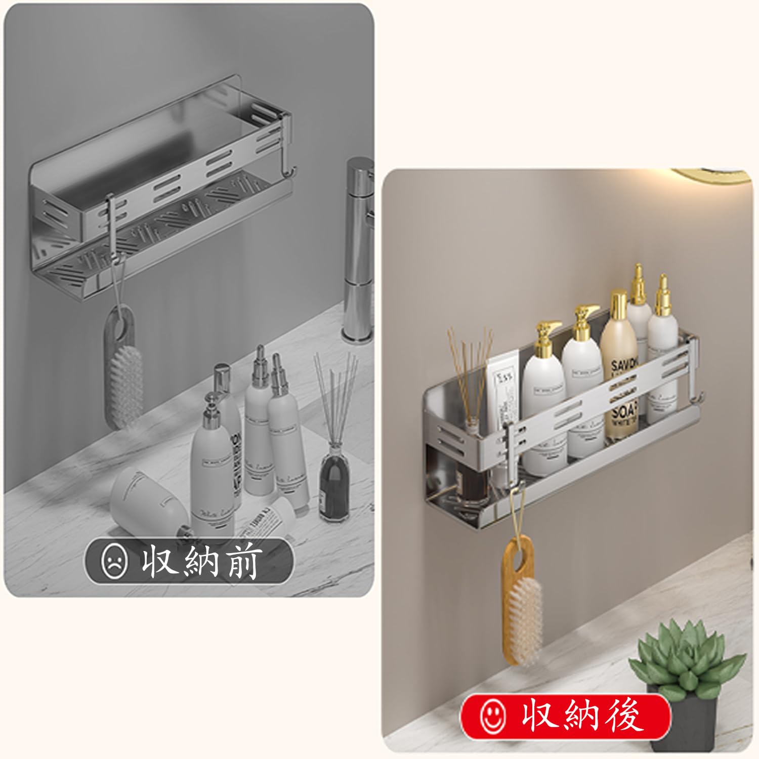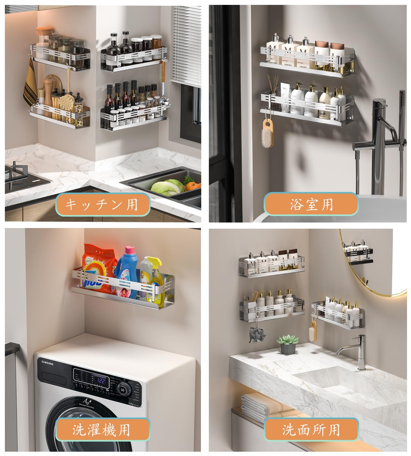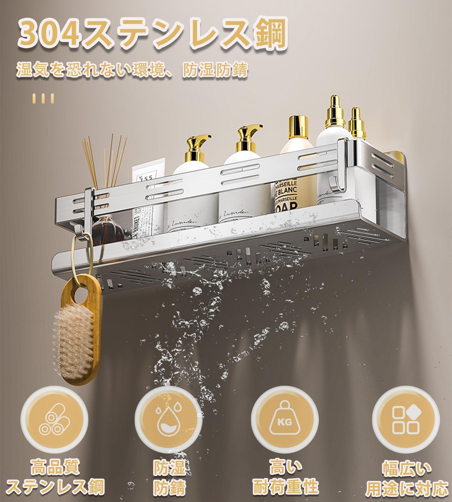 バスルーム ラック 浴室用ラック マグネット お風呂の壁に ステンレス シャワーラック 水切り 風呂場洗面所収納 フック付き