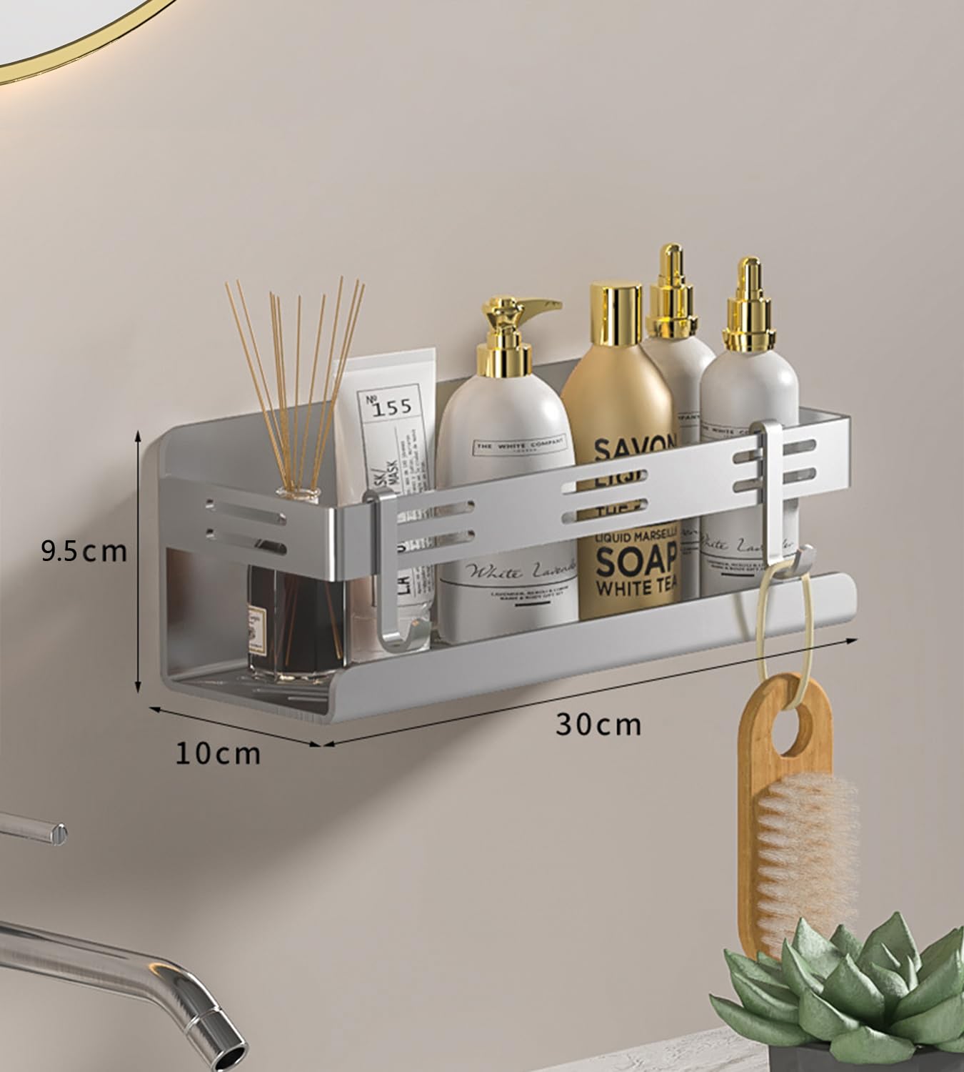 Agaou 浴室用ラック マグネット シャワーラック お風呂ラック 304ステンレス 防水と防錆 約W30 x D10x H8cm 強力磁石壁掛け 収納棚ラック バスルーム キッチン 風呂場 洗面所 冷蔵庫ラック 水切り 壁棚 フック2個付き