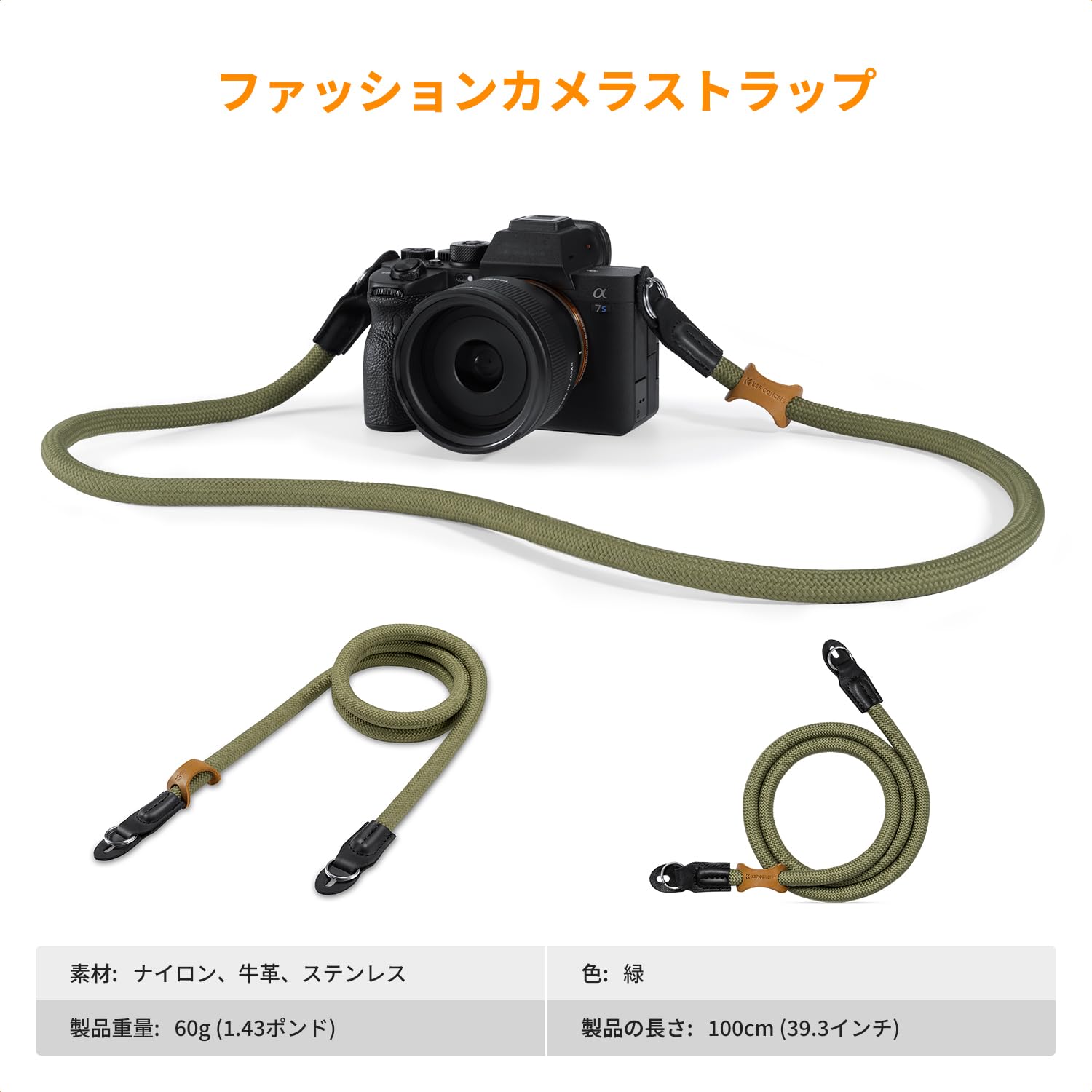 [K&F Concept] カメラネックストラップ カメラストラップ レザーアクセサリー 軽量 速写ストラップ クライミングロープ製ショルダーストラップ おしゃれ一眼レフ/ミラーレス/デジカメ/デジタルカメラ用(緑)