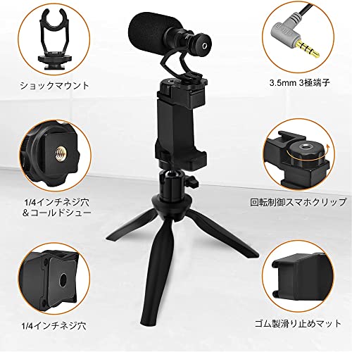 ComicaCVM-VM10-K2スマートフォンマイクビデオキットミニ三脚付ガンマイクカメラマイクiPhoneSAMSUNG用など