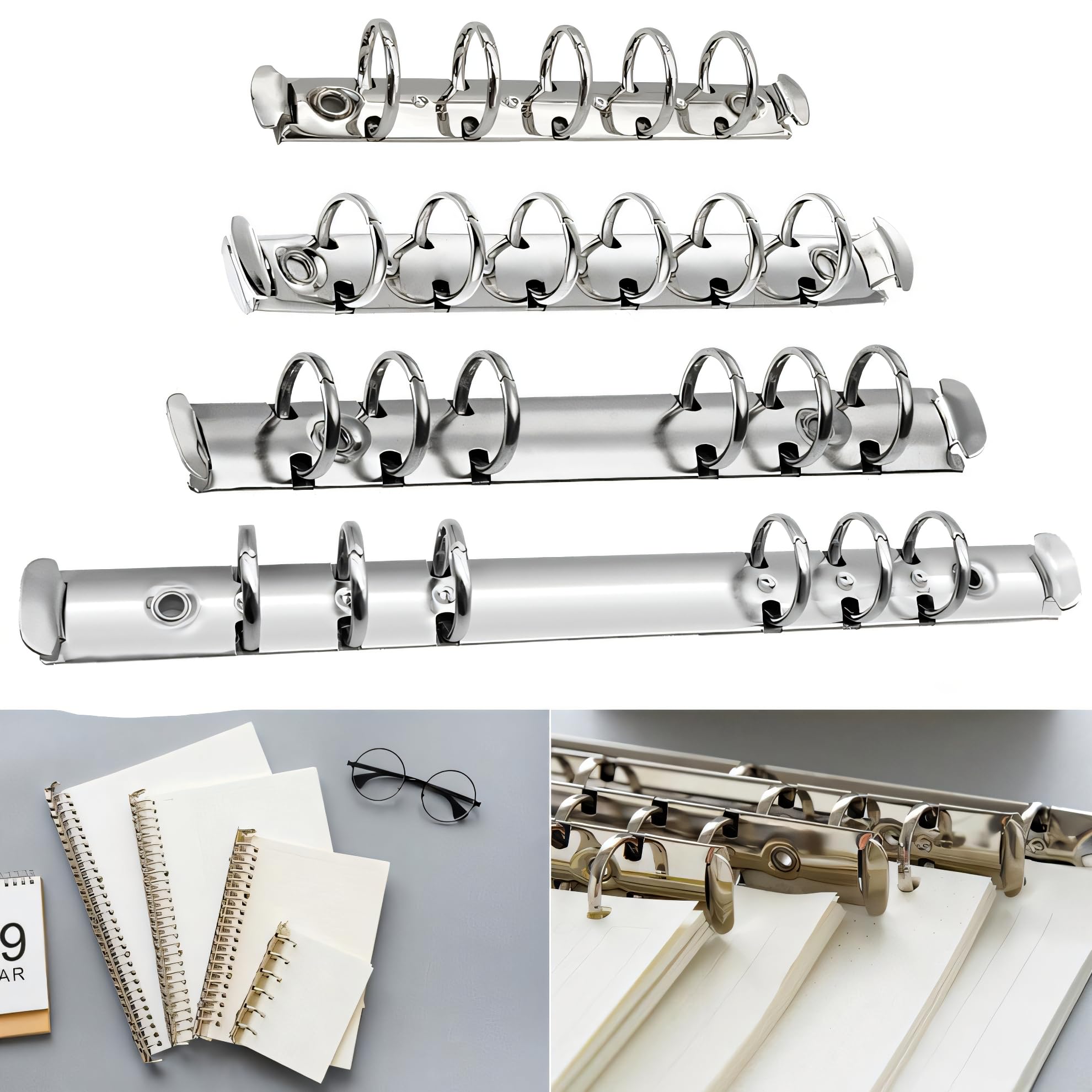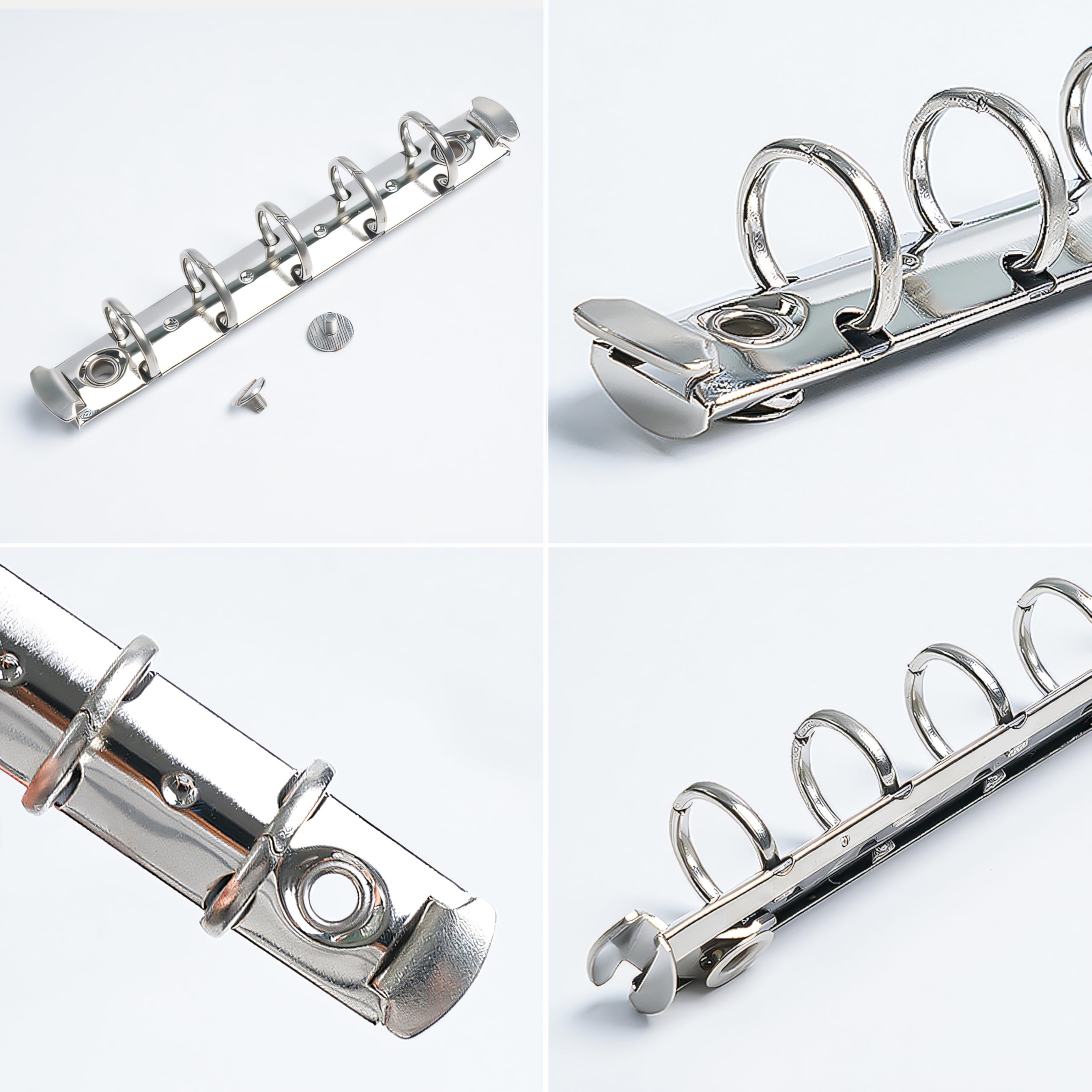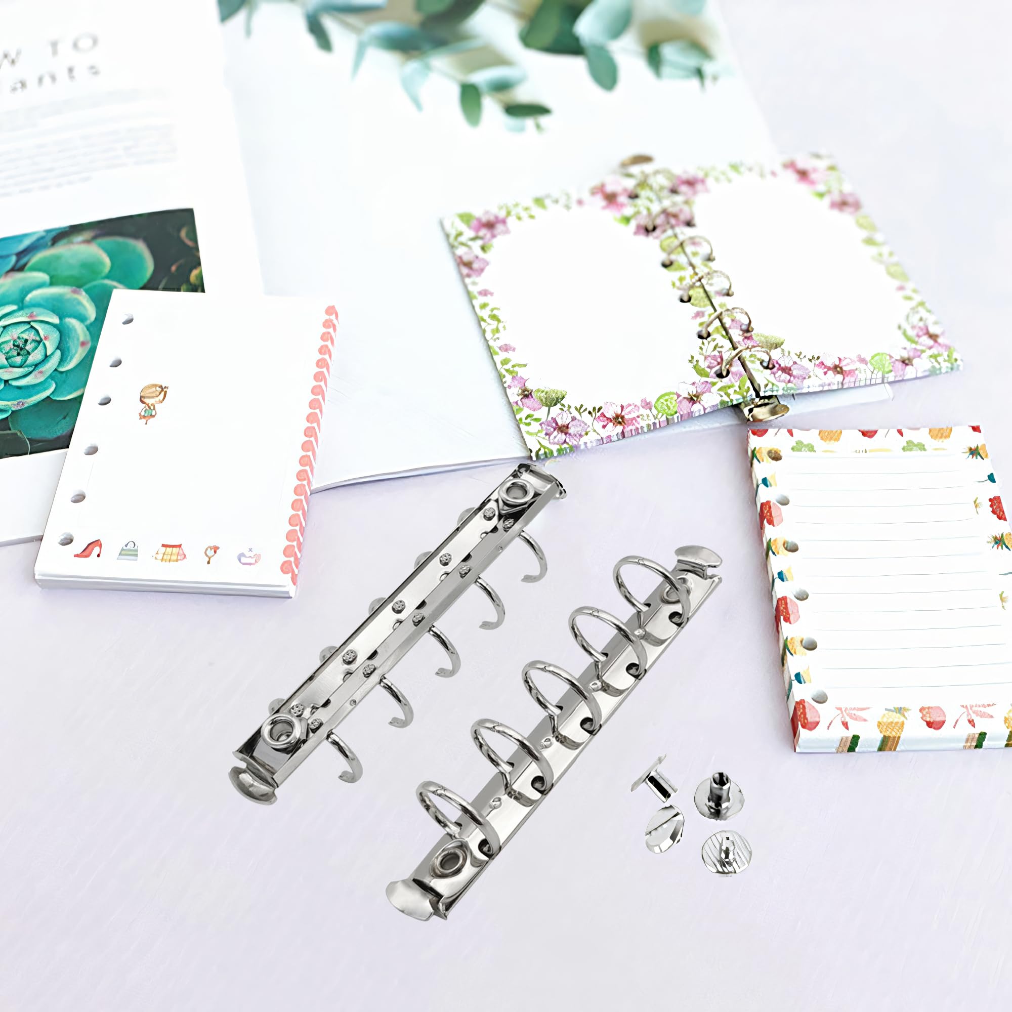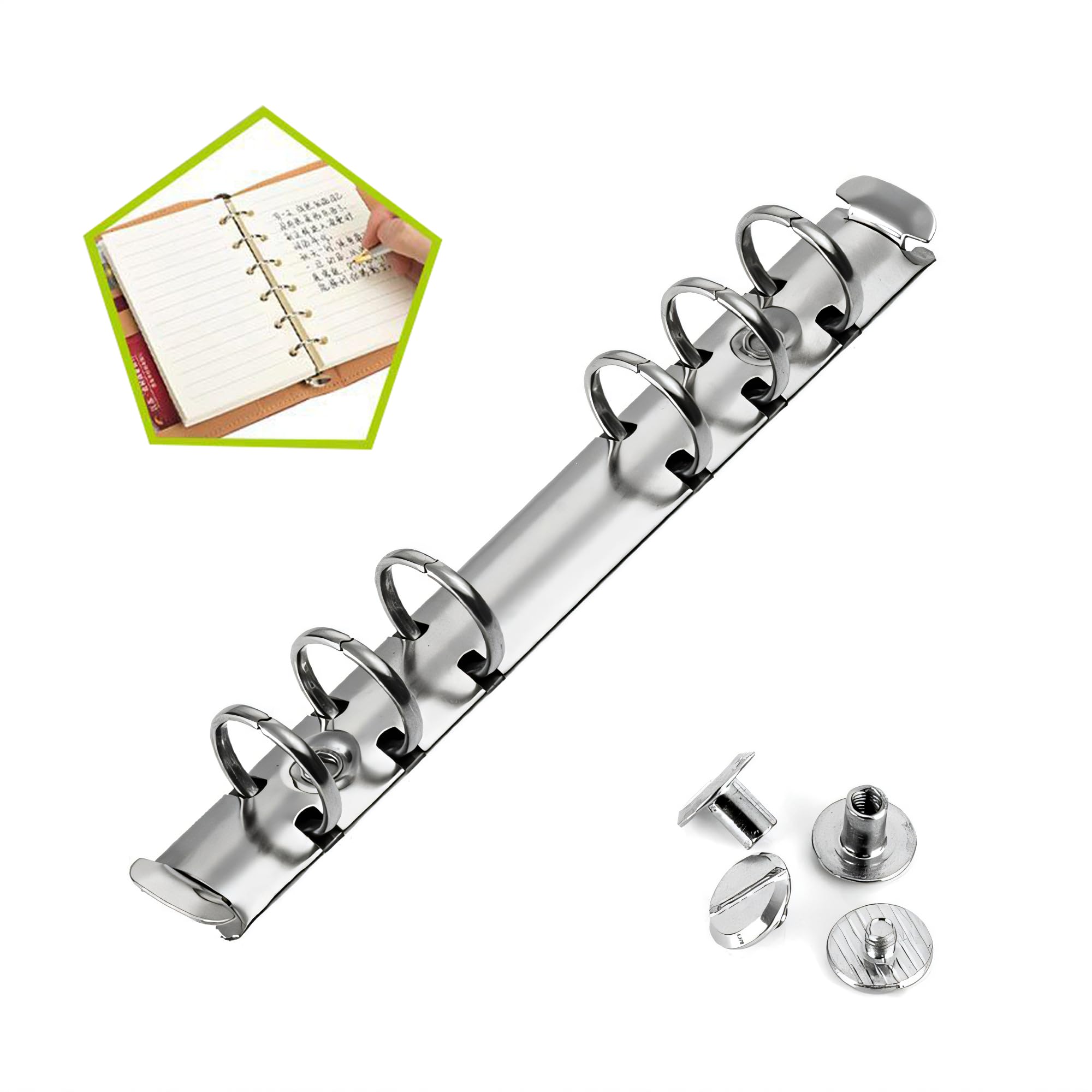 A7 多穴式リング バインダー金具 背なしタイプ 6穴【A7-6-15/15】15mm×140mm リング内径15mm 鉄ニッケル鍍金 シルバーシカゴスクリュ付き 手帳 製本 (A7-6穴)