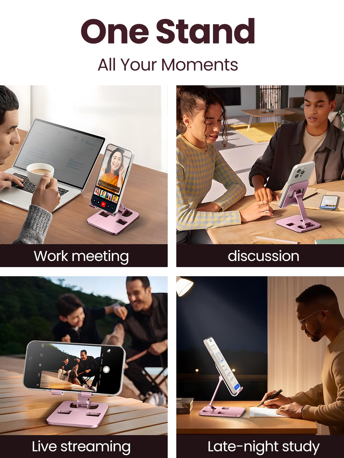 Lomicall アルミ 折り畳み スマホスタンド : コンパクト 卓上 折りたたみ 携帯 立て 角度調整 スマートフォン 置き 台 机 デスク アイフォン すまほ スマフォ アイホン アンドロイド 縦 横 持ち運び iPhone 15 plus pro promax 14 13 mini 12 11 プロ マックス se Huawei Xperia android に対応 黒 ブラック