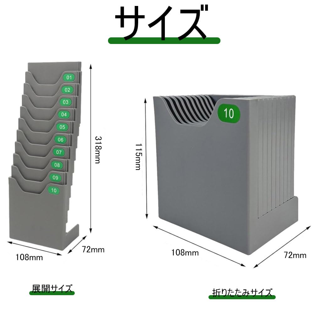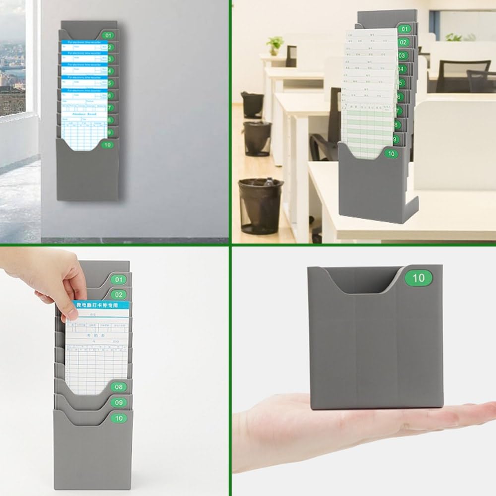 タイムカードラック 10枚差し シングル列 吊り下げ式・卓上両用 多機能カードホルダー 勤怠管理 人事労務 オフィス整理整頓 出退勤用