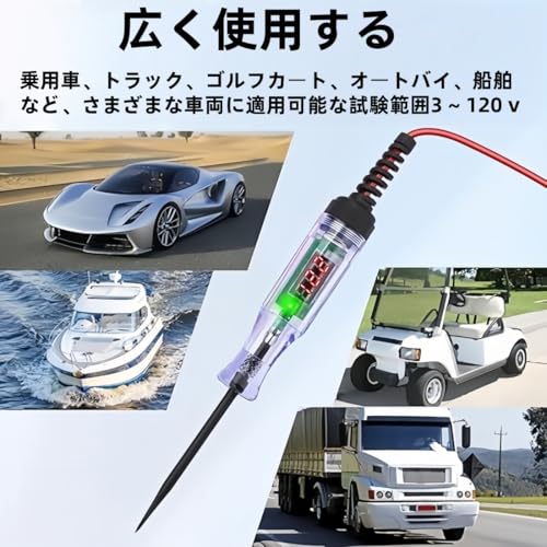 サーキットテスター DC3-120V 車用 回路 電圧テスター 車デジタル検電テスタ ー 通電確認 ペン型コード付 テ直流電圧を完全にカバーする検出範囲 オートテ路線検出 極性判定 性能テスト 車用診断ツー