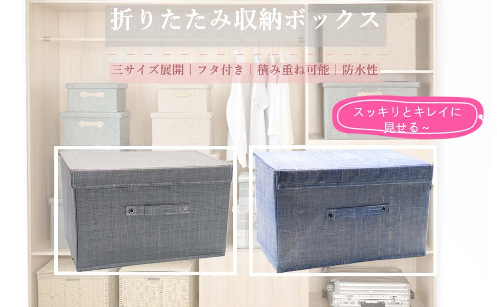 折りたたみできる使い勝手の良い収納ボックス 折り畳み式なので、使わない時もかさばらないのが魅力です。 防水もできるので、中身を清潔に保つことができます。 また、中が見えないからすっきり! 洋服をたくさん入れてもクローゼット内をすっきり見せることができます。 取っ手も付いていて使いやすいし、使わないときは折りたたんでしまっておけます。