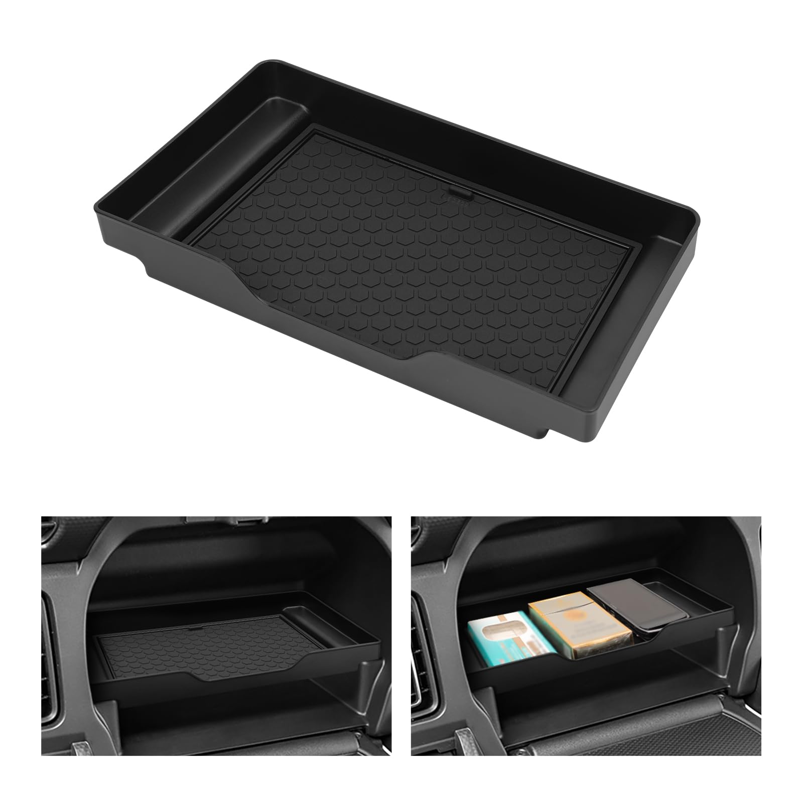 LUCKEASY スズキ ハスラー MR52S MR92S 専用 インパネアッパーボックス 助手席グローブボックス 収納トレイ HUSTLER HYBRID Xターボ HYBRID X 2020年11月~現行 仕切り 保護マット トレイマット 収納ボックス 滑り止めマット 便利 ハスラー アクセサリー 騒音低減 衝撃吸収 傷防止 キズ隠し 置くだけ 簡単取付 ブラック [リッド付きタイプ専用]