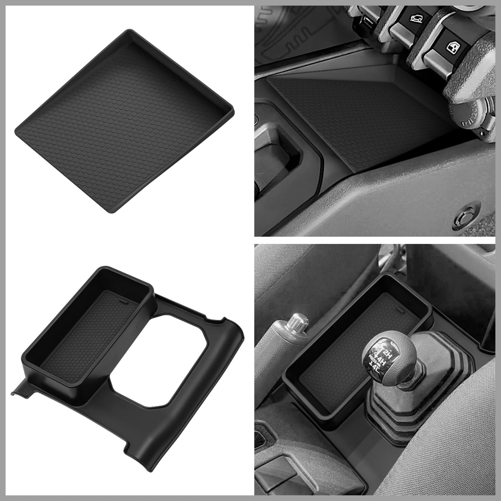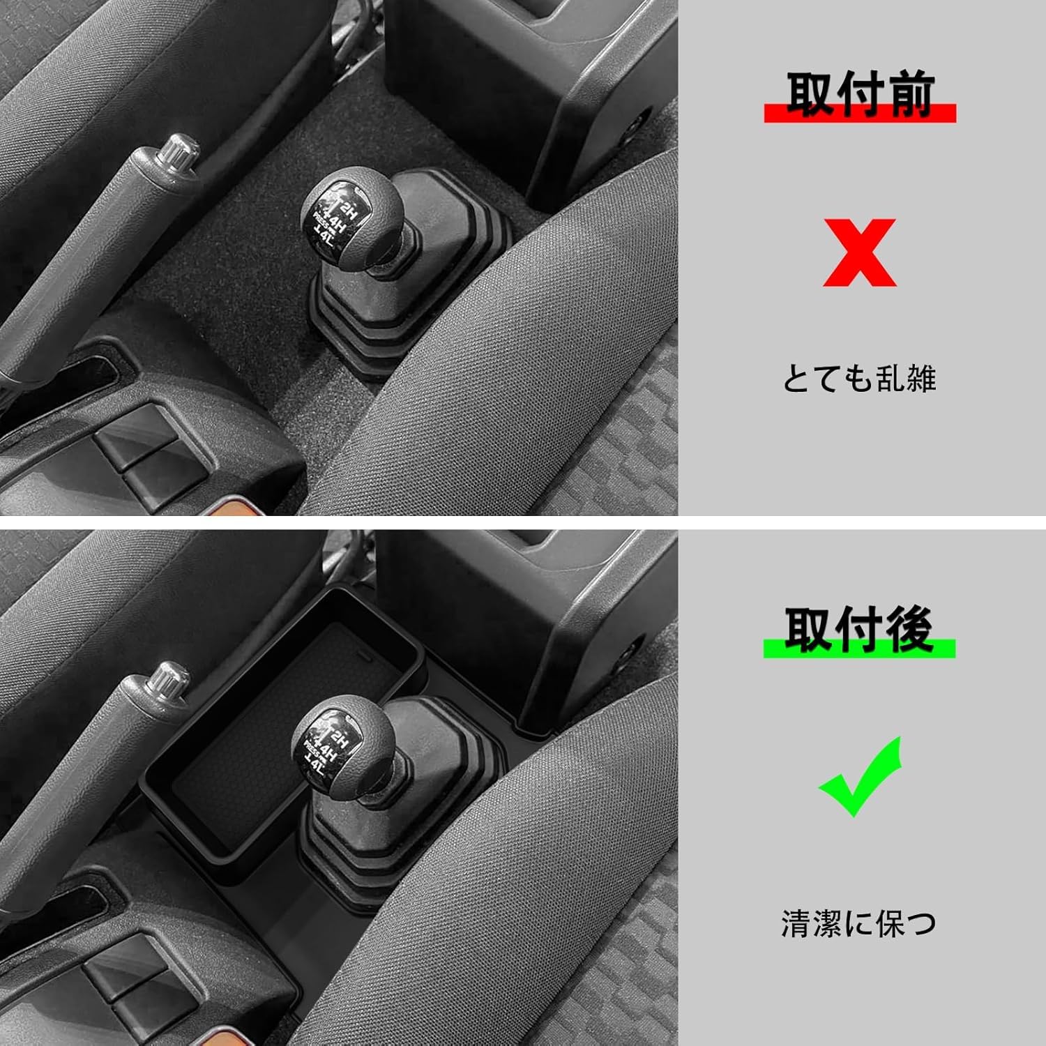 LUCKEASY スズキ ジムニー ノマド 5ドア JC74W FC AT車 専用 センターコンソールトレー 収納トレイ Jimny Nomade R7.4~現行 中央内側コンソール 保護マット 保護カバー 滑り止めマット 便利 騒音低減 衝撃吸収 傷防止 キズ隠し 置くだけ 簡単取付 アクセサリー 内装パーツ ブラック [4AT車専用] 1枚セット