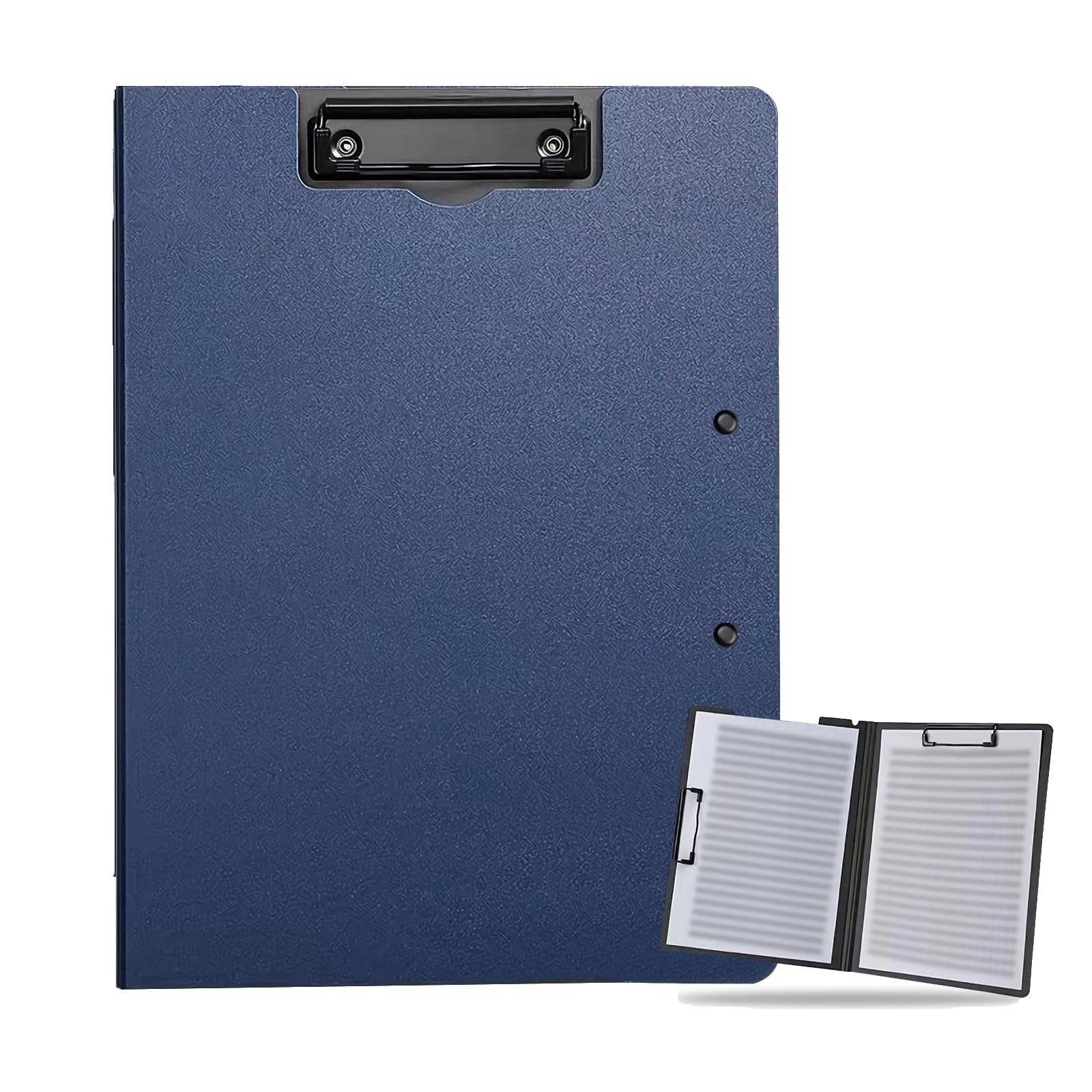 SFLHHDM クリップホルダー A4 バインダー 折りたたみ クリップボード 薄くて持ち運びやすい ファイル管理 便利 クリップファイル 発泡 2つ折り 両面 ダブルクリップ おしゃれ 多機能 筆記面ボード 薄型 会議パッド 防水 縦 横 A4/A3適用 文房具 書類保護 会議パッド オフィス、学校、家庭 、仕事用 (ダブルクリップ A4/A3適用, 紺色-1枚)