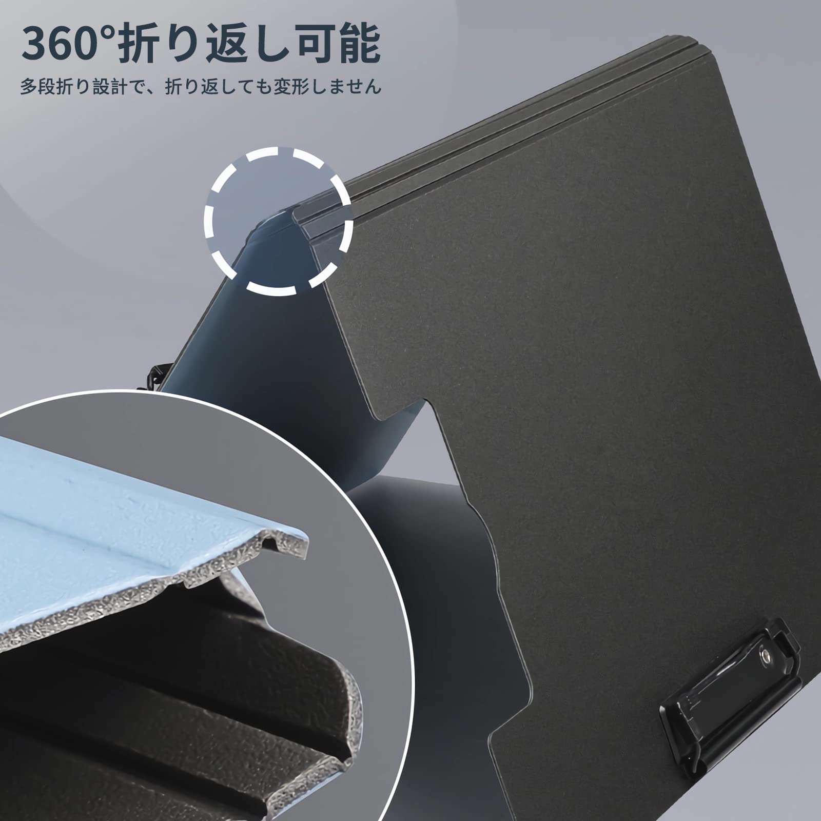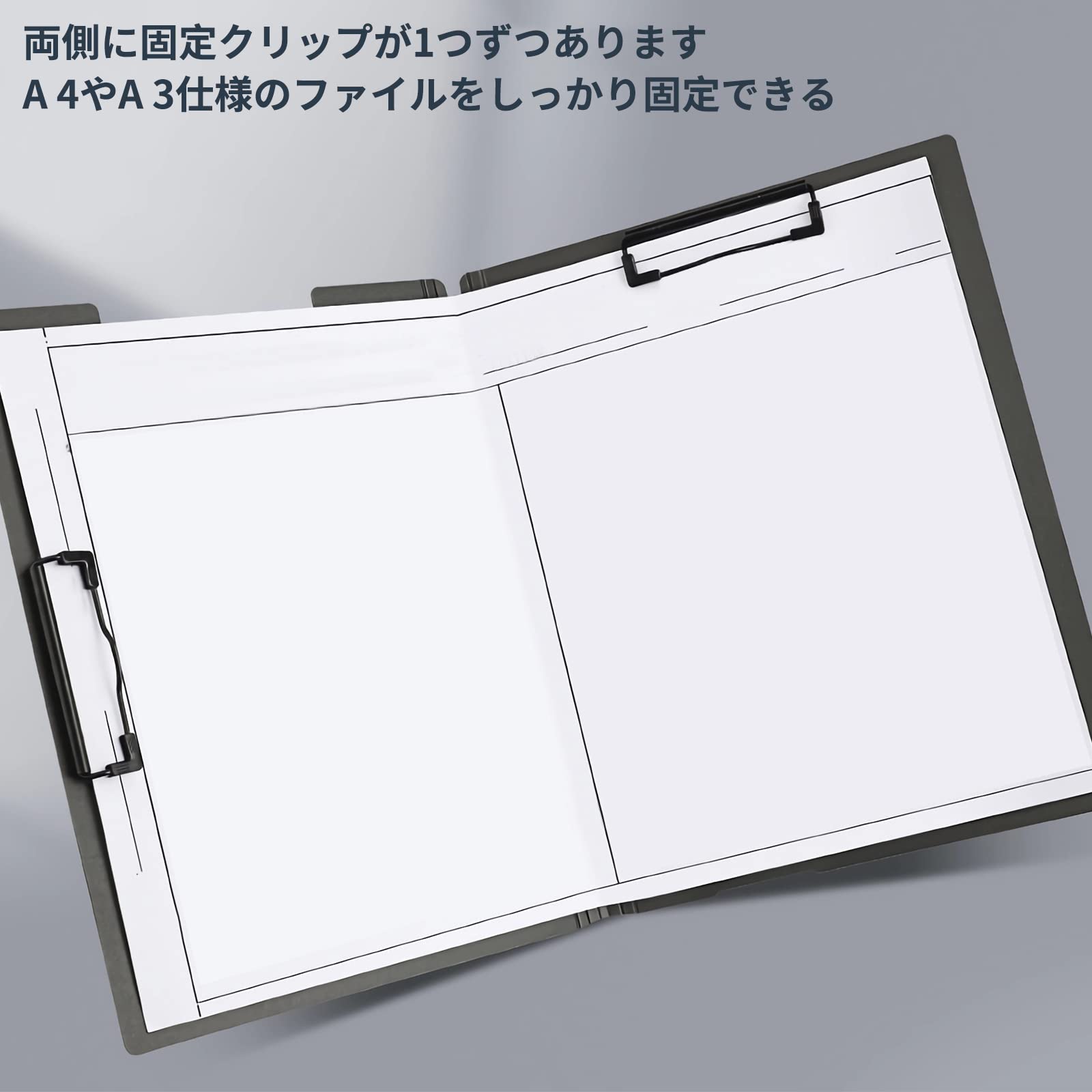 SFLHHDM クリップホルダー A4 バインダー 折りたたみ クリップボード 薄くて持ち運びやすい ファイル管理 便利 クリップファイル 発泡 2つ折り 両面 ダブルクリップ おしゃれ 多機能 筆記面ボード 薄型 会議パッド 防水 縦 横 A4/A3適用 文房具 書類保護 会議パッド オフィス、学校、家庭 、仕事用 (ダブルクリップ A4/A3適用, ブラック-1枚)