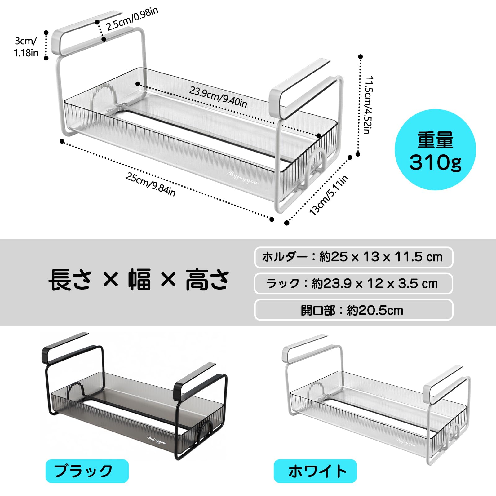 TeamSky キッチンペーパーホルダー 洗面台ティッシュケース 吊り下げ ラック 戸棚下ペーパーボックスホルダー 約W25XD12XH11cm 長方形 壁掛 片手で切れる キッチン 浴室 お風呂 洗面台 収納 穴あけ不要 ネジ止め不要 (ホワイト)