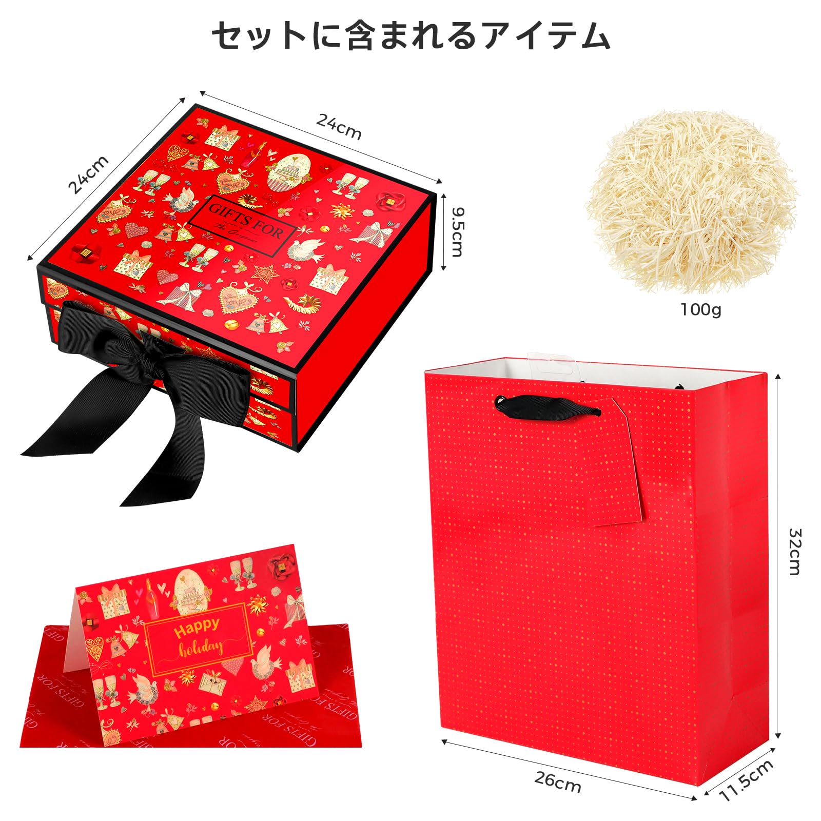 JiaWei ギフトボックス 蓋付き 磁気,ギフトバッグリボン パッケージボックスセット,付き手提げ用,細断紙グリーティング 24 x 24 x 9.5cm, 高級プレゼントぼっくす 箱, 蝶結び 贈り物, プレゼントボックス, 結婚式, 花嫁介添人, パーティー (お祝いの赤)