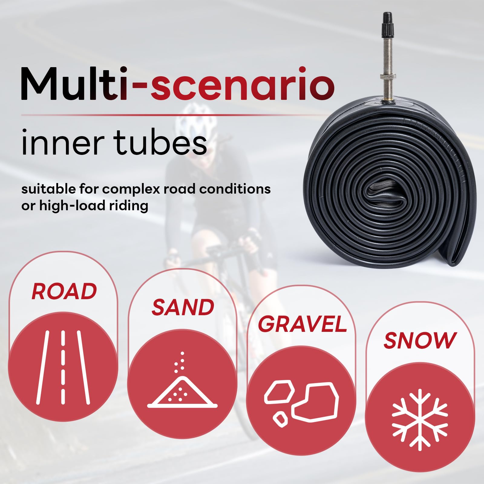2本28インチ700x35-43Cロードバイクチューブ 米式バルブ48mm,自転車チューブ対応700cチューブ700x35C 700x36C 700x37C 700x38C 700x39C 700x40C 700x41C 700x42C 700x43C