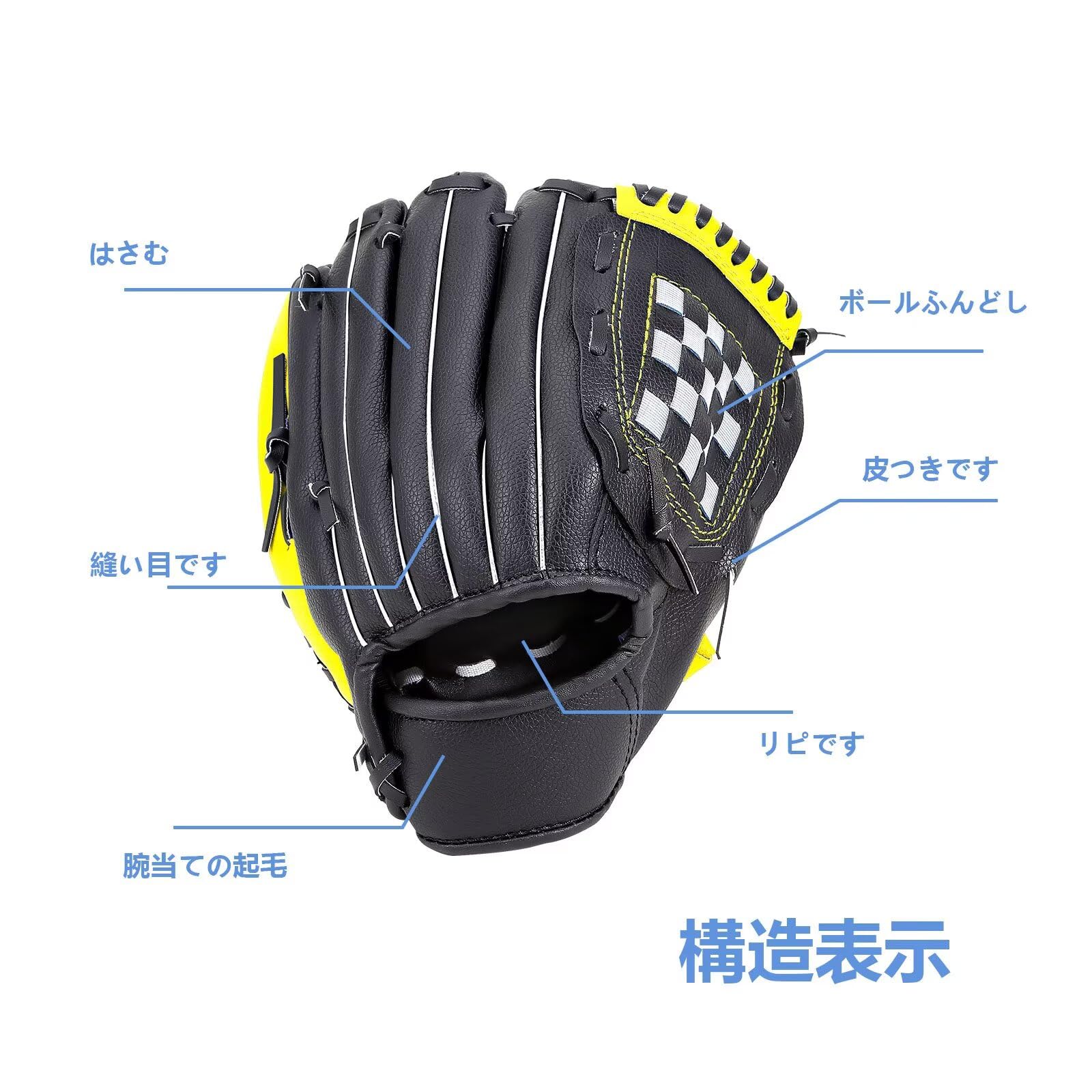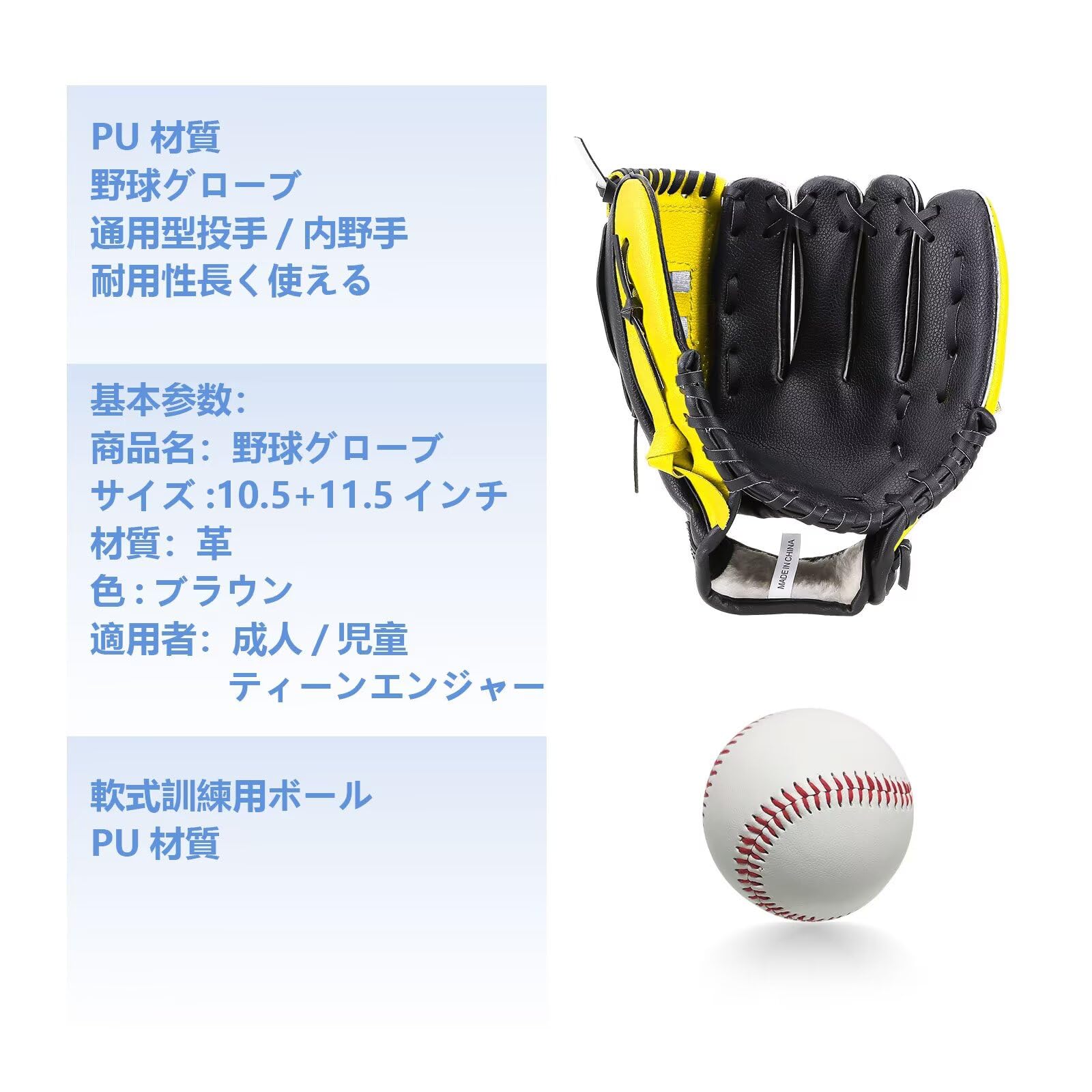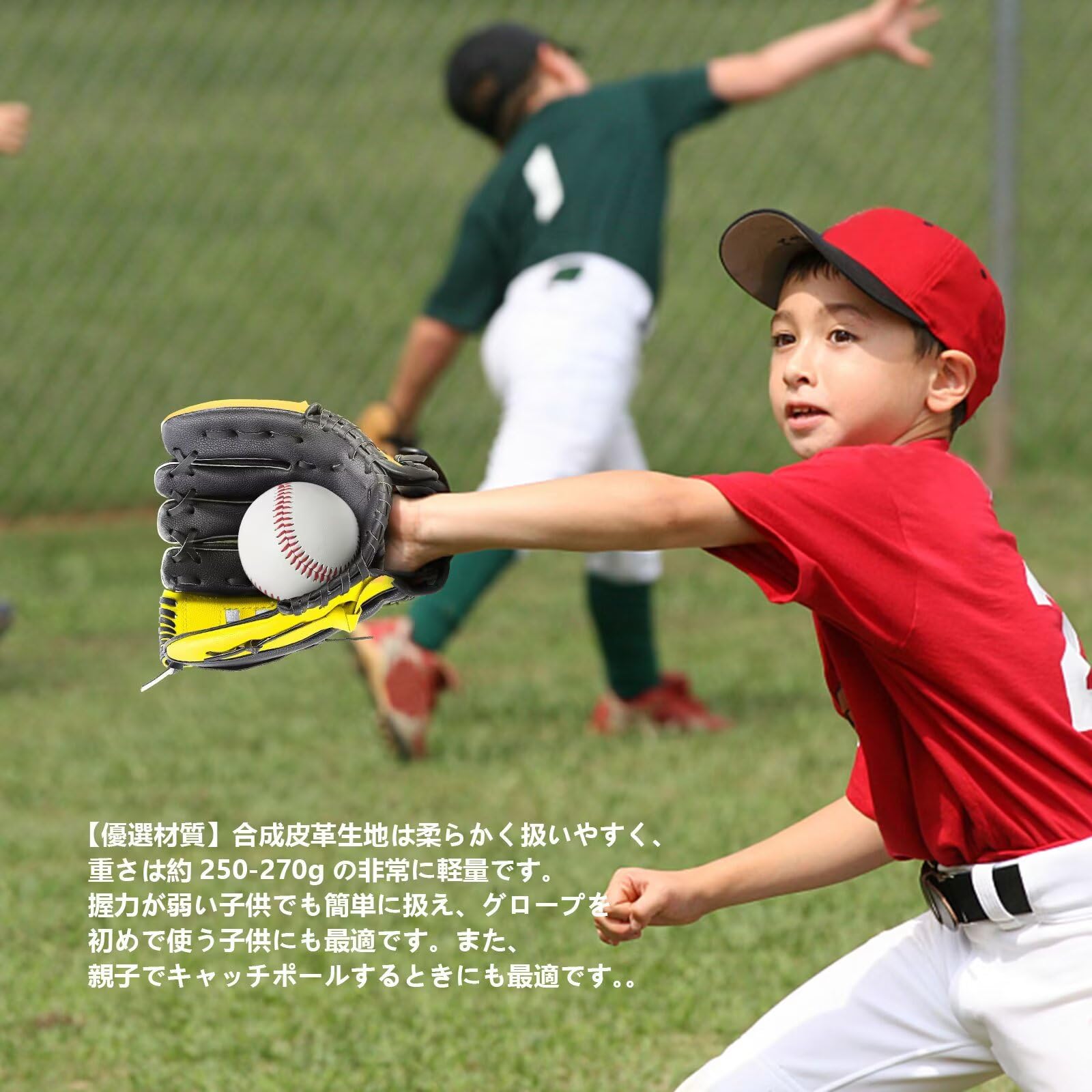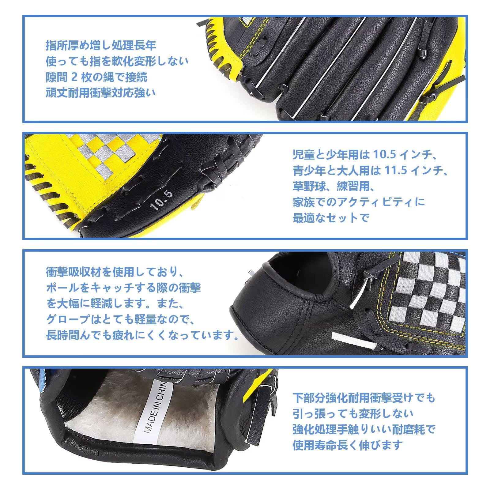 YOASONEK 野球グローブ 軟式 野球 親子グローブ 衝撃吸収パッド内蔵 野球 ベースボール 練習ボール付き ソフトボール 兼用 右投げ用 左手着用 練習用 柔らかな人工皮革製 初心者向け (子供用・10.5インチ, イエロー)