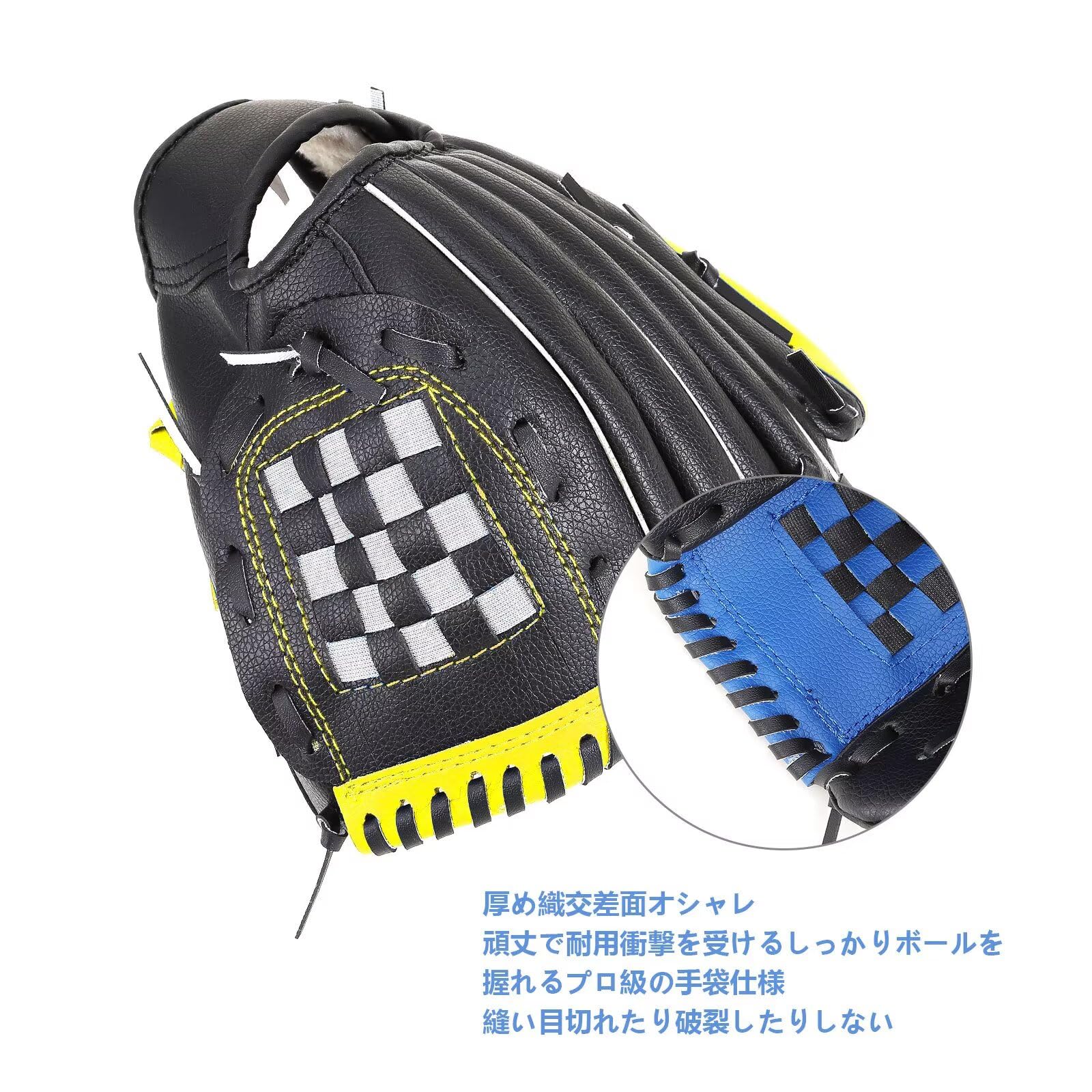 YOASONEK 野球グローブ 親子用 軟式 野球用 クラブ グローブ キャッチボール 練習用 すぐに遊べるボール付き 初心者向け 大人用 子ども用 低学年用 右投げ用(左手着用) (大人用12.5インチ, ブラック)