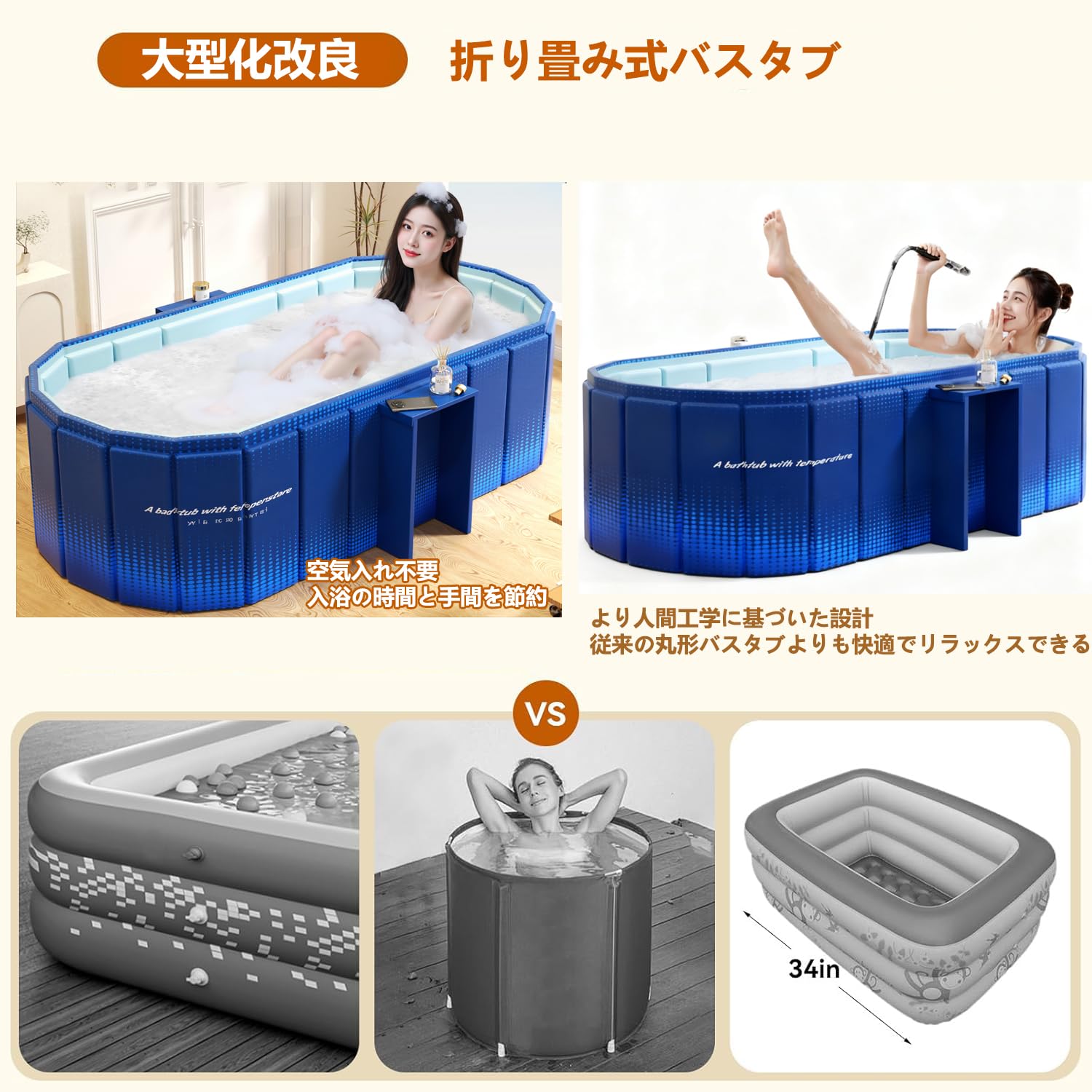 折りたたみ浴槽 ポータブルバスタブ ポータブル浴槽 折り畳み浴槽 折り畳み風呂 簡易バスタブ 露天風呂 キッズ 子供 大人用 キャンプ 家庭用 組立不要 保温 コンパクト 収納便利 持運び便利 耐久性 簡易風呂 浴槽 (ブルー, 1.5m)