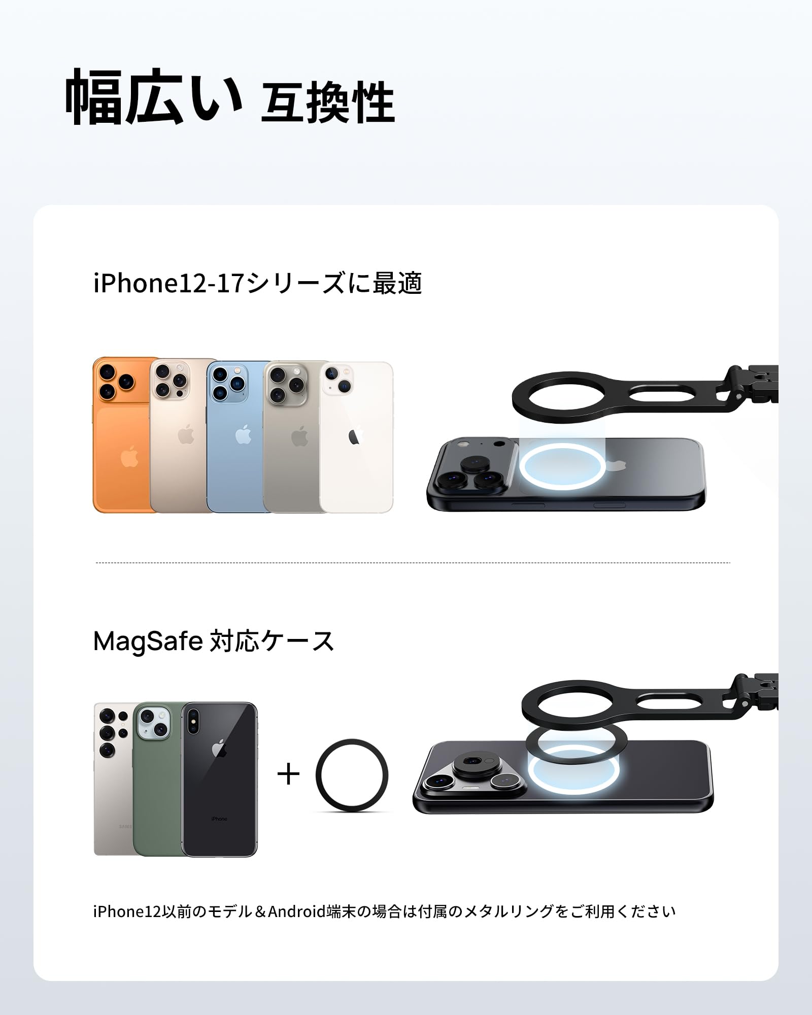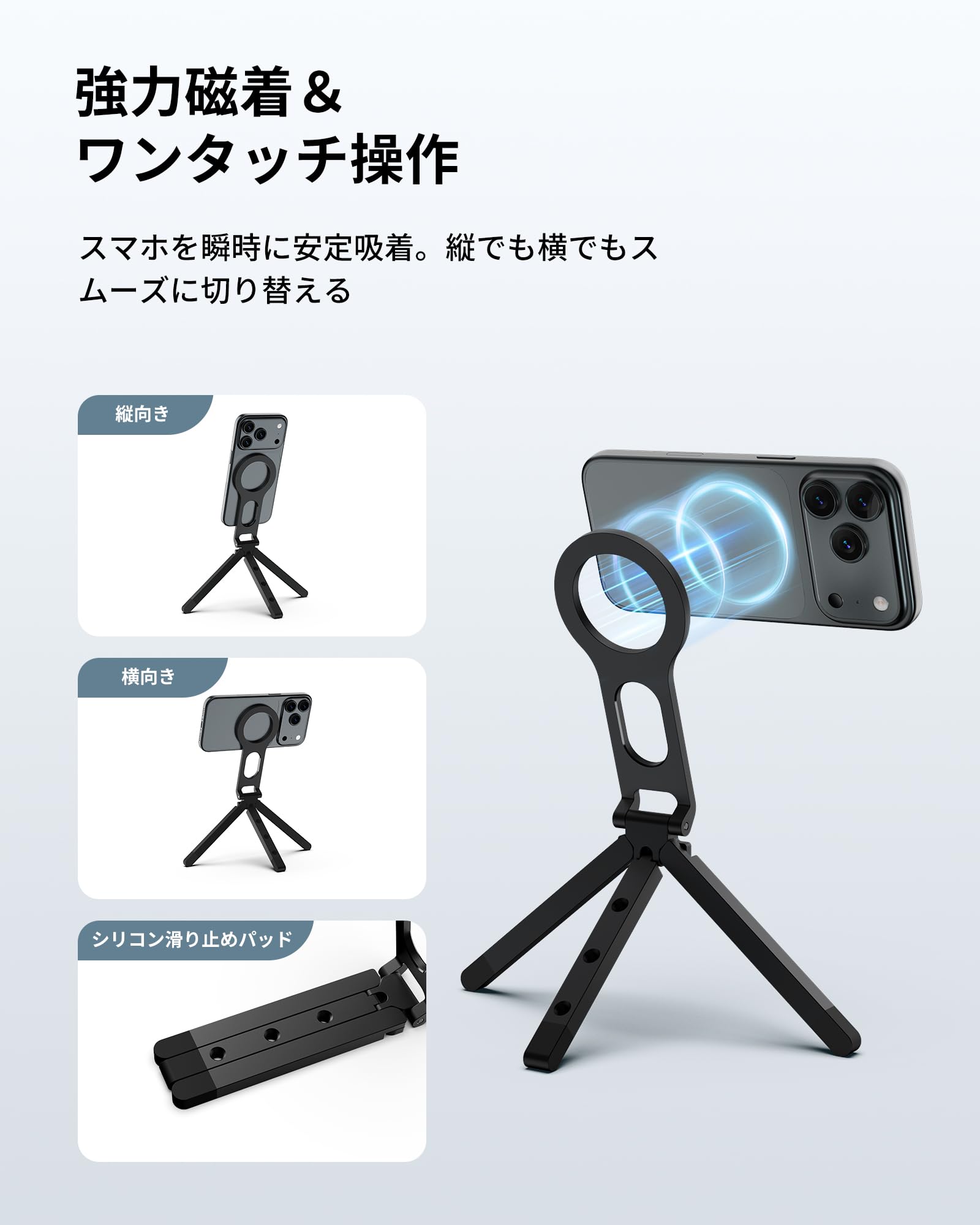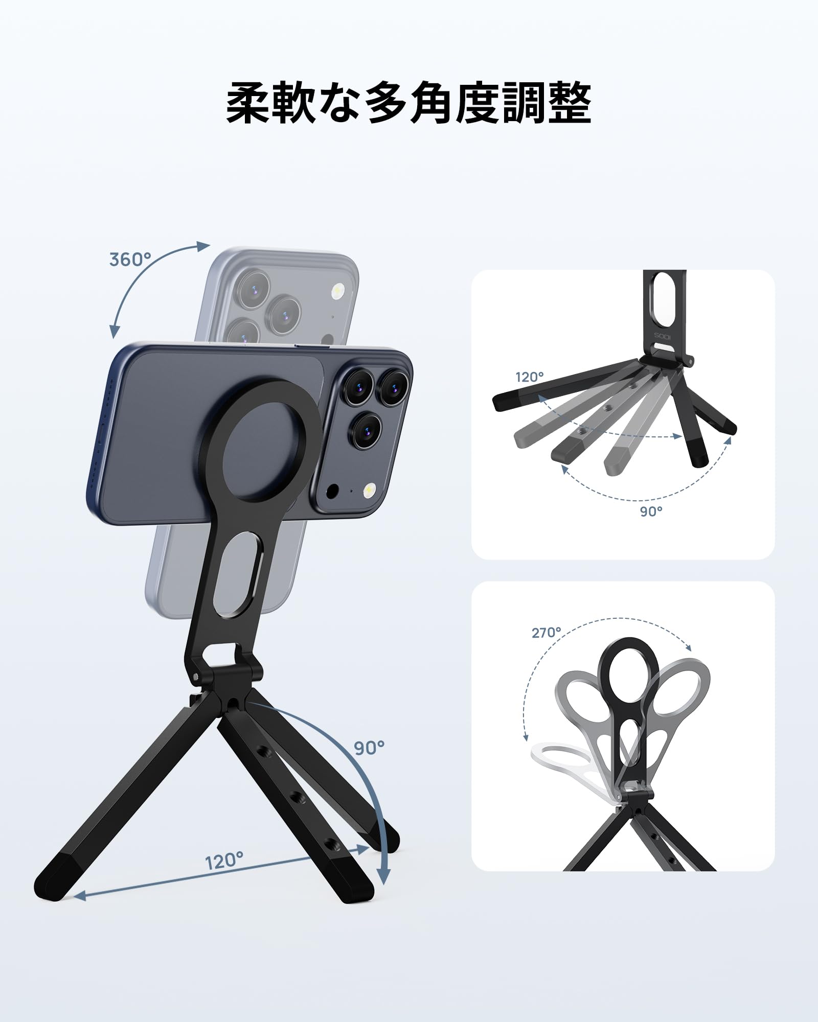 スマホホルダー三脚 MagSafe対応 コールドシューアダプター付き 1/4インチスレッド 16 / 15 / 14 / 13 / 12シリーズ対応