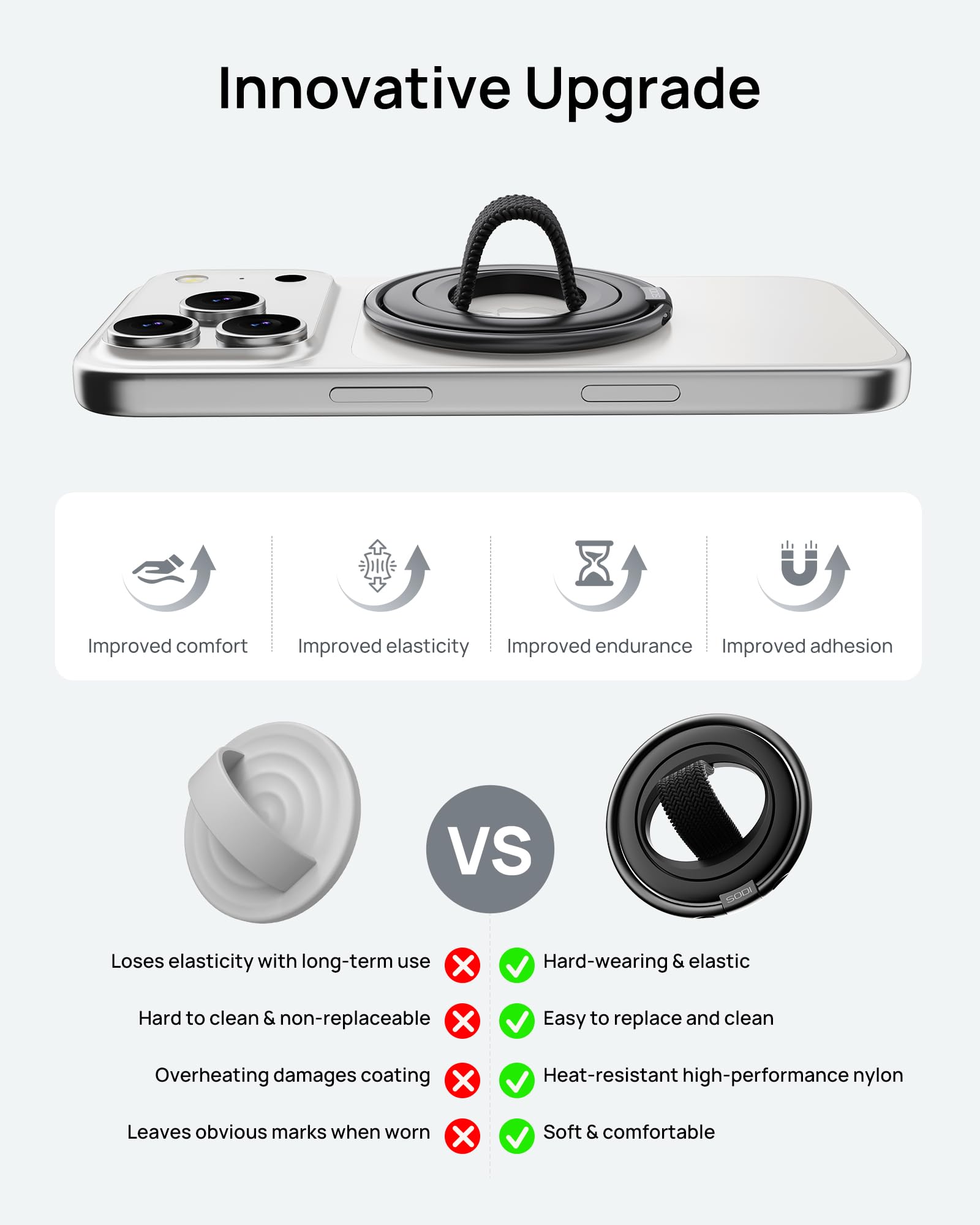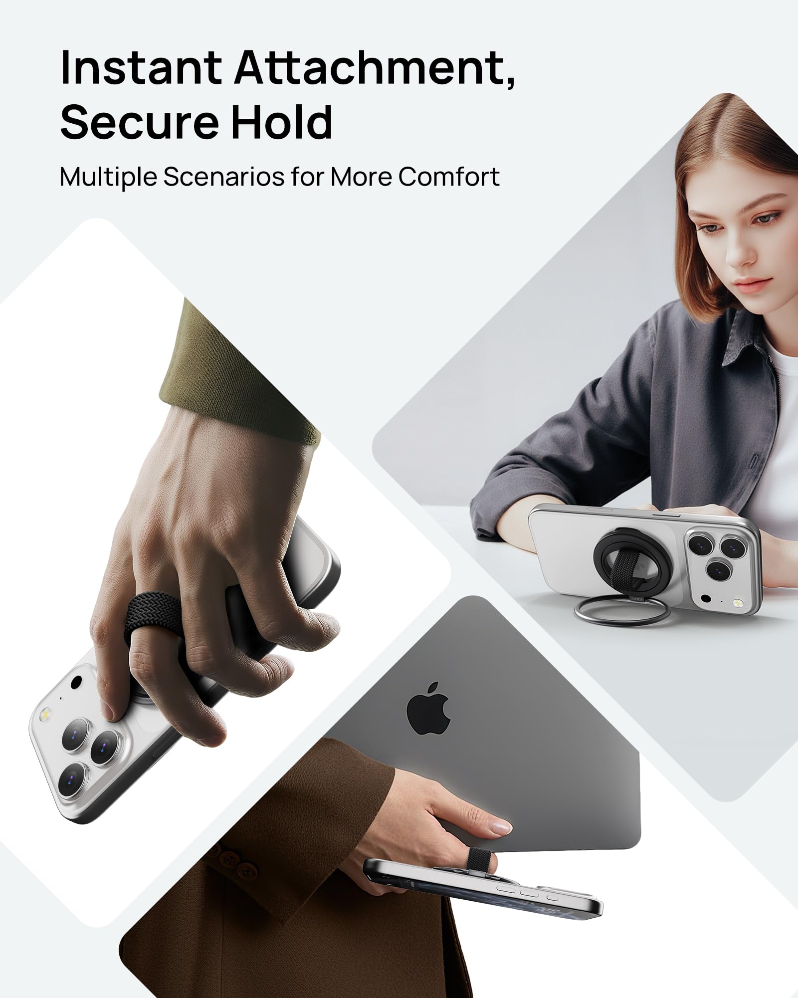 【マグネット・強力磁石】SODI スマホリング&スタンド MagSafe対応 360度回転・180度反転 マグセーフ MagSafe リング 薄型 軽量 マグネット式 磁石 簡単着脱 スマホ落下防止 指かけタイプ iPhone 16/15/14/13/12 Pro Max&Androidシリーズなどに対応 テーブル 金属リング付き ストラップ付き ホワイト
