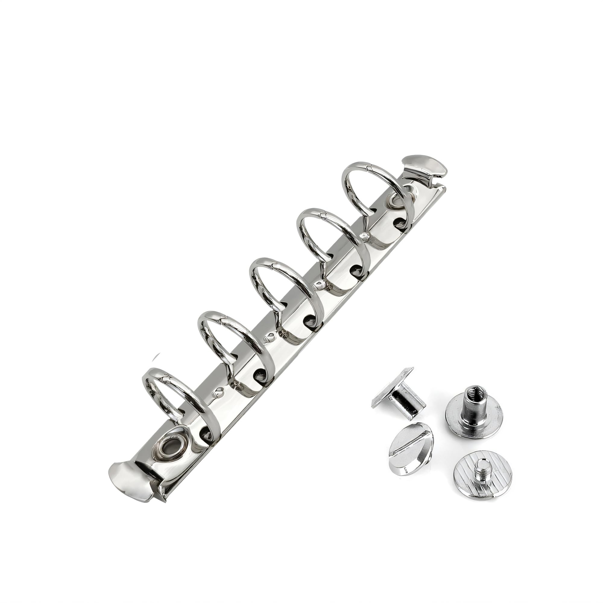 A7 多穴式リング バインダー金具 背なしタイプ 6穴【A7-6-15/15】15mm×140mm リング内径15mm 鉄ニッケル鍍金 シルバーシカゴスクリュ付き 手帳 製本 (A7-6穴)