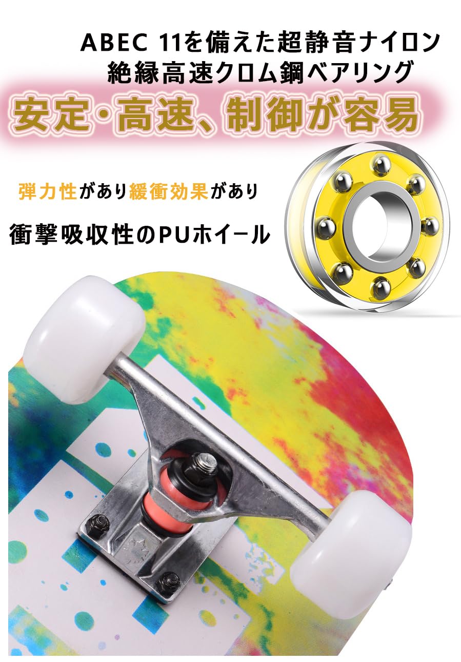 WHOME プロ スケートボード - 31x8インチ 子供/大人用 プロ/初心者用 標準スケボー Tツール付き ABEC-9 アルパイン メープル 8層デッキ