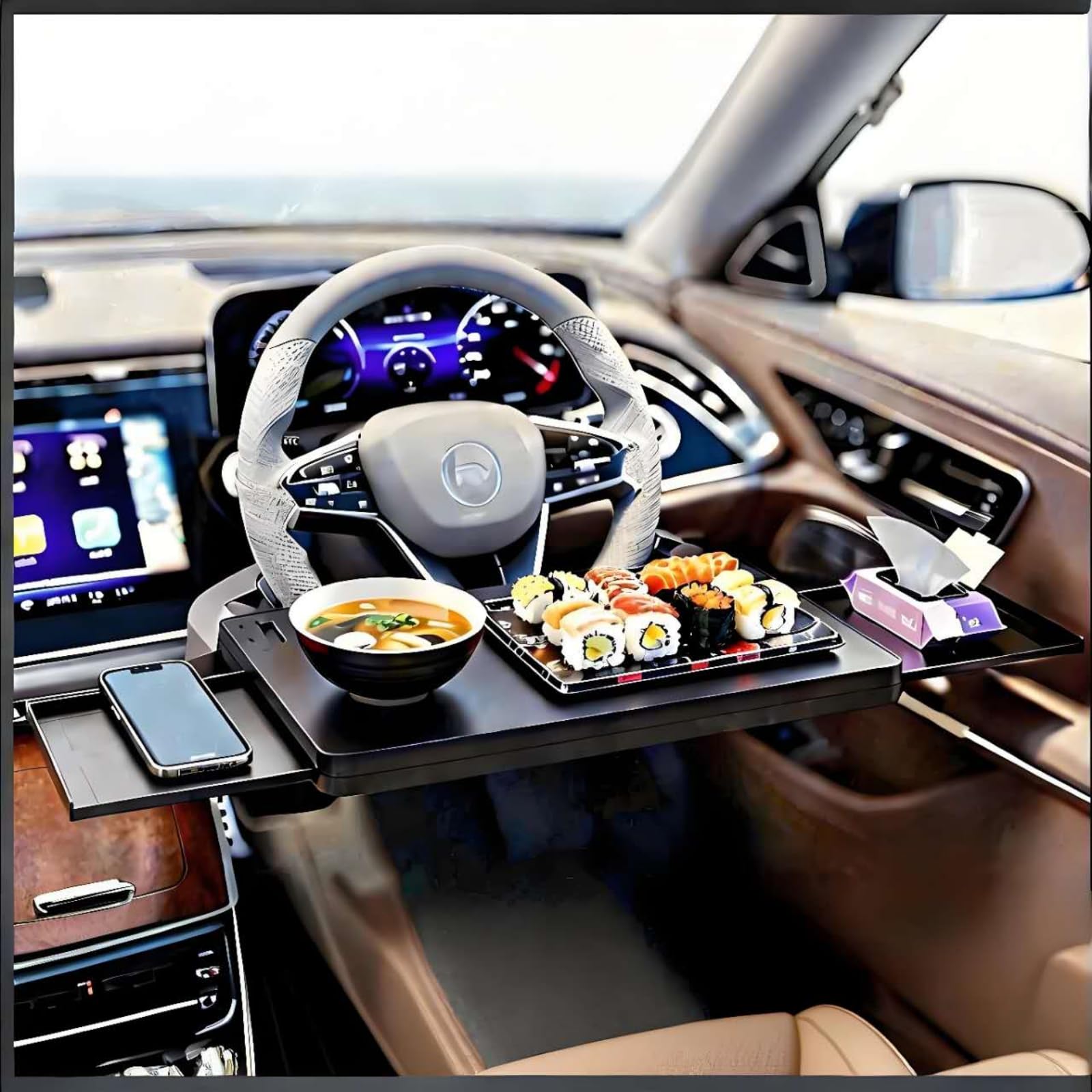 SAIJI 調整可能な 車 ハンドル テーブル 運転席 より安定した 車 テーブル 仕事 食事 掃除が簡単 耐久性 耐水性 ブラック
