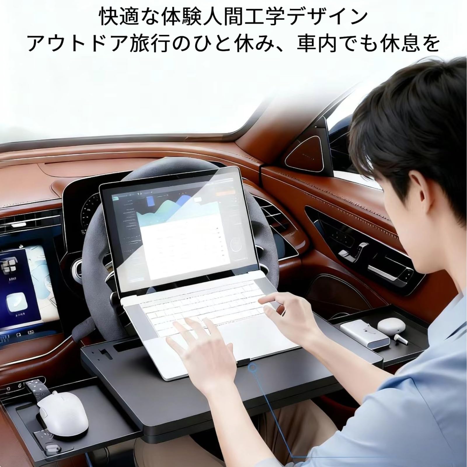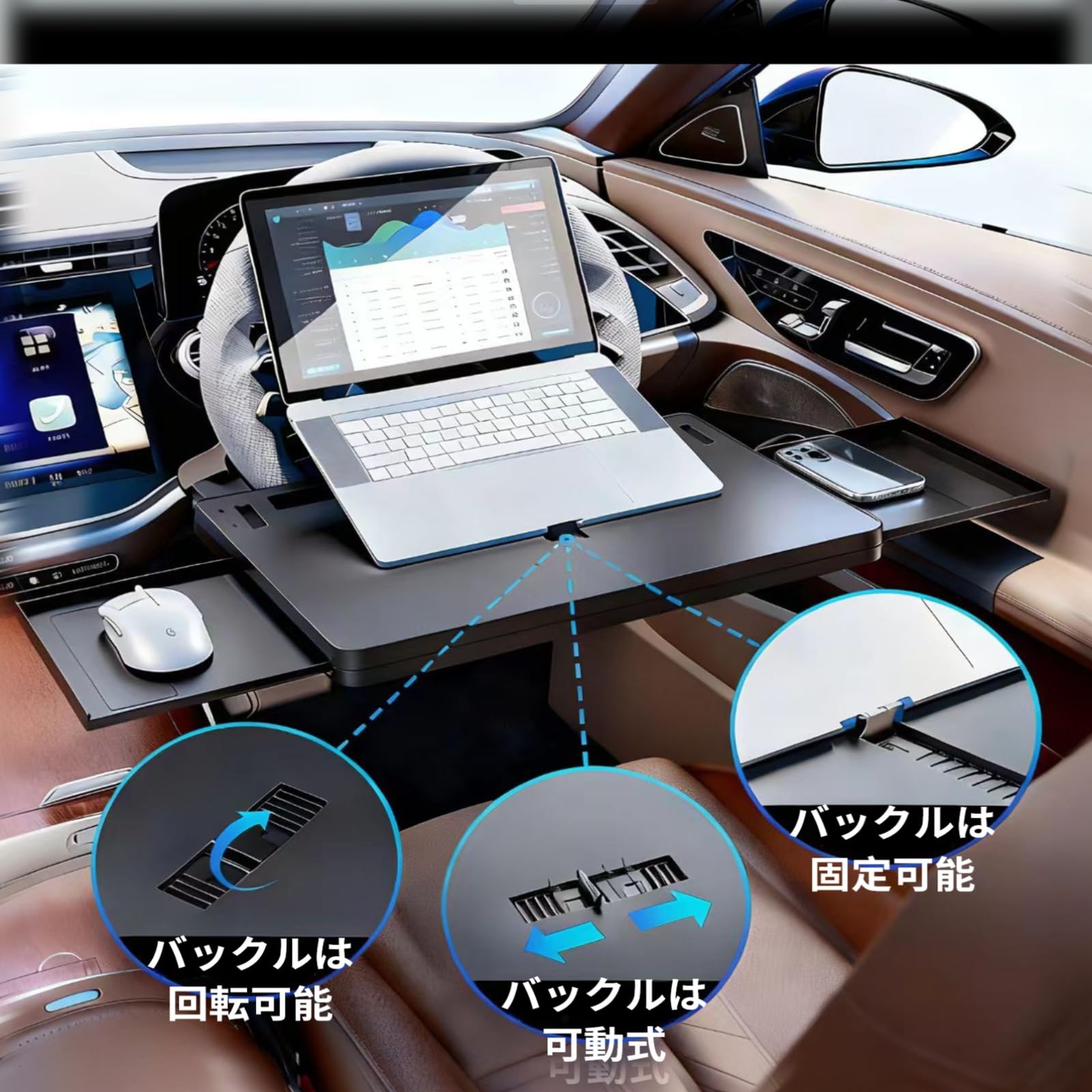 車 テーブル ハンドルテーブル 運転席 伸縮デスク 工具不要 簡単設置 車中泊 仕事 食事 勉強 ノートPC対応 高安定性 全車種対応 2025年新型